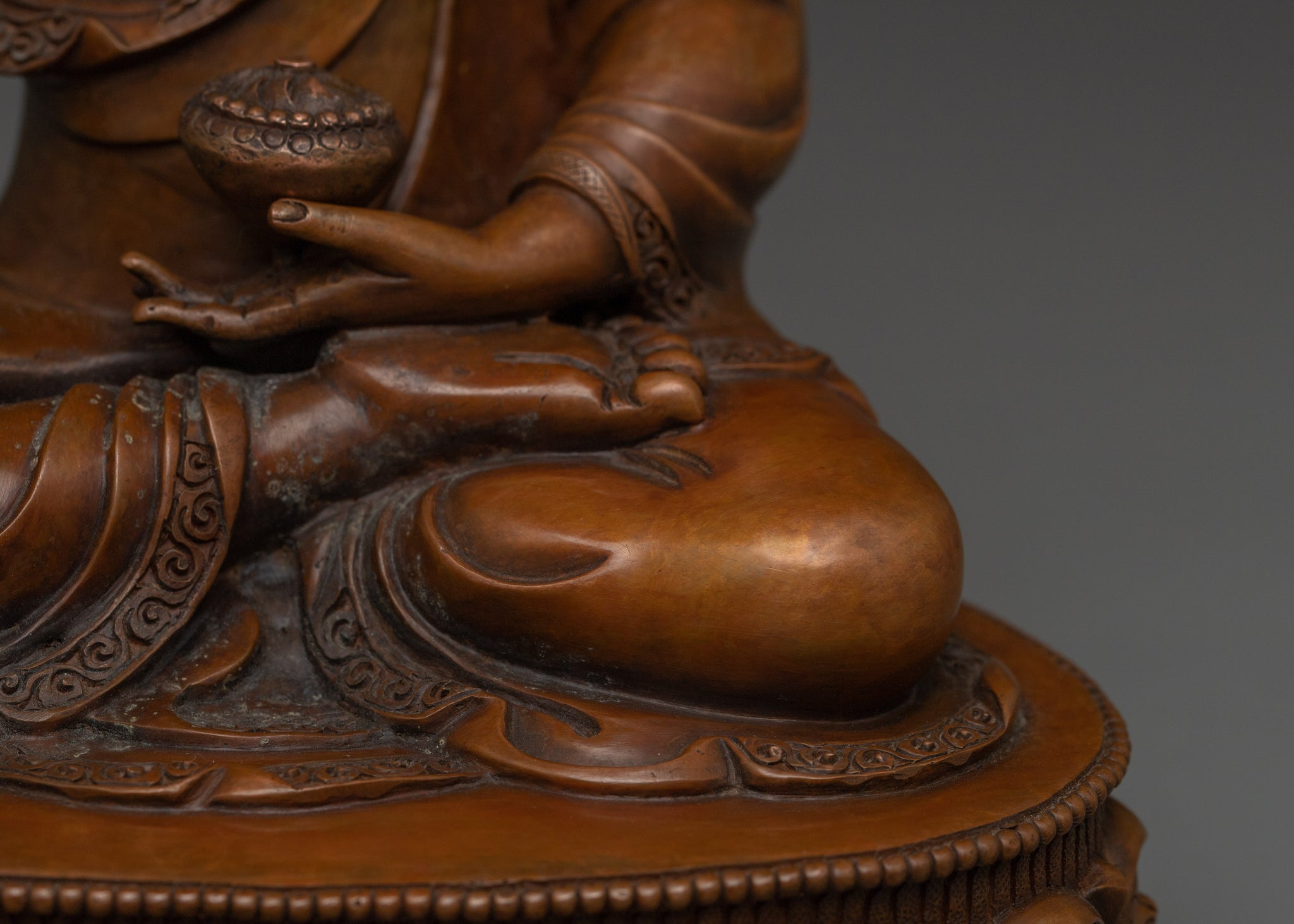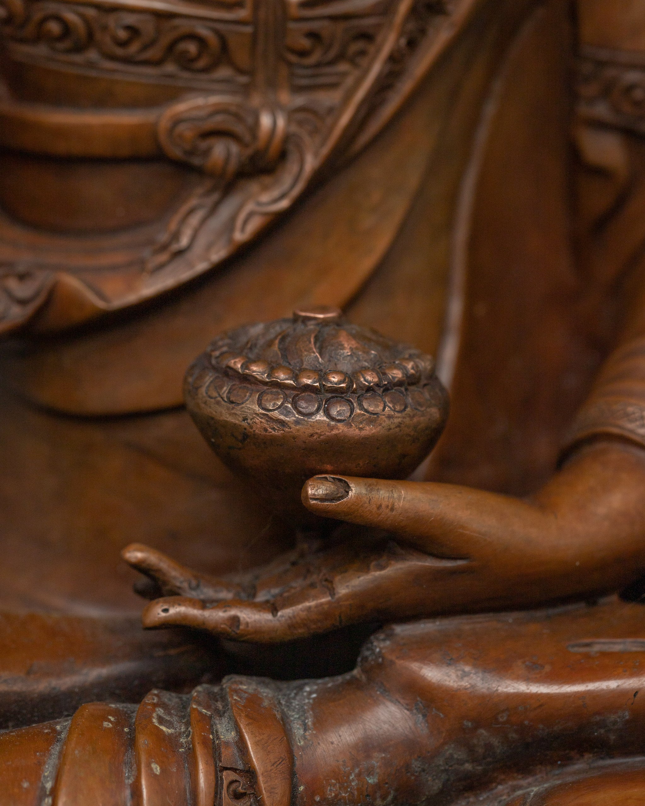 Vajrayogini is stunning. The details are amazing. It's easy to make out her facial expressions, skulls, feet, and the ring of fire around her. You can tell she's handmade. There is a consecration hole in her back.
