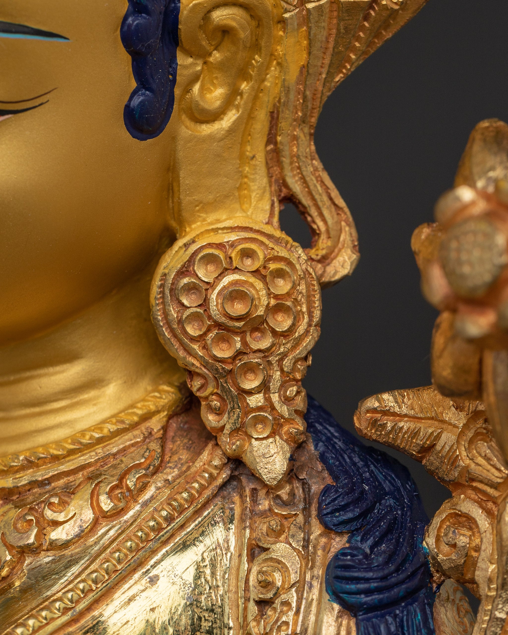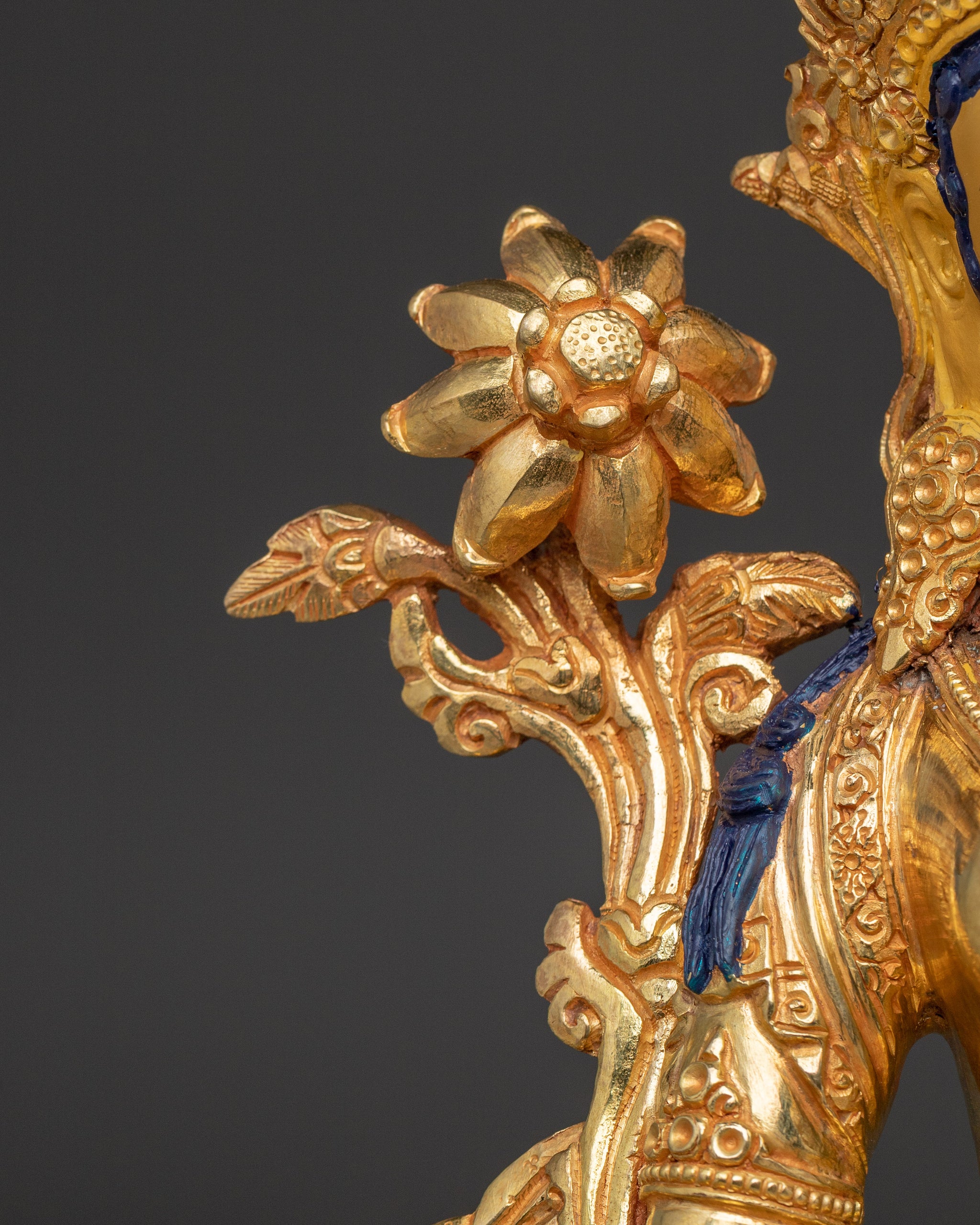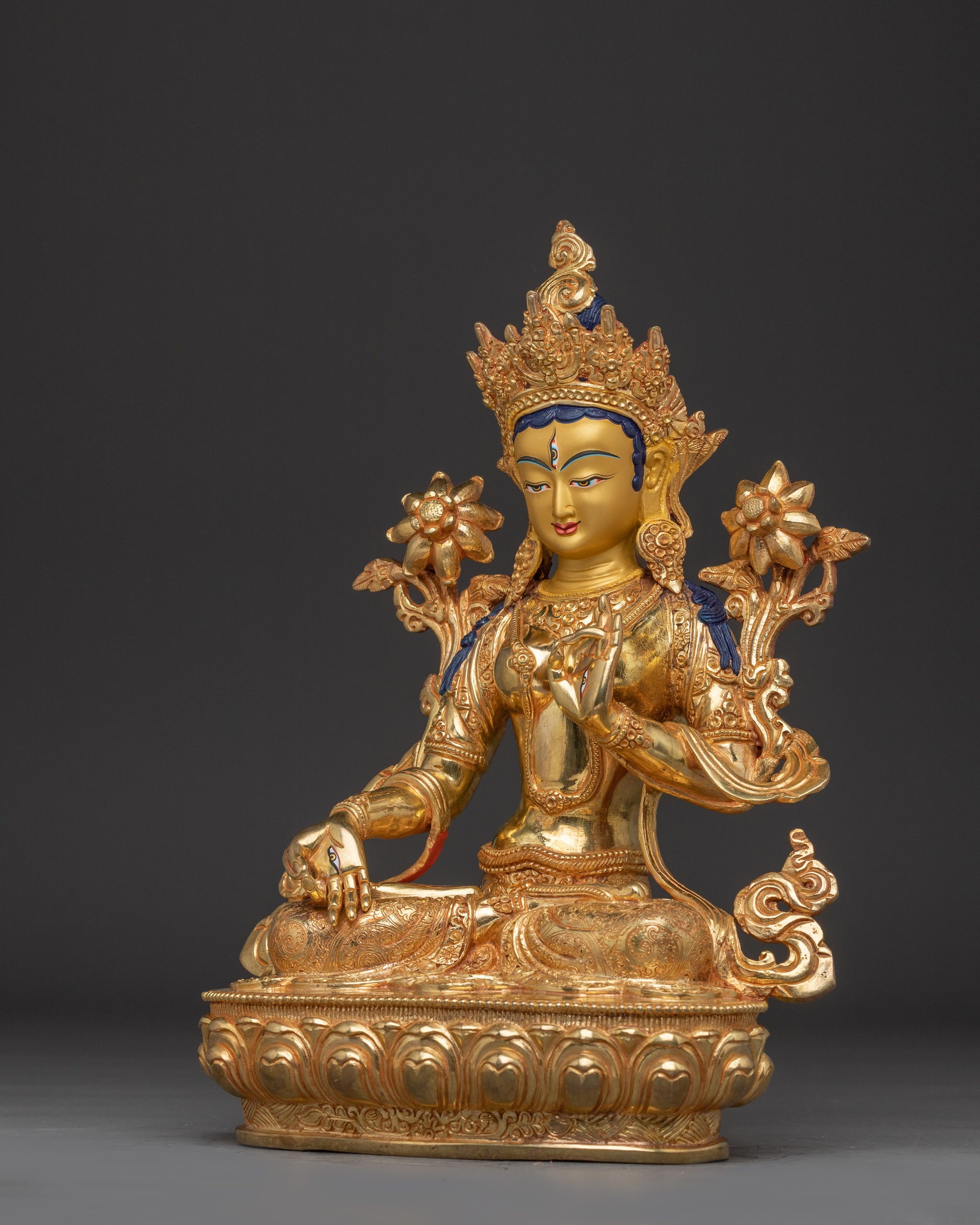 White Tara is depicted with seven eyes, which represent her caring alertness, and make her distinct. Aside from the two usual eyes, she has a third eye on her forehead, one on each hand, and one on the soles of her feet. Her graceful appearance and elegant design make this statue a powerful symbol of healing, compassion, and protection, inviting longevity and good health to those who revere her.