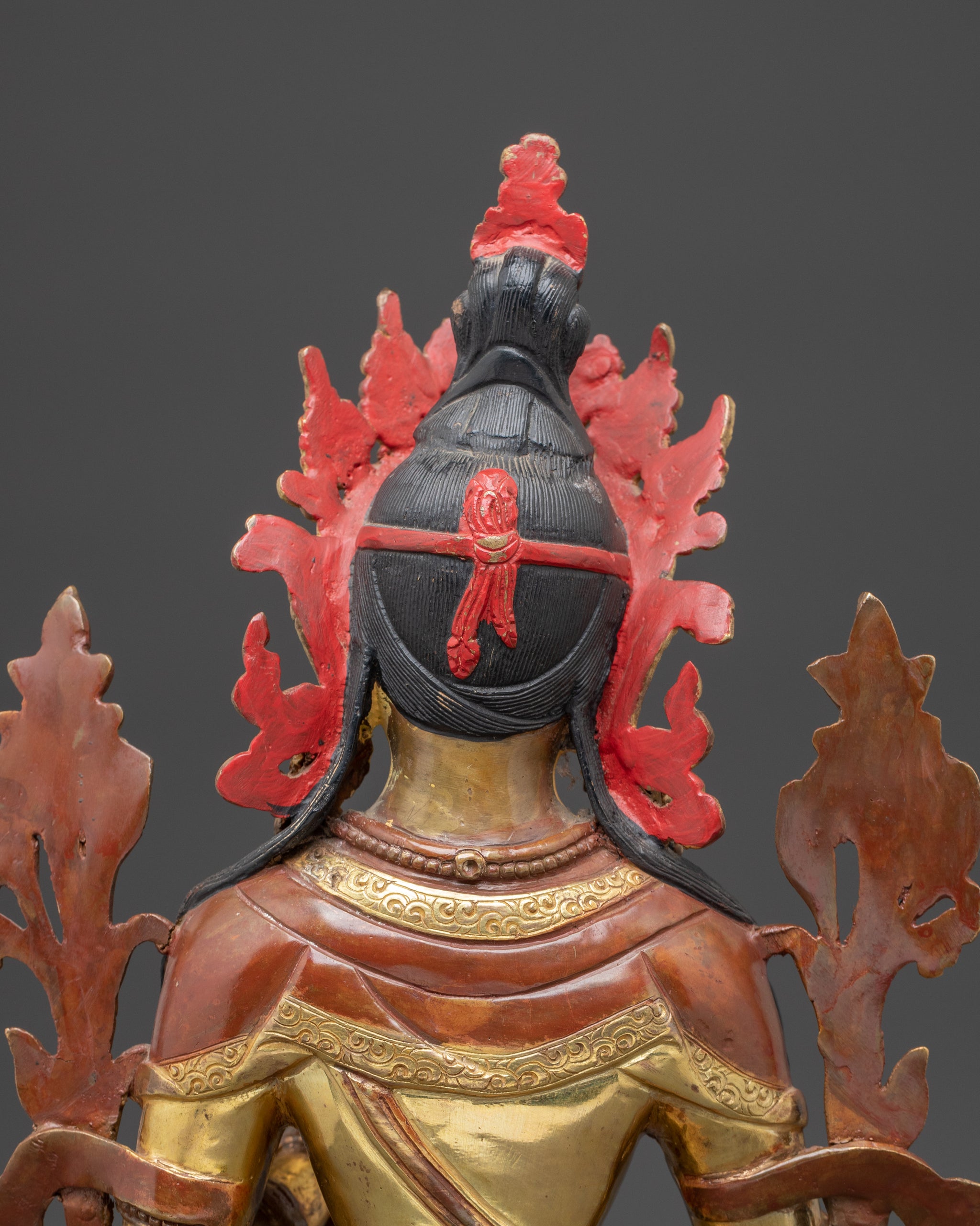 Vajrayogini is stunning. The details are amazing. It's easy to make out her facial expressions, skulls, feet, and the ring of fire around her. You can tell she's handmade. There is a consecration hole in her back.