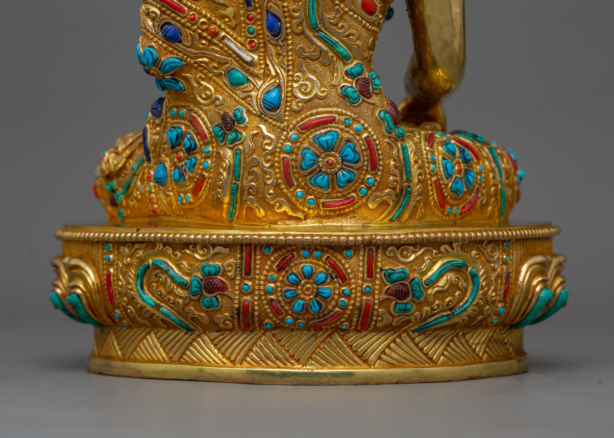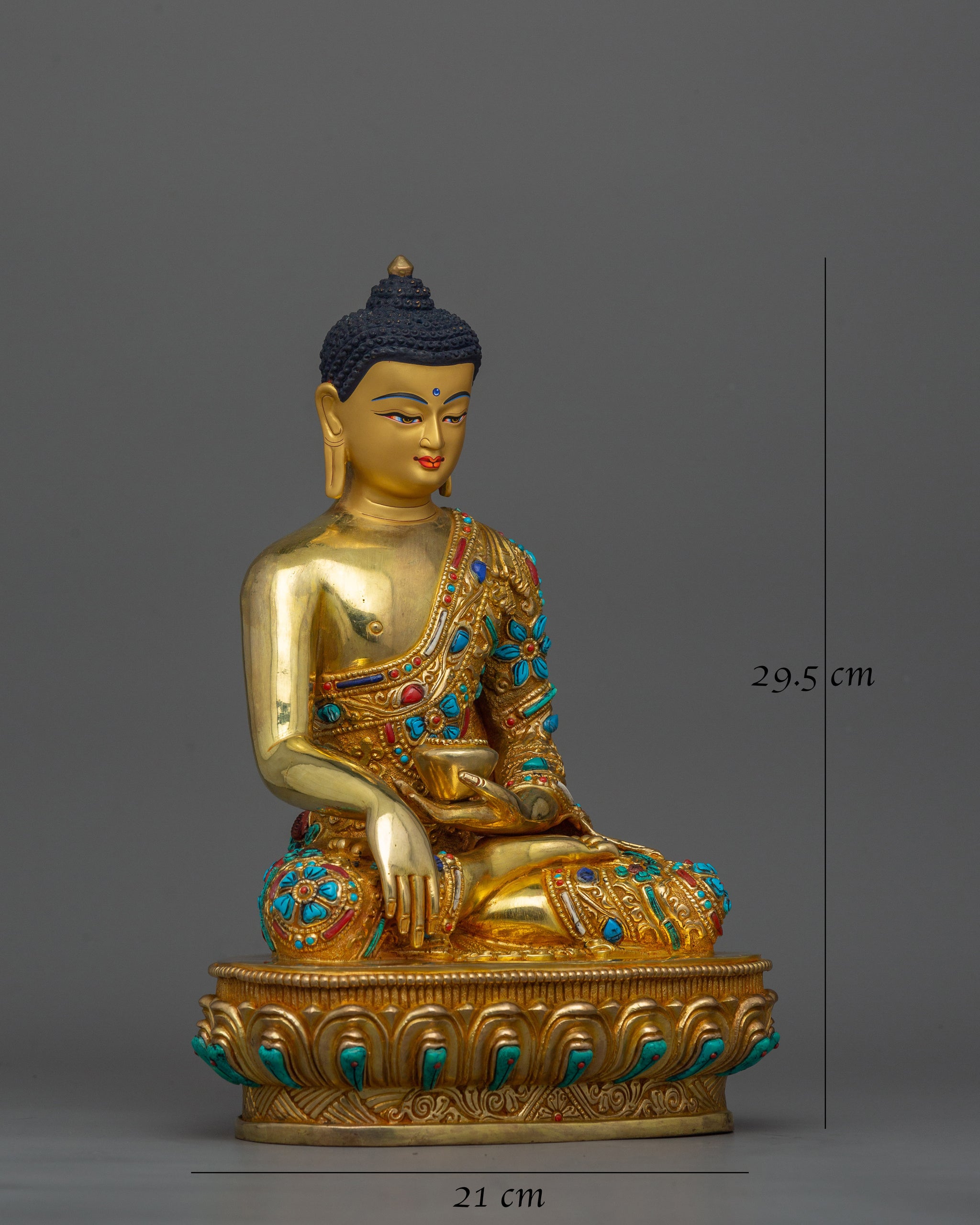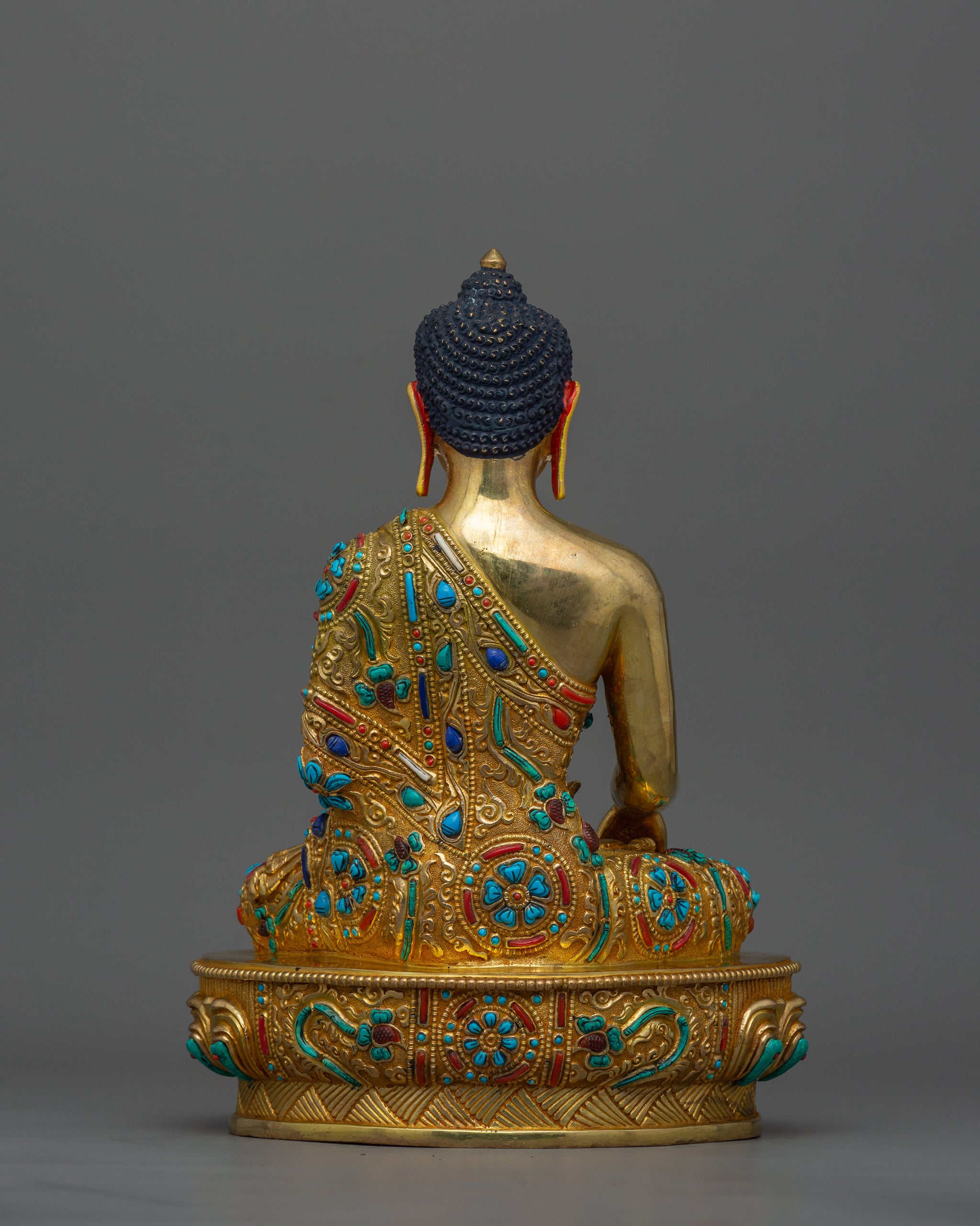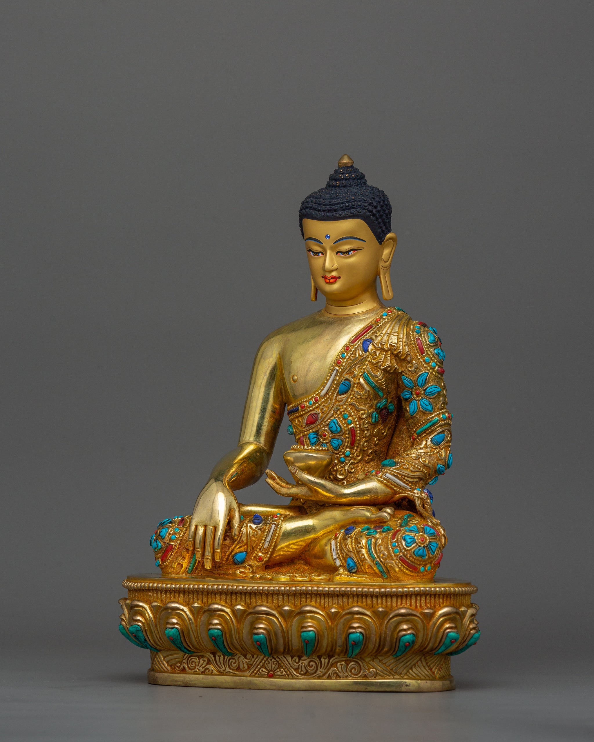 Shakyamuni Buddha adorned with Gemstone Statue | 24k Gold Gilded Sculpture