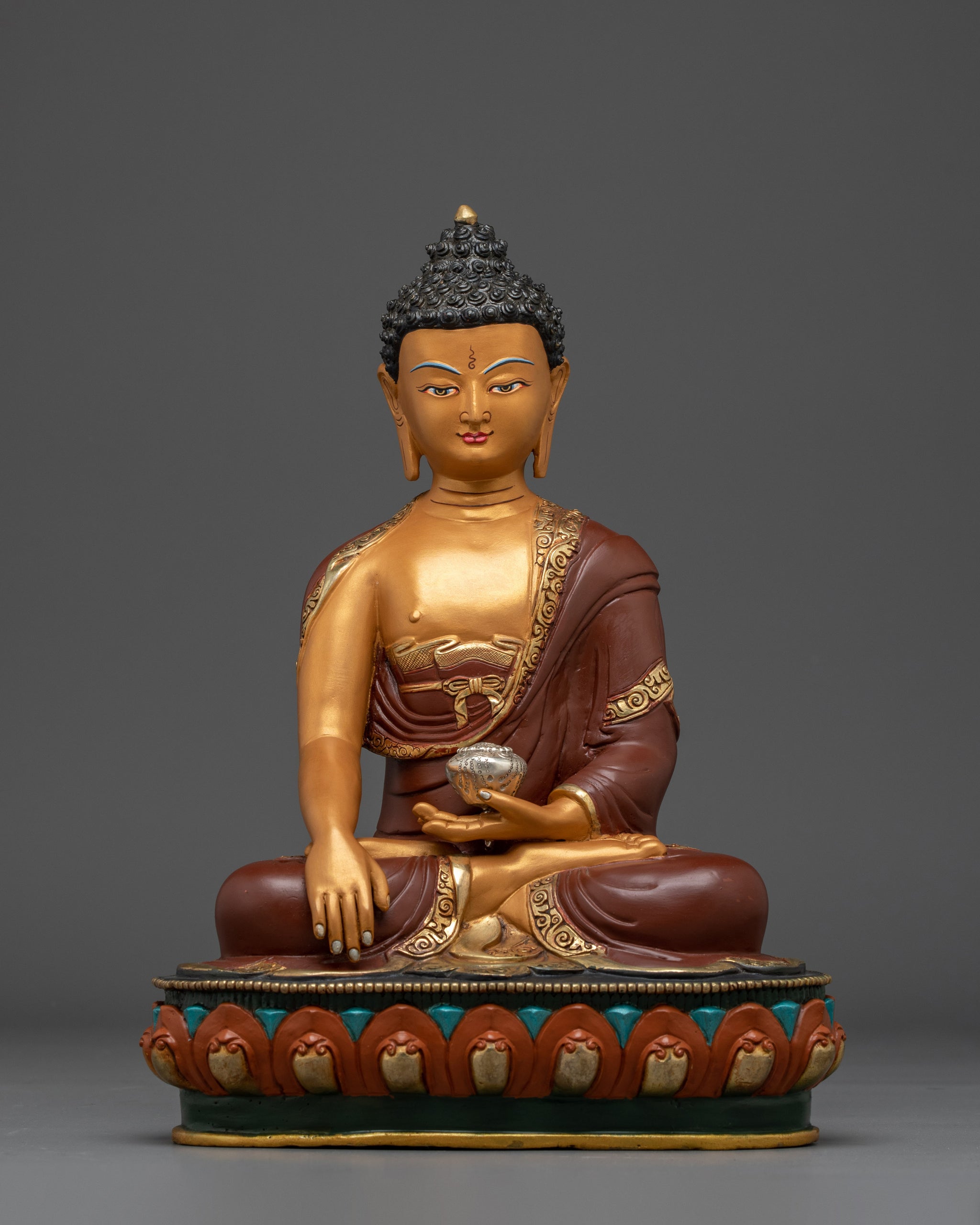 Shakyamuni Buddha Copper Statue in Orange | Copper Meditation Sculpture