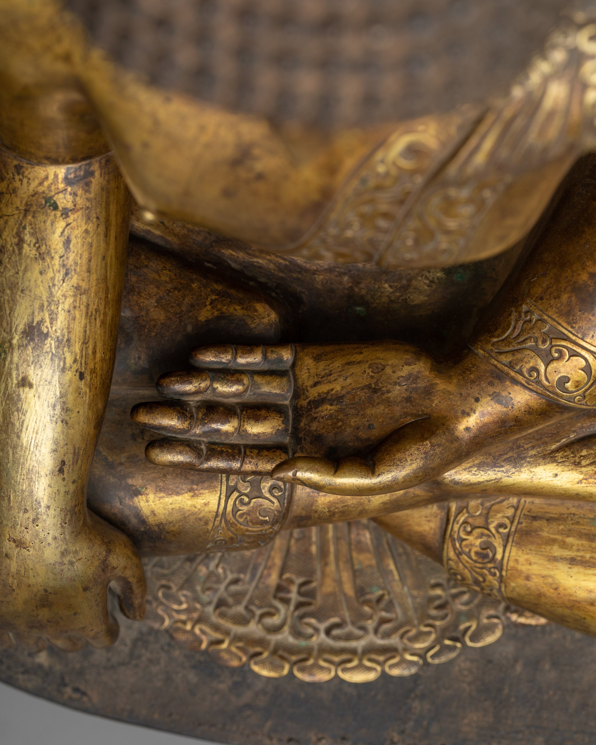 Shakyamuni Buddha Gold Gilded Antique Statue | Serenity in Timeless Tradition