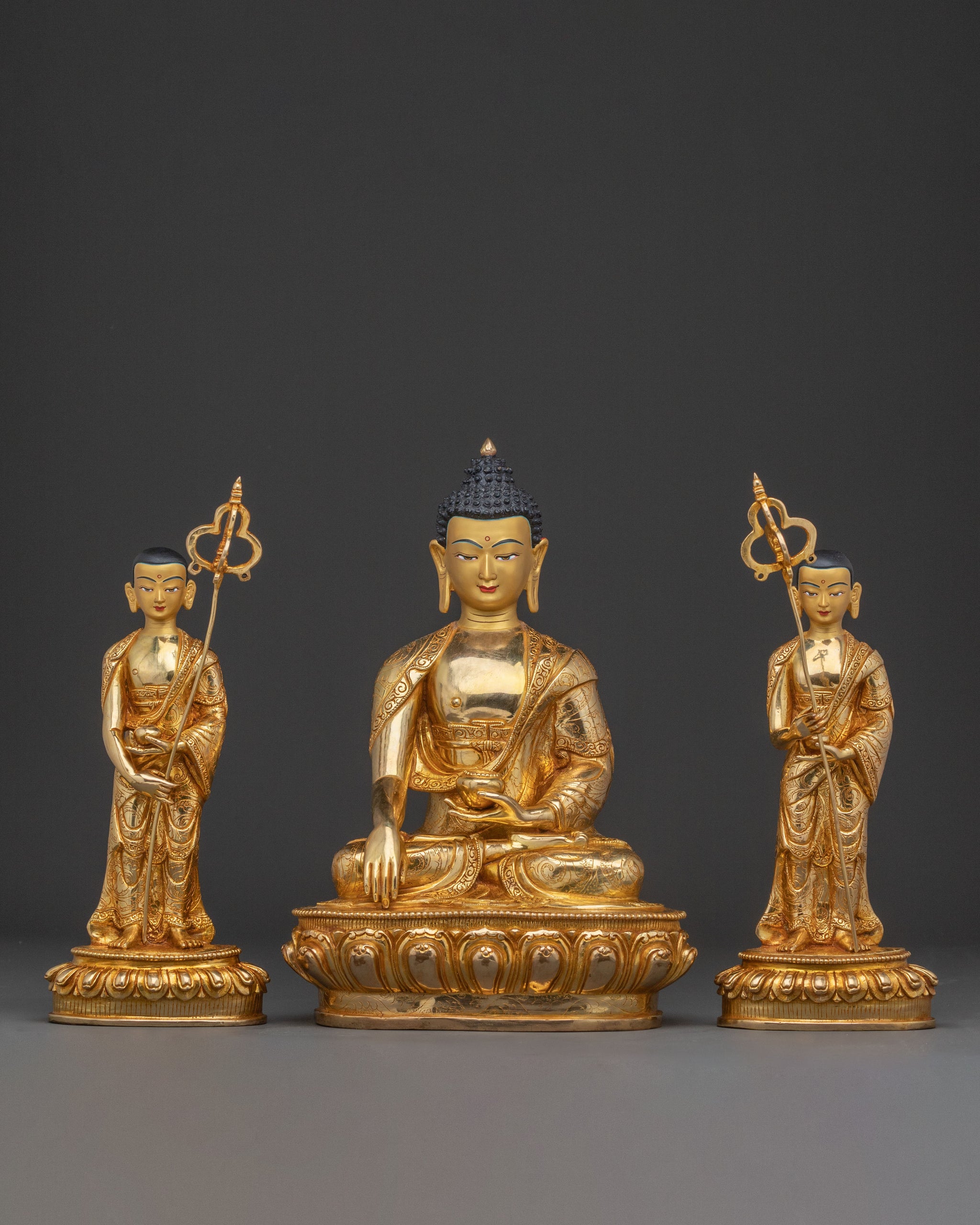 Shakyamuni Buddha Golden Statue with Disciples – A Vision of Enlightened Serenity