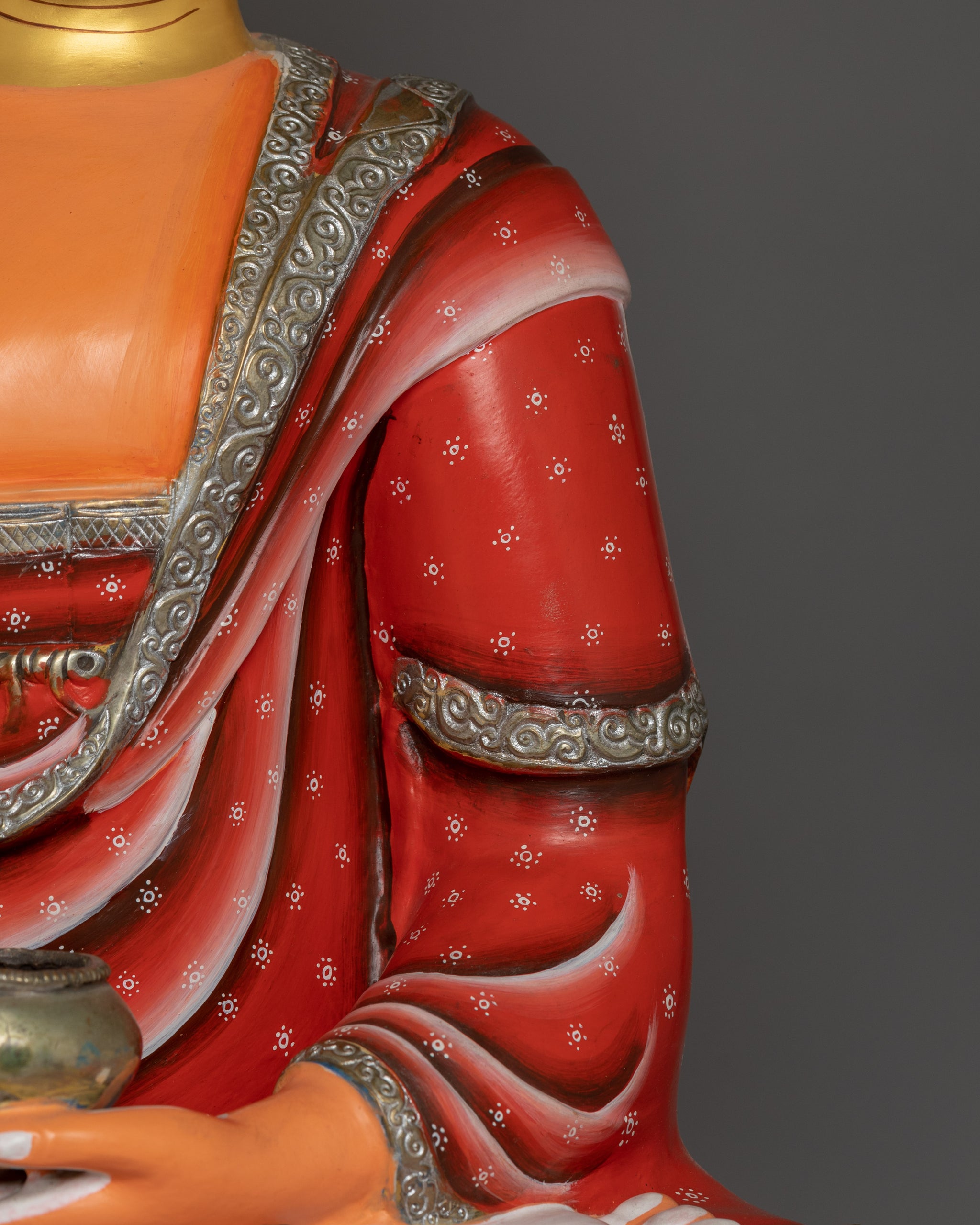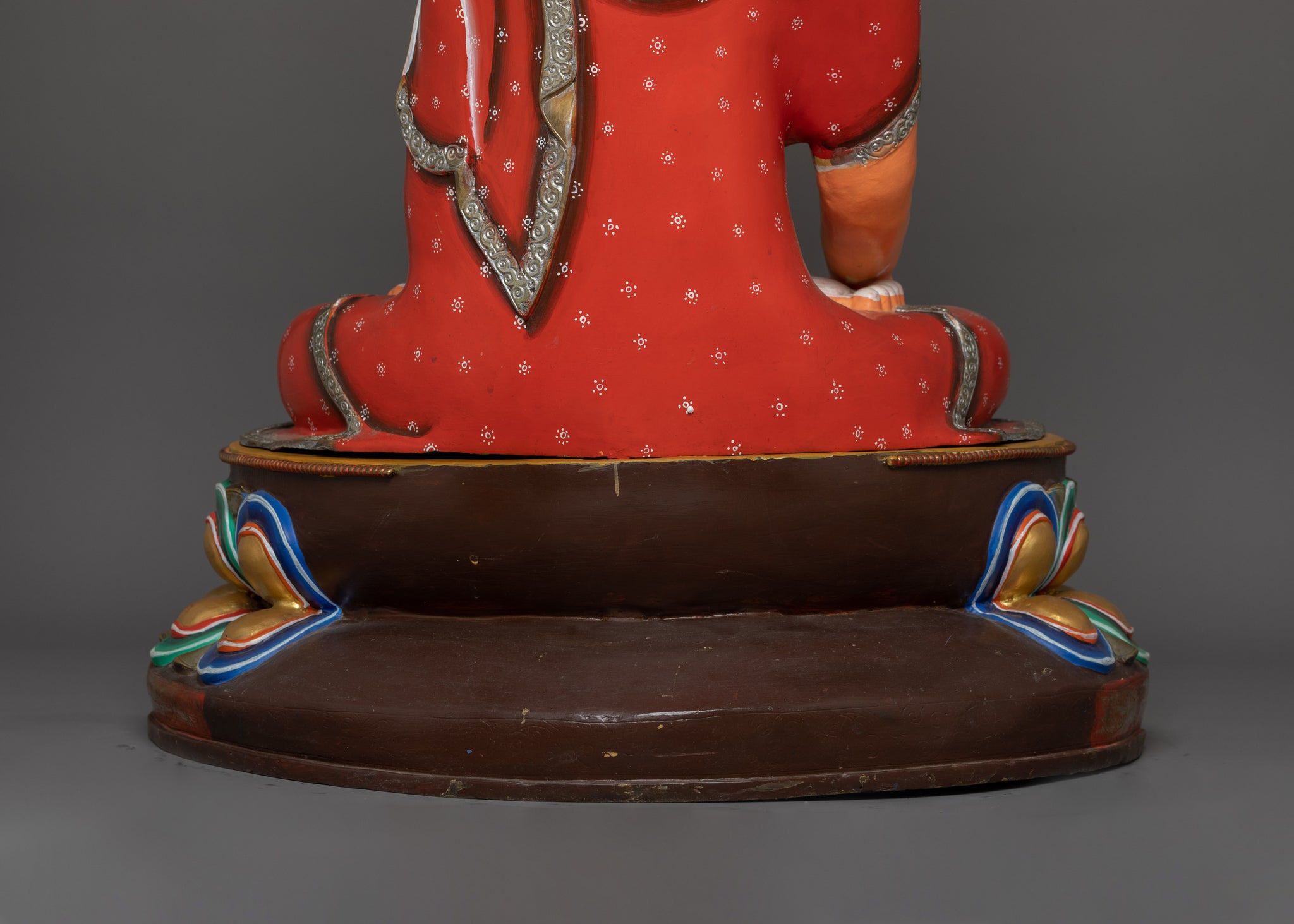 Vajrayogini is stunning. The details are amazing. It's easy to make out her facial expressions, skulls, feet, and the ring of fire around her. You can tell she's handmade. There is a consecration hole in her back.