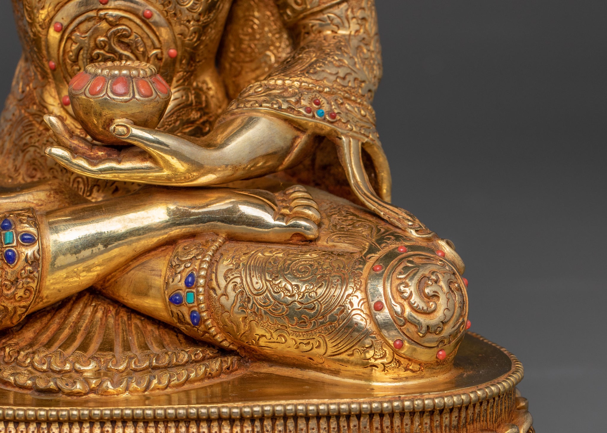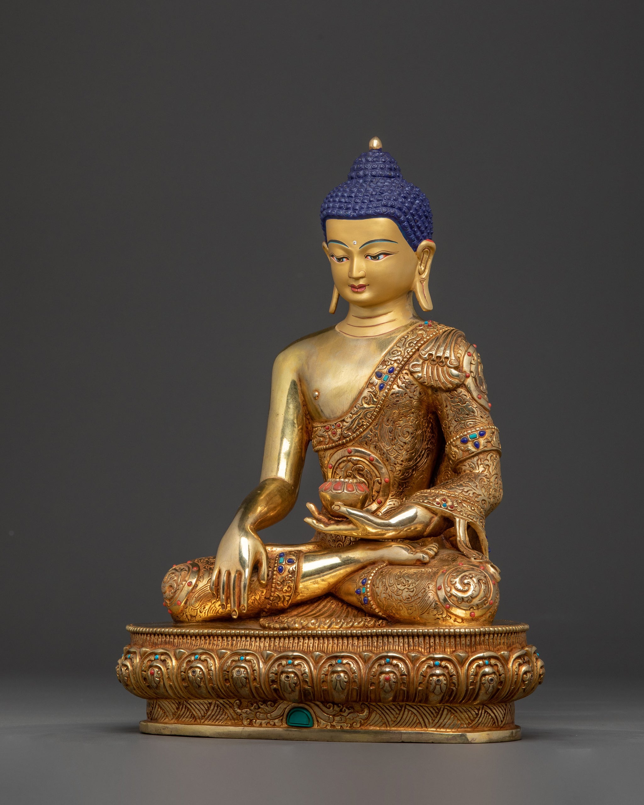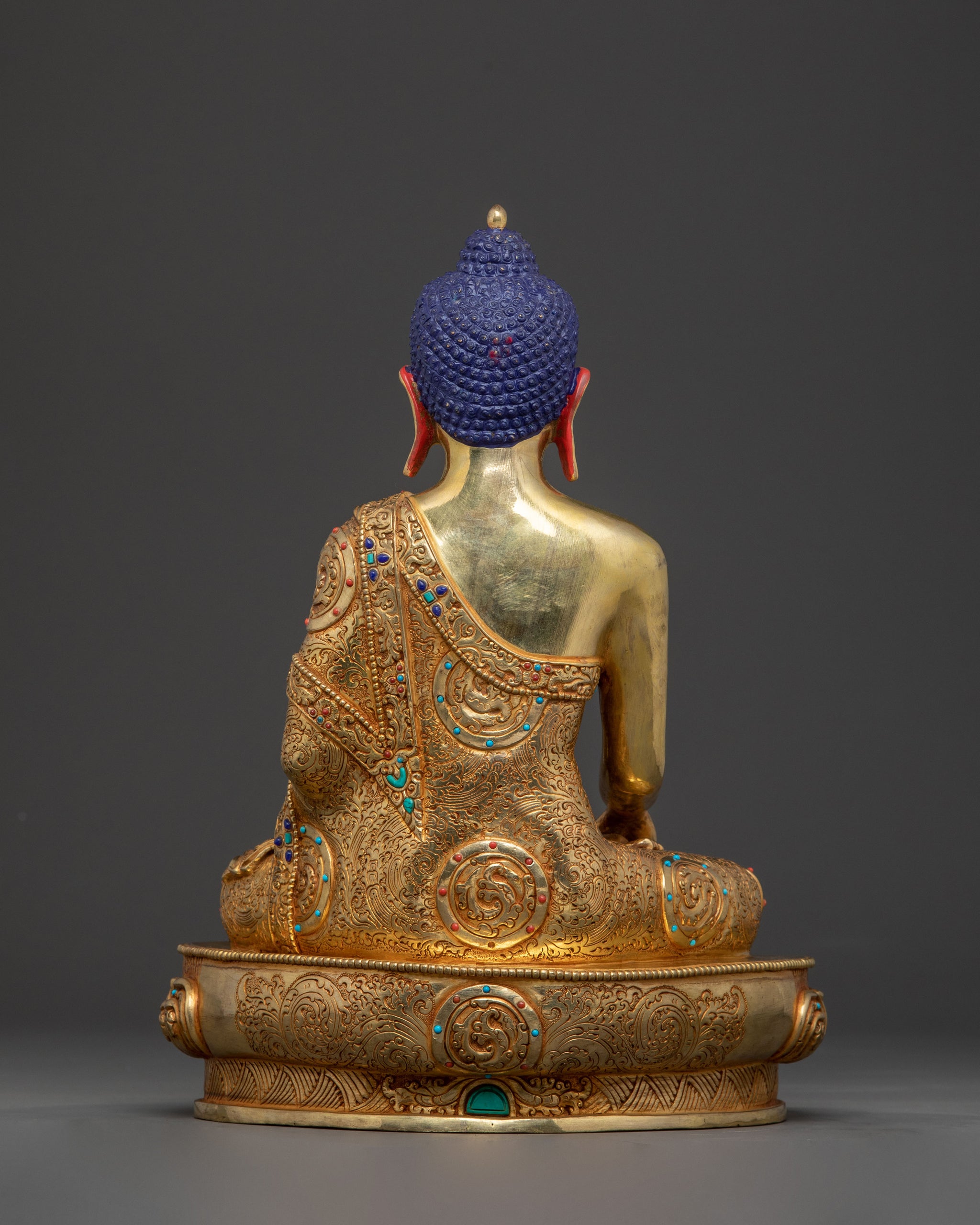 Behold the Buddha of boundless peace, masterfully sculpted from solid copper and crowned with lustrous 24K gold that catches light like captured sunlight. Standing at an impressive 31 cm tall upon its 23 cm foundation, this 3.78 kg meditation companion commands reverence through meticulous craftsmanship. Triple layers of golden radiance envelop the figure, while deeply carved details emerge in stunning three-dimensional relief, telling the silent story of enlightenment itself. Adorned with vibrant acrylic paintings and precious gemstones, each element whispers of the journey toward inner tranquillity. Whether gracing a meditation sanctuary, altar, or contemplative corner, this handcrafted treasure serves as a luminous beacon—a gentle yet powerful reminder that serenity dwells within reach, waiting to be discovered on your own sacred path.