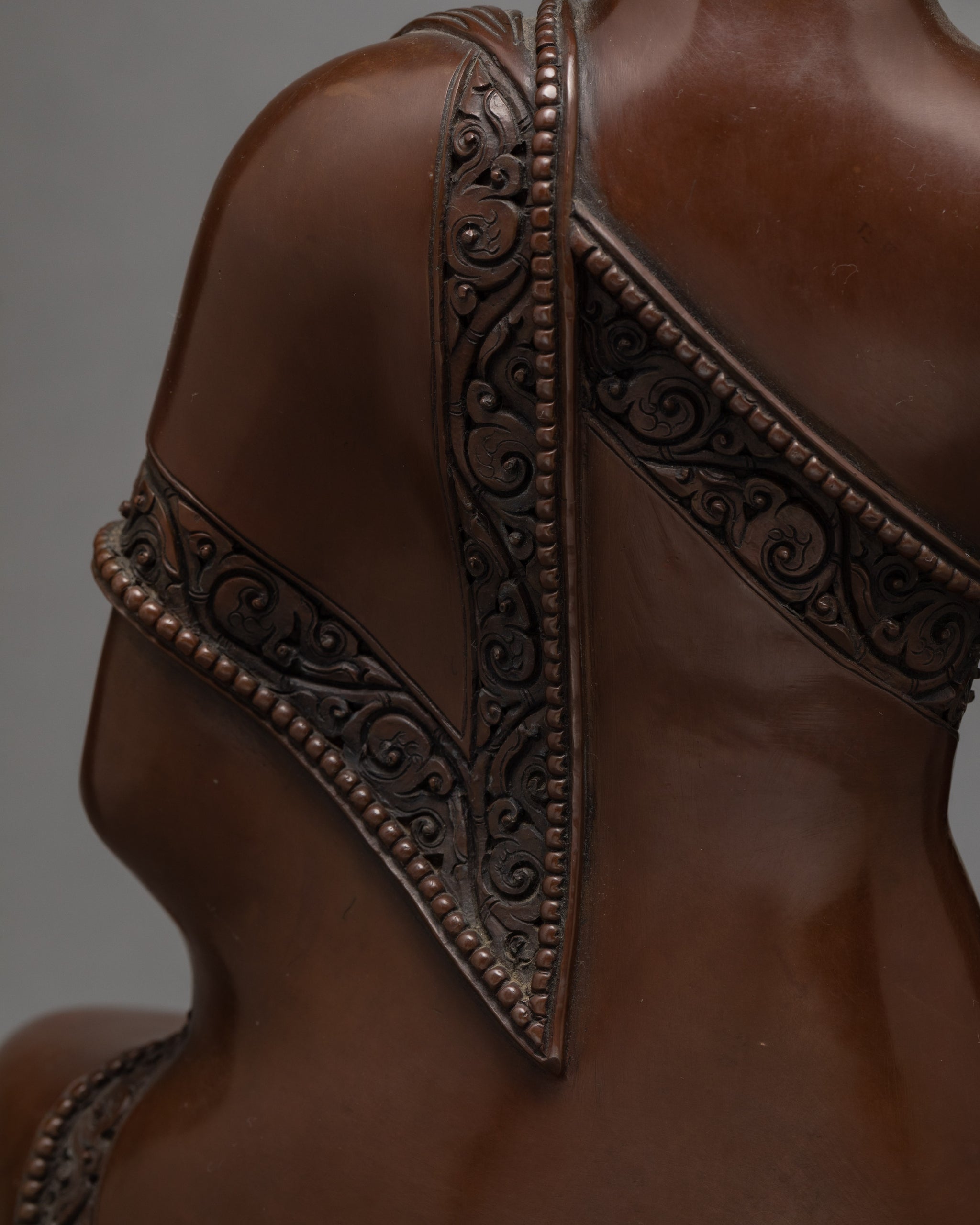 This is an unusual bronze statue, and unlike the gold-gilded ones, this statue gives an air that is strangely spiritual and earthy. The element is in its most primary yet finest form, and that results in the statue coming off as unassumingly unique, and beautiful to look at.