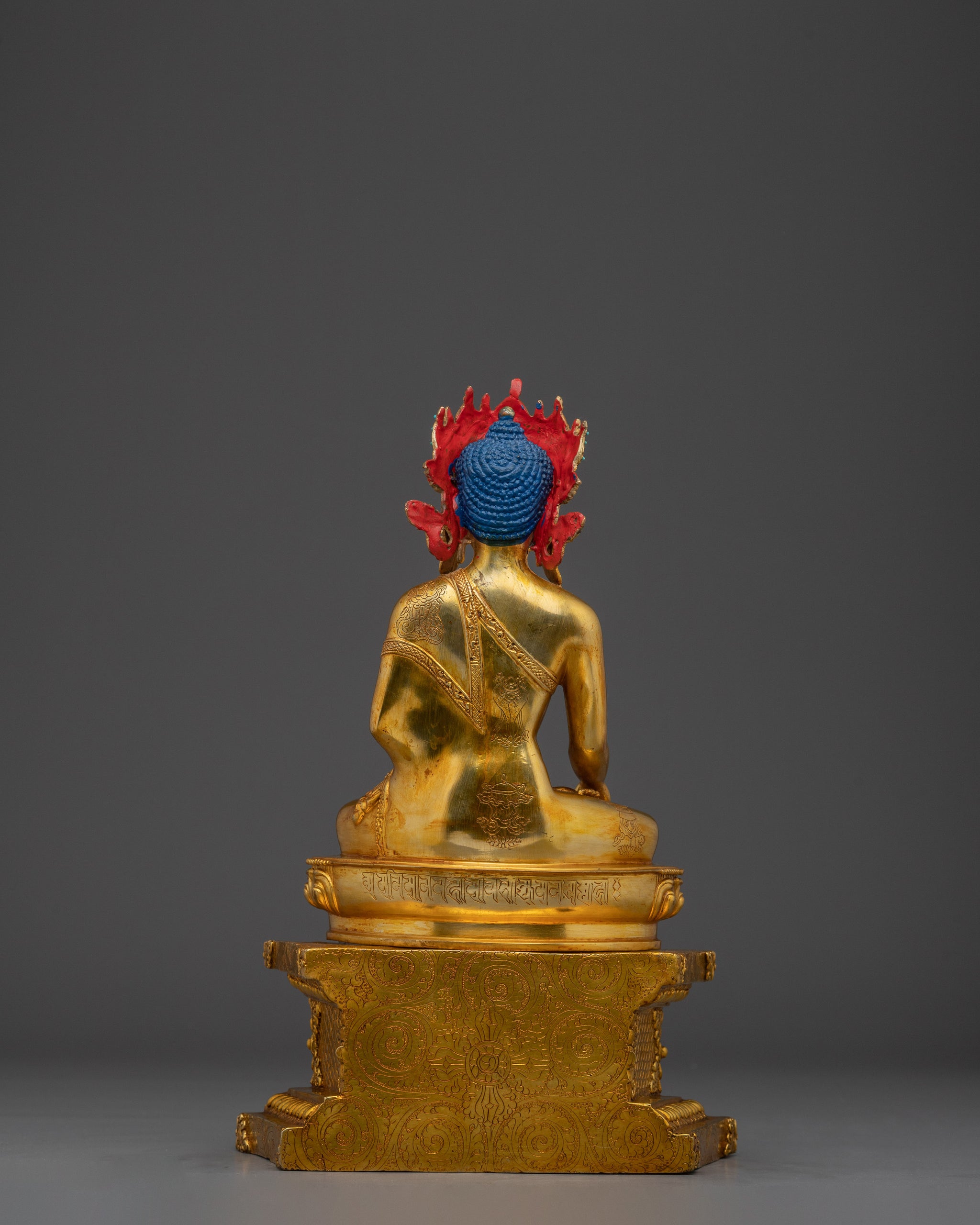 This Golden Shakyamuni Buddha Statue with Throne stands at 17.3”/44cm in height and 9.3”/23.5cm at the base, with a weight of 6.59 kg. Meticulously handcrafted from copper and adorned with 24K gold gilding, the statue is further enhanced with fine gold and acrylic paintings and inlaid gemstones that add brilliance and texture. Seated regally on a detailed throne, this depiction of Shakyamuni Buddha radiates serene dignity and spiritual presence. The elaborate craftsmanship and symbolic richness make it a powerful centerpiece for altars, meditation spaces, or collections dedicated to inner peace and enlightenment.