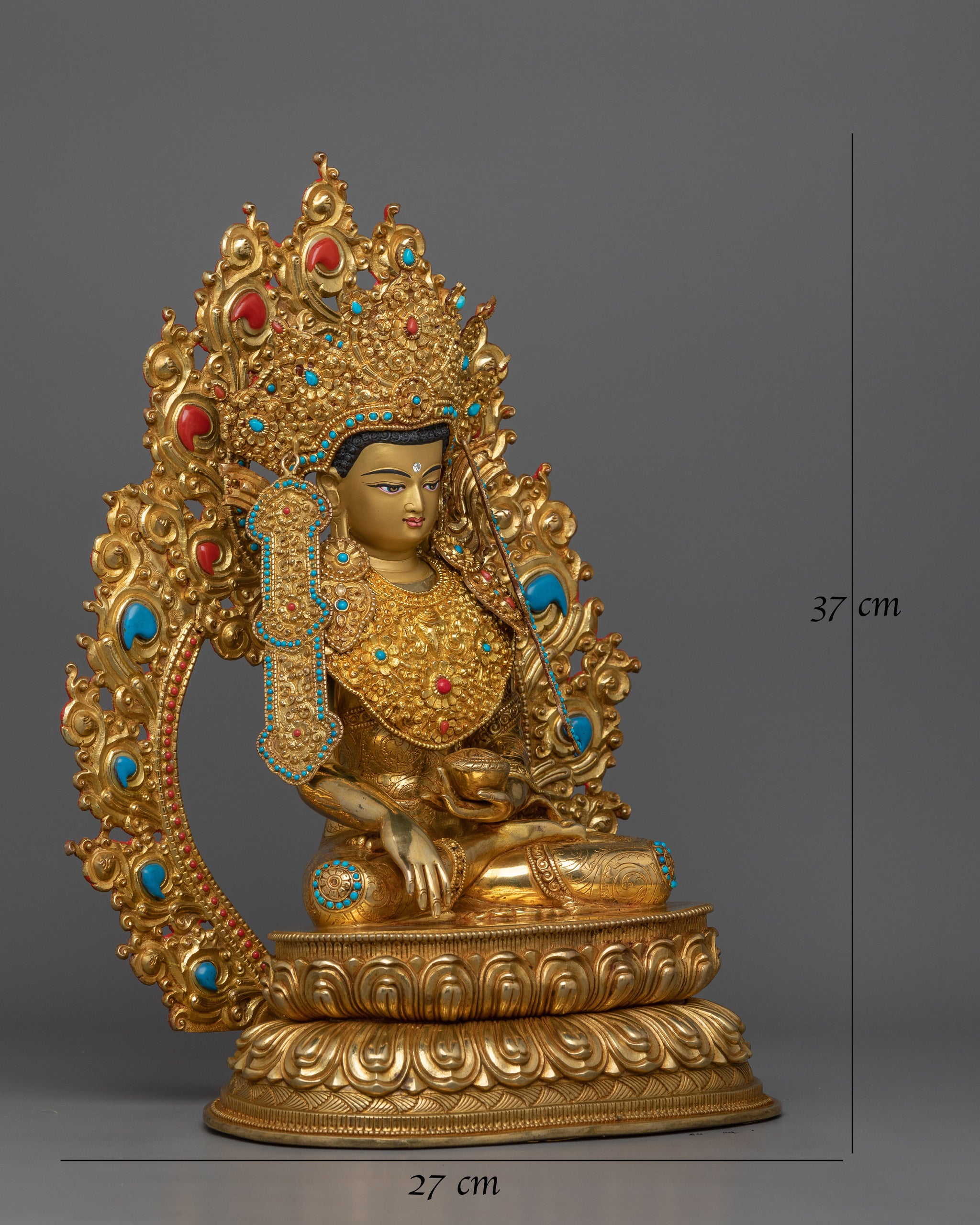The statue is very beautiful. The craftsman who crafted it clearly shows the care and heart he put into it. It is a true dharma jewel on the altar. Shipping was quick, considering the recent events in Nepal. It was carefully packed and filled in a wooden box. If you're buying for shipping to the European Union, please note that customs duties on items from outside the EU are as high as 23 percent of the value.