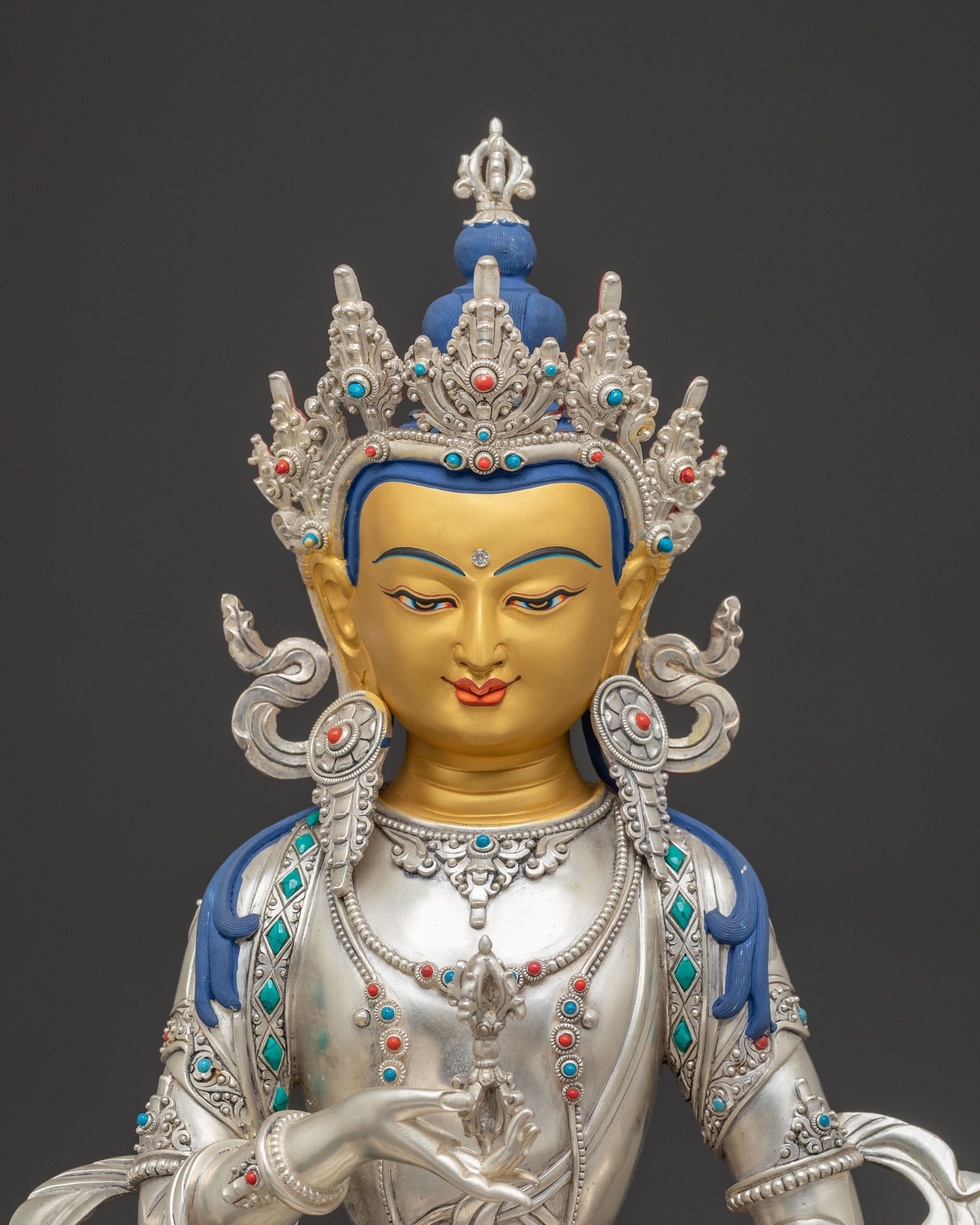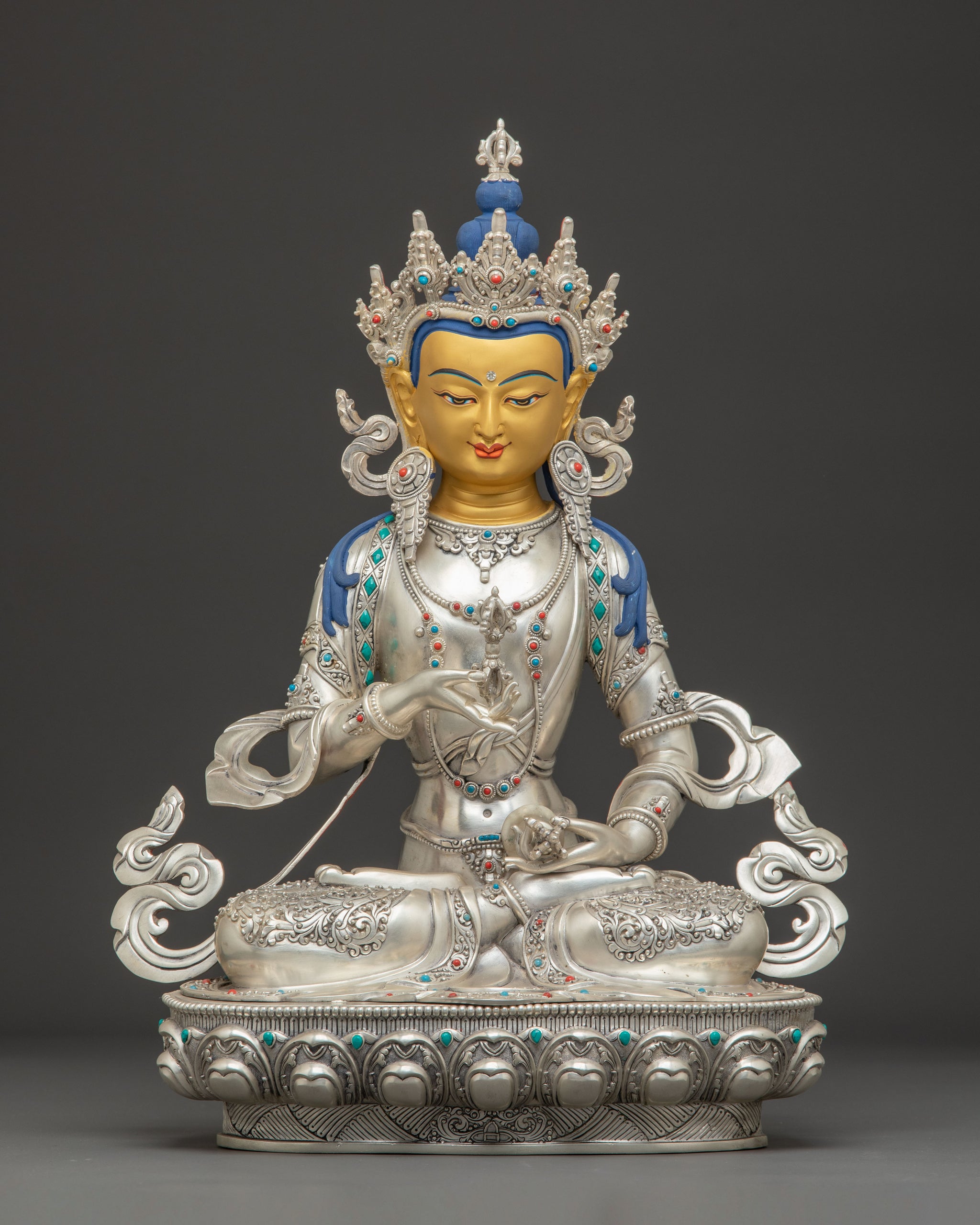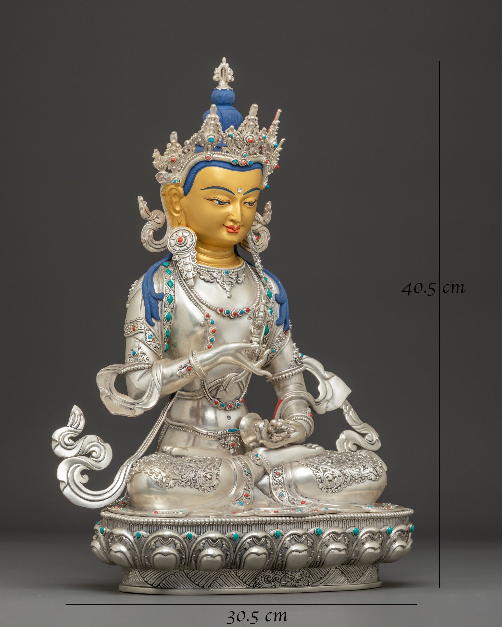 15.9 Inch Silver Vajrasattva Statue: Bodhisattva of Purification