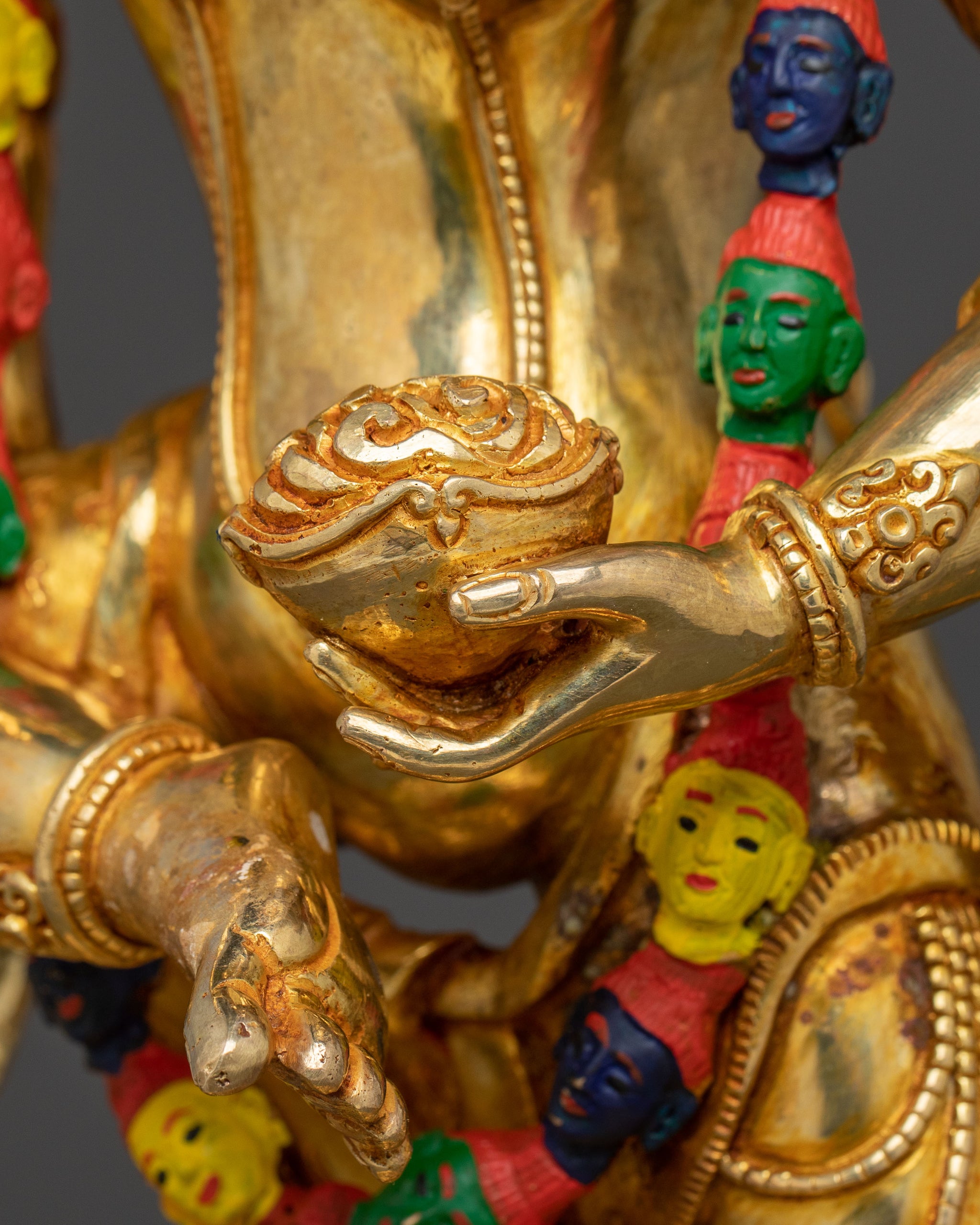 Simhamukha Statue the Remover of Obstacles - Exquisite 24K Gold Gilded Copper