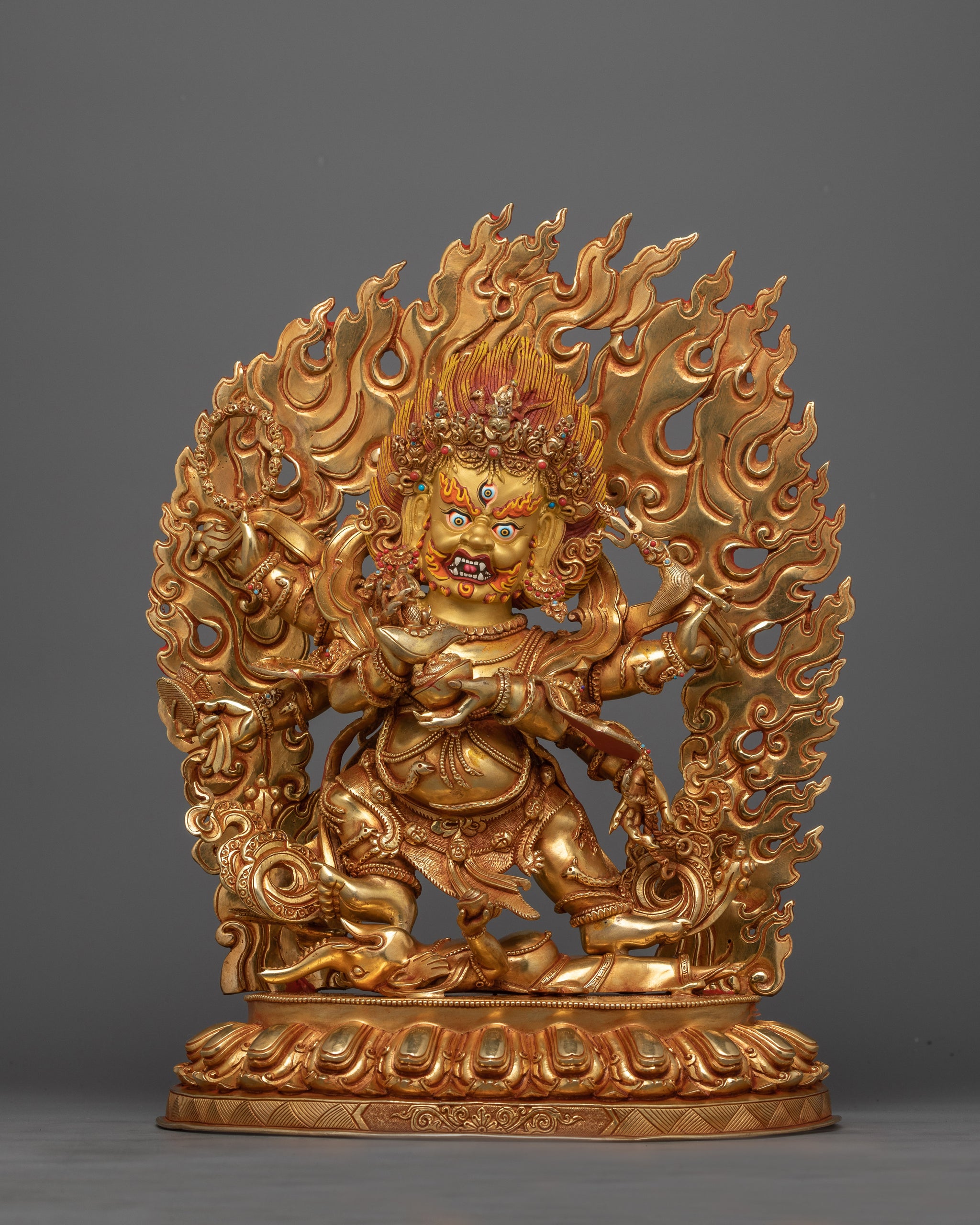 Embrace the Fierce Beauty of the Six-Armed Mahakala Gold-Gilded Statue