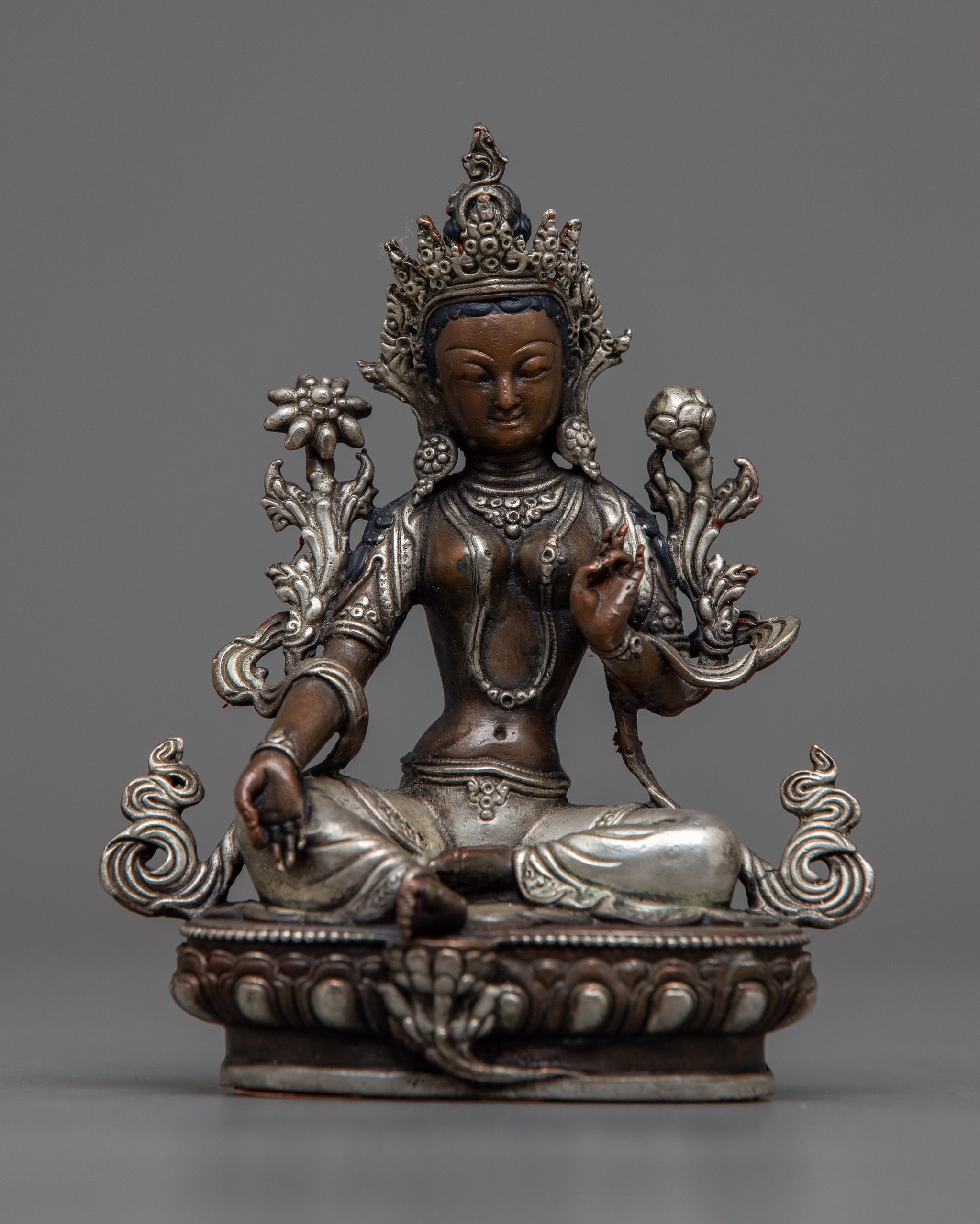 Small Green Tara Statue | Silver-Plated Symbol of Active Compassion