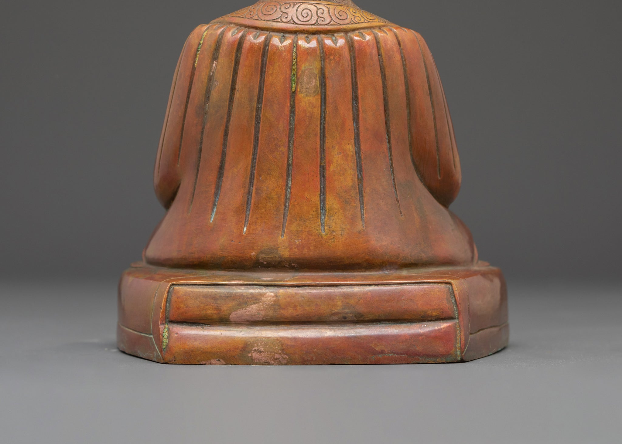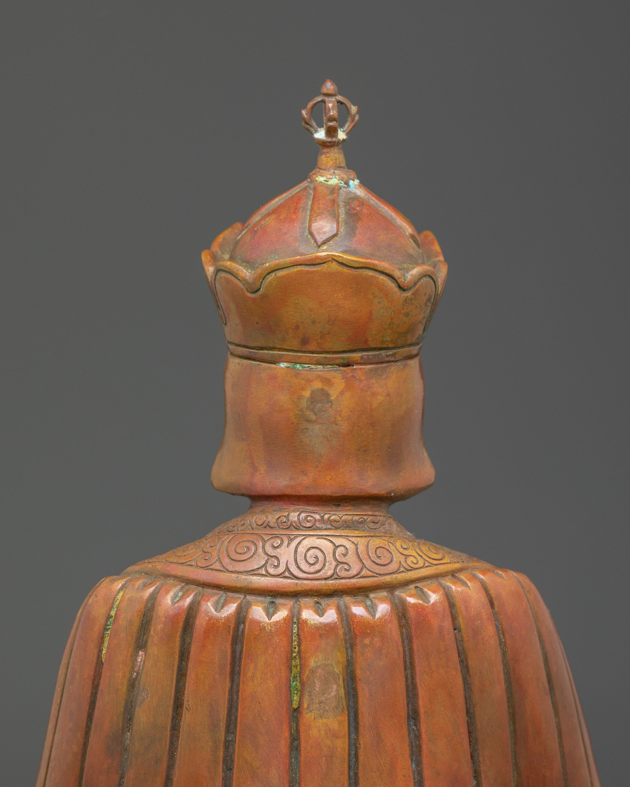 The Spiritual Master Karmapa Statue stands at 8.3 inches (21 cm) in height with a base width of 5.9 inches (15 cm) and weighs 1.60 kilograms. Crafted from oxidized copper and, it features detailed acrylic paintings that enhance its spiritual presence. The combination of rich materials and fine craftsmanship makes it a meaningful addition to any meditation space or personal shrine, symbolizing the wisdom and leadership of the Karmapa lineage.