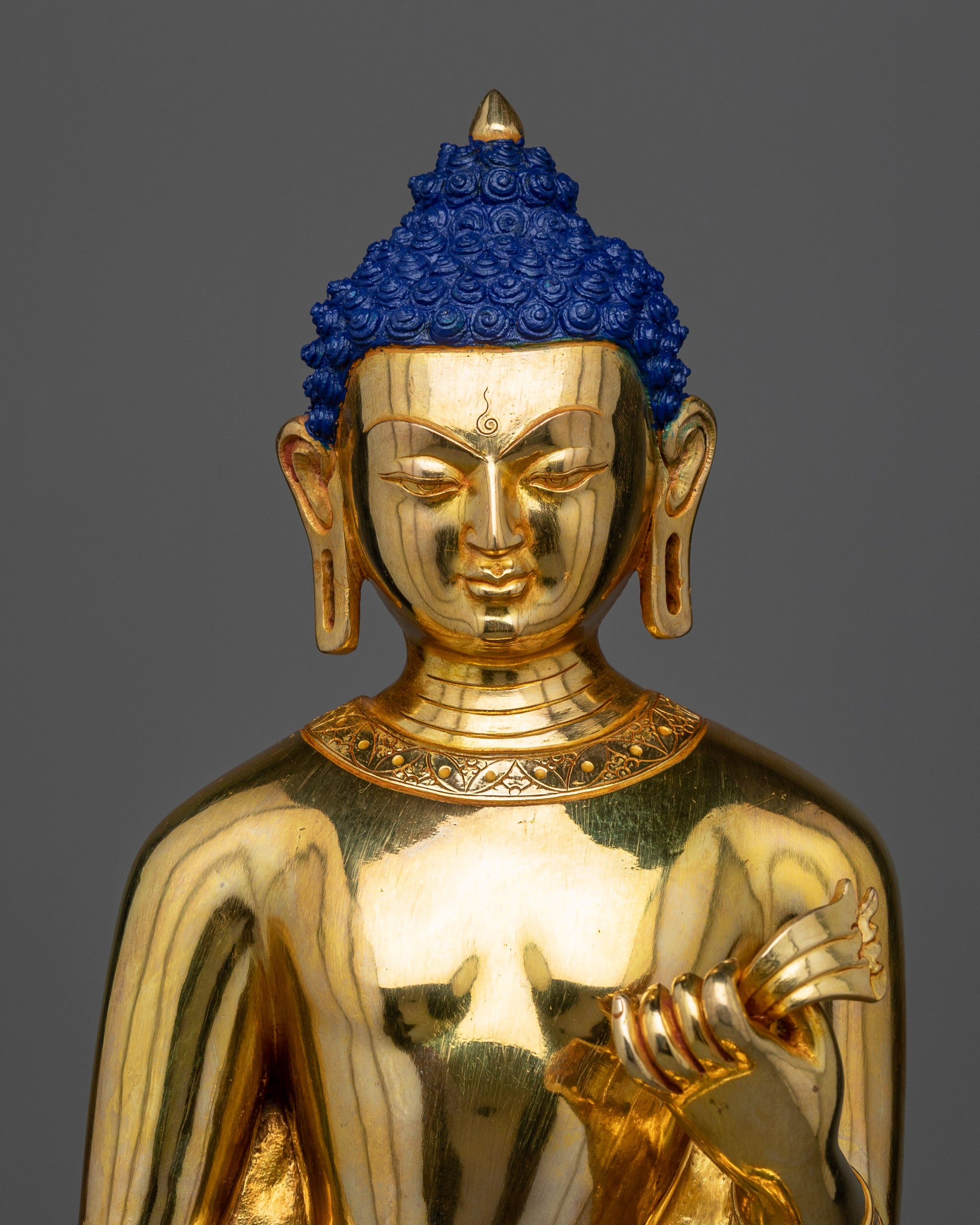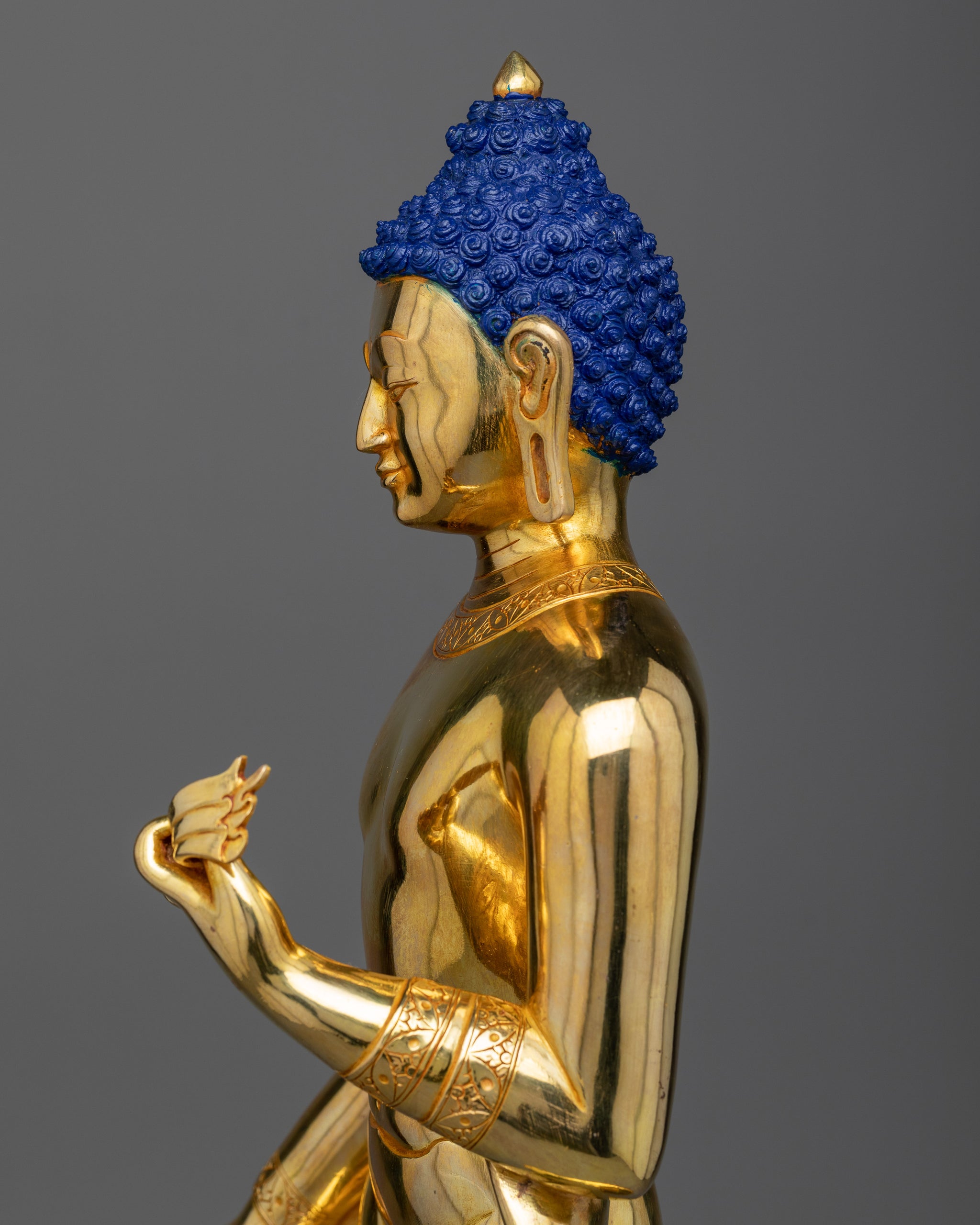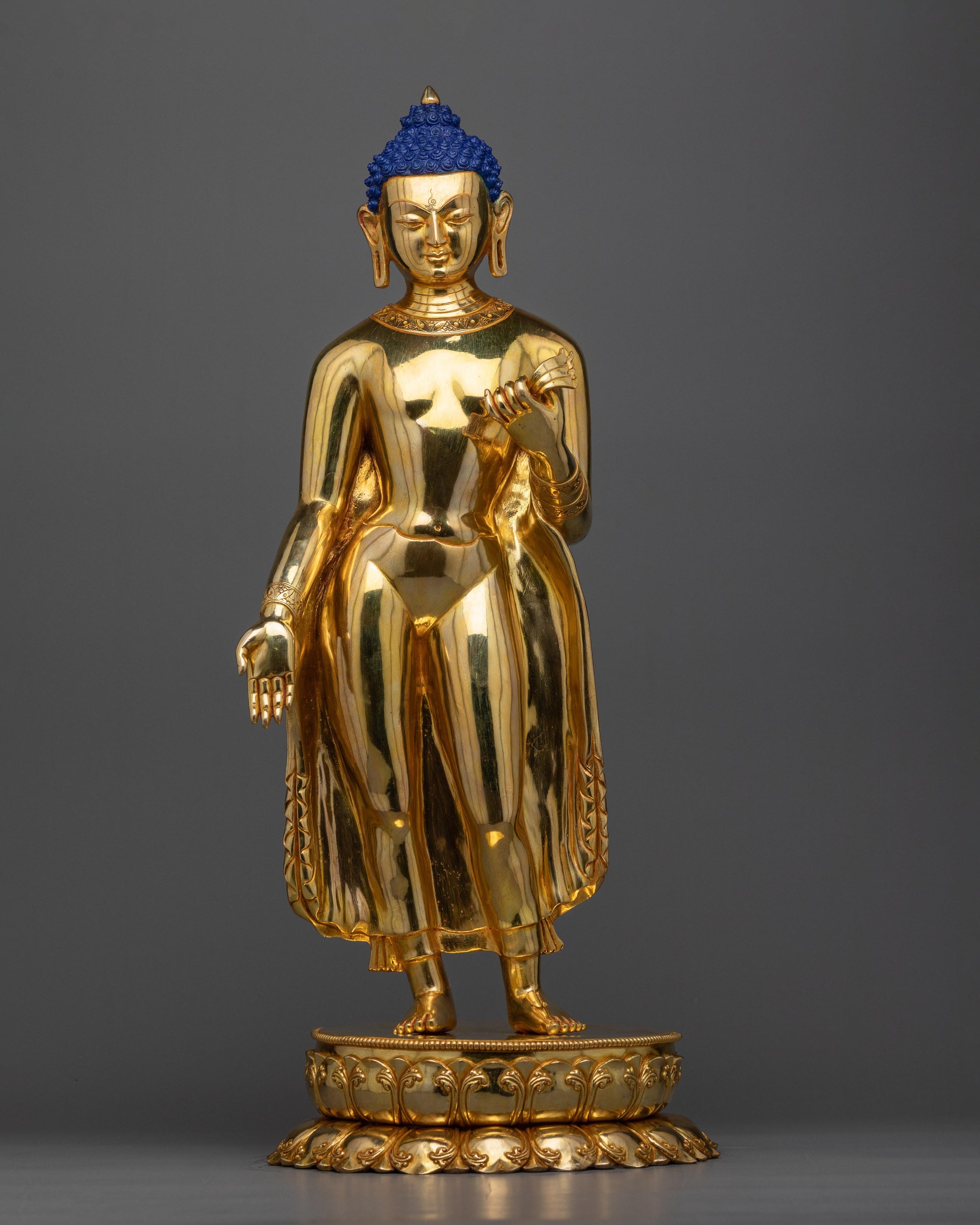 Majestic Standing Shakyamuni Buddha Glossy Statue | Traditional Himalayan Art