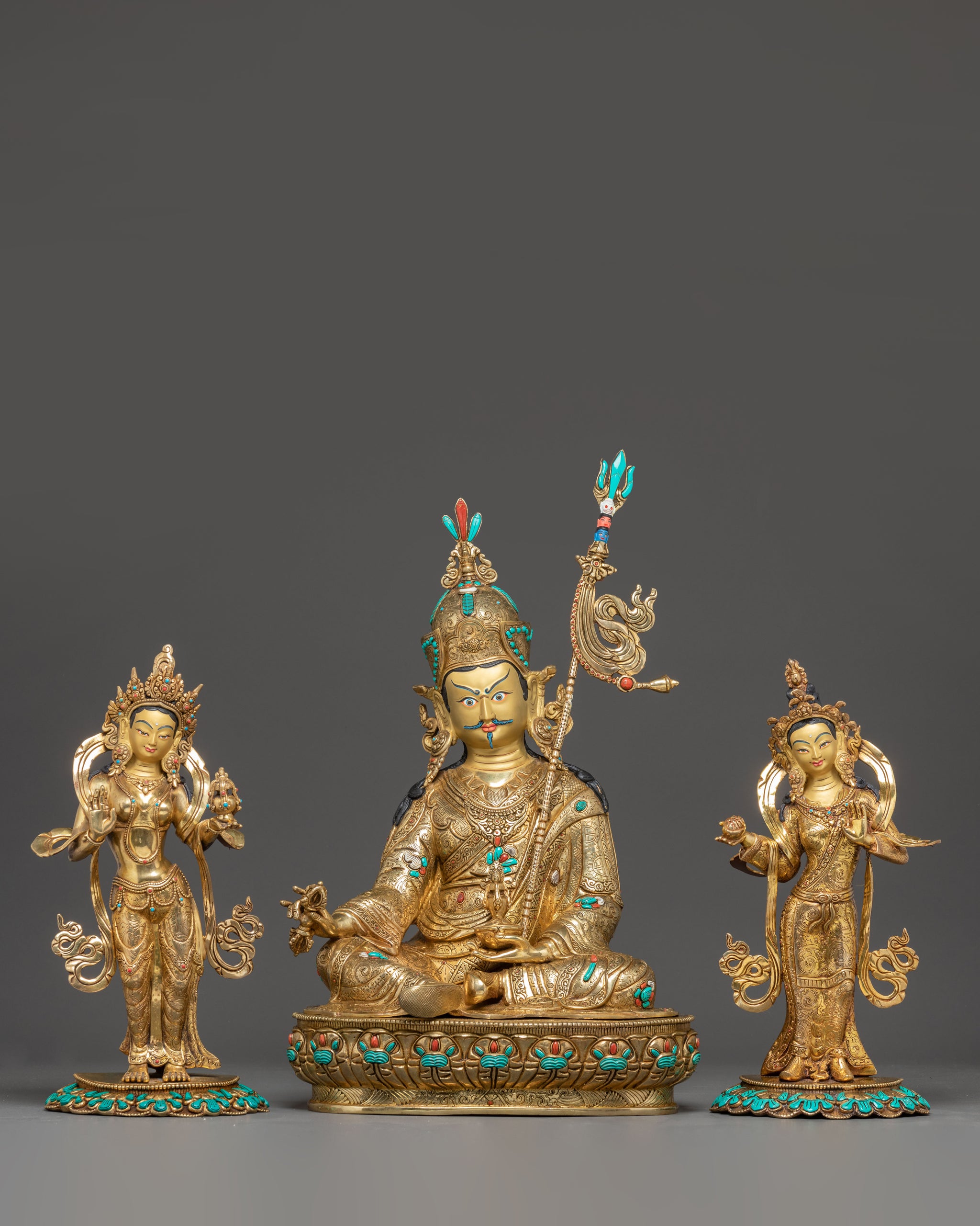 Statue of Guru Rinpoche with Yeshe Tshogyal and Mandharva