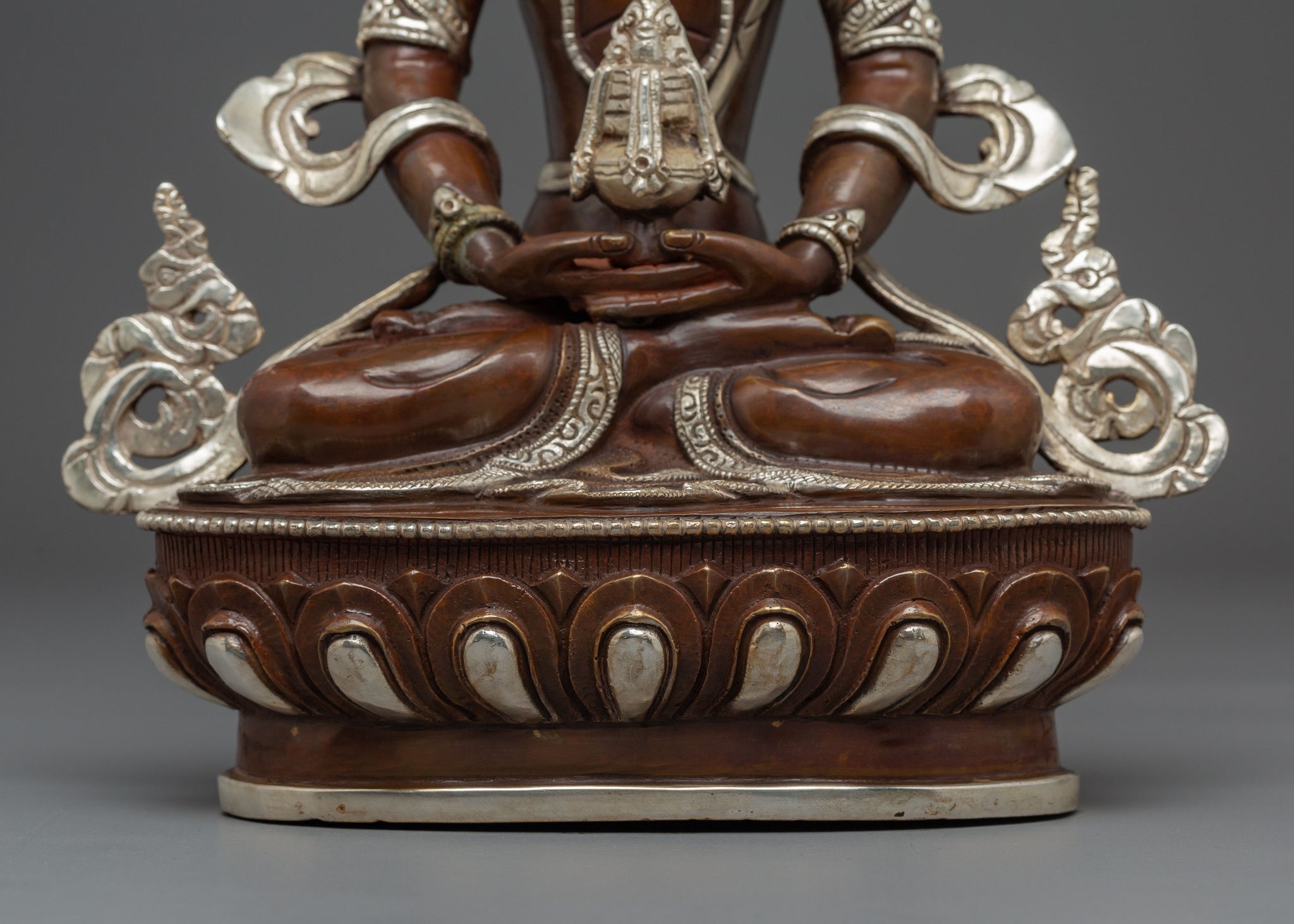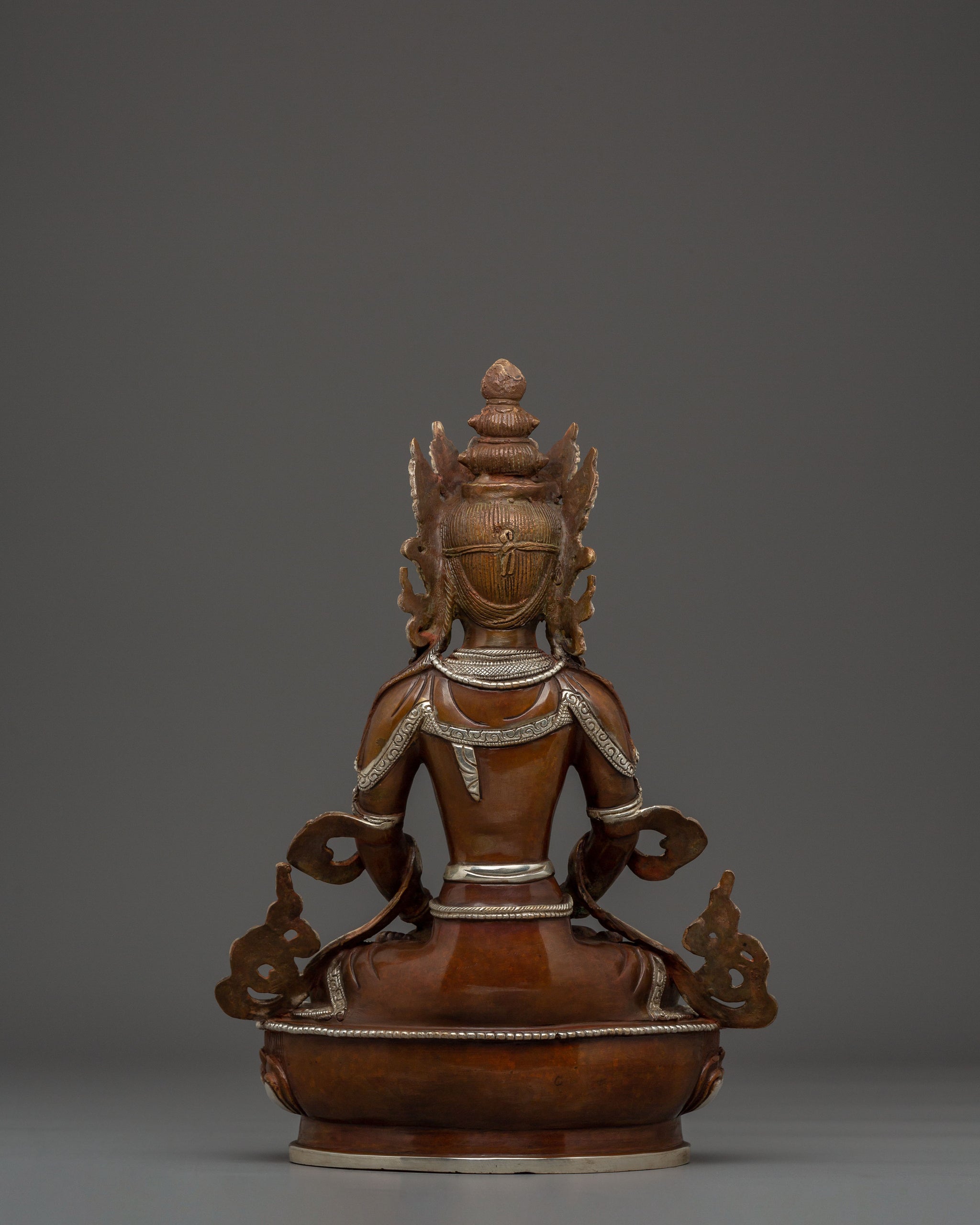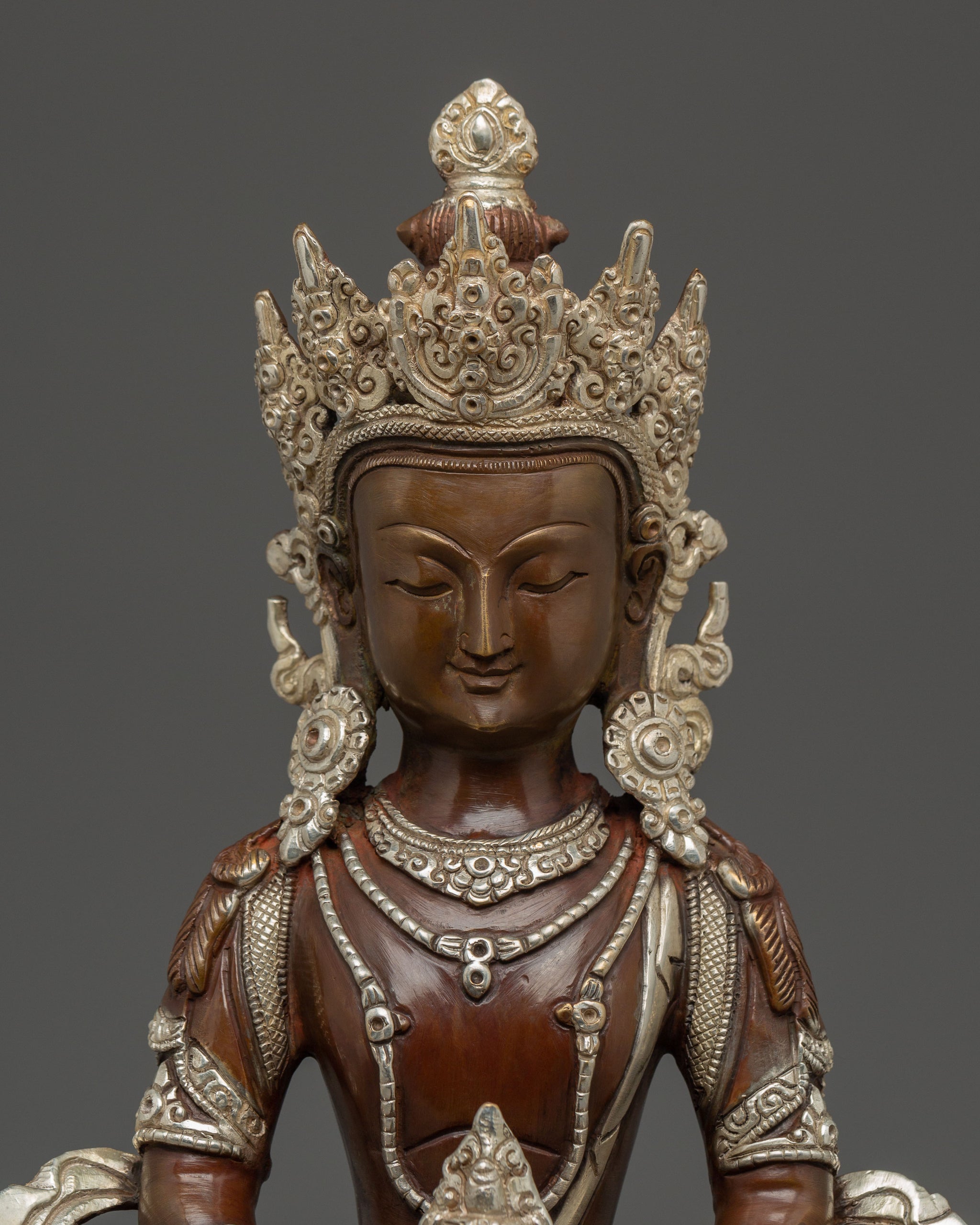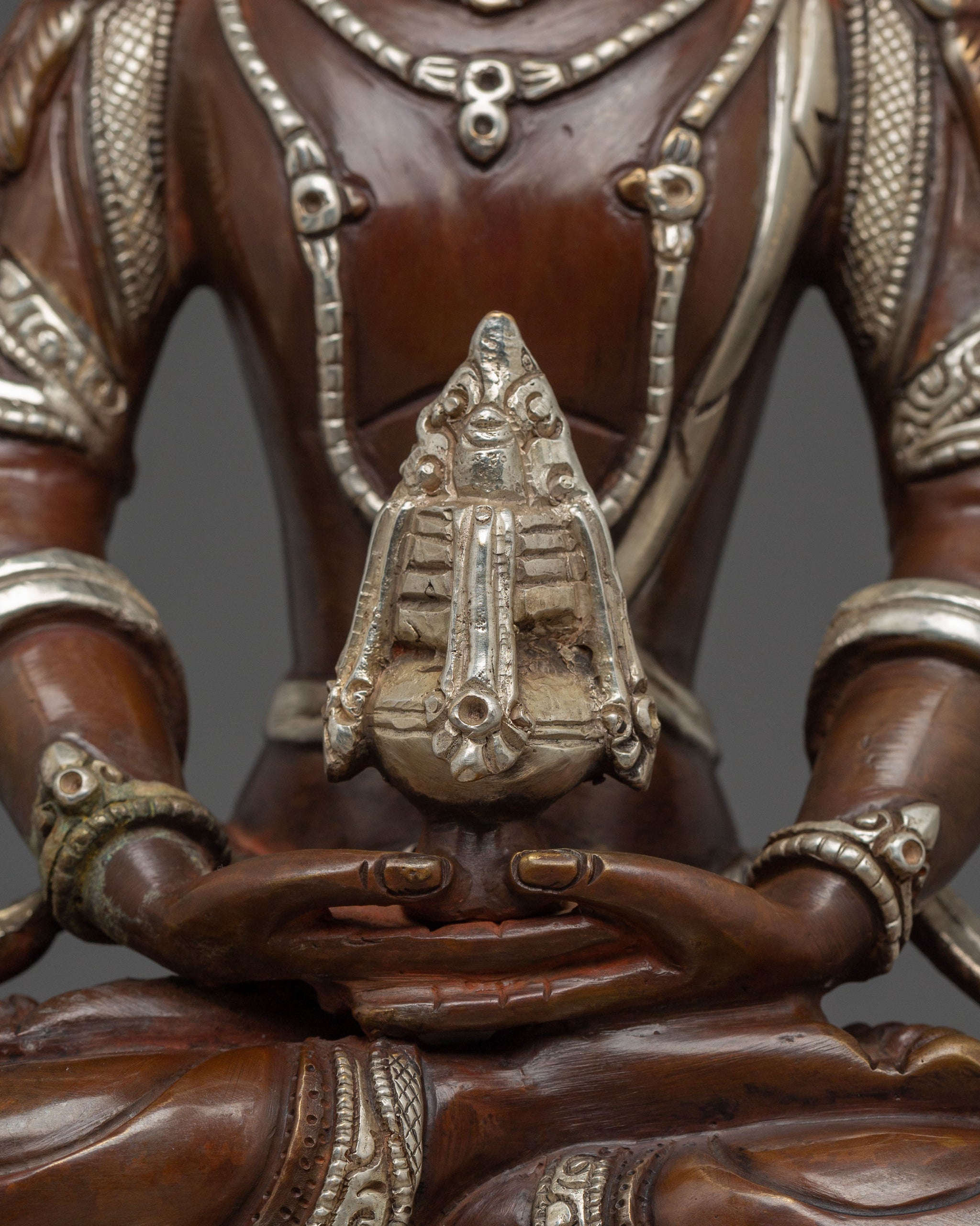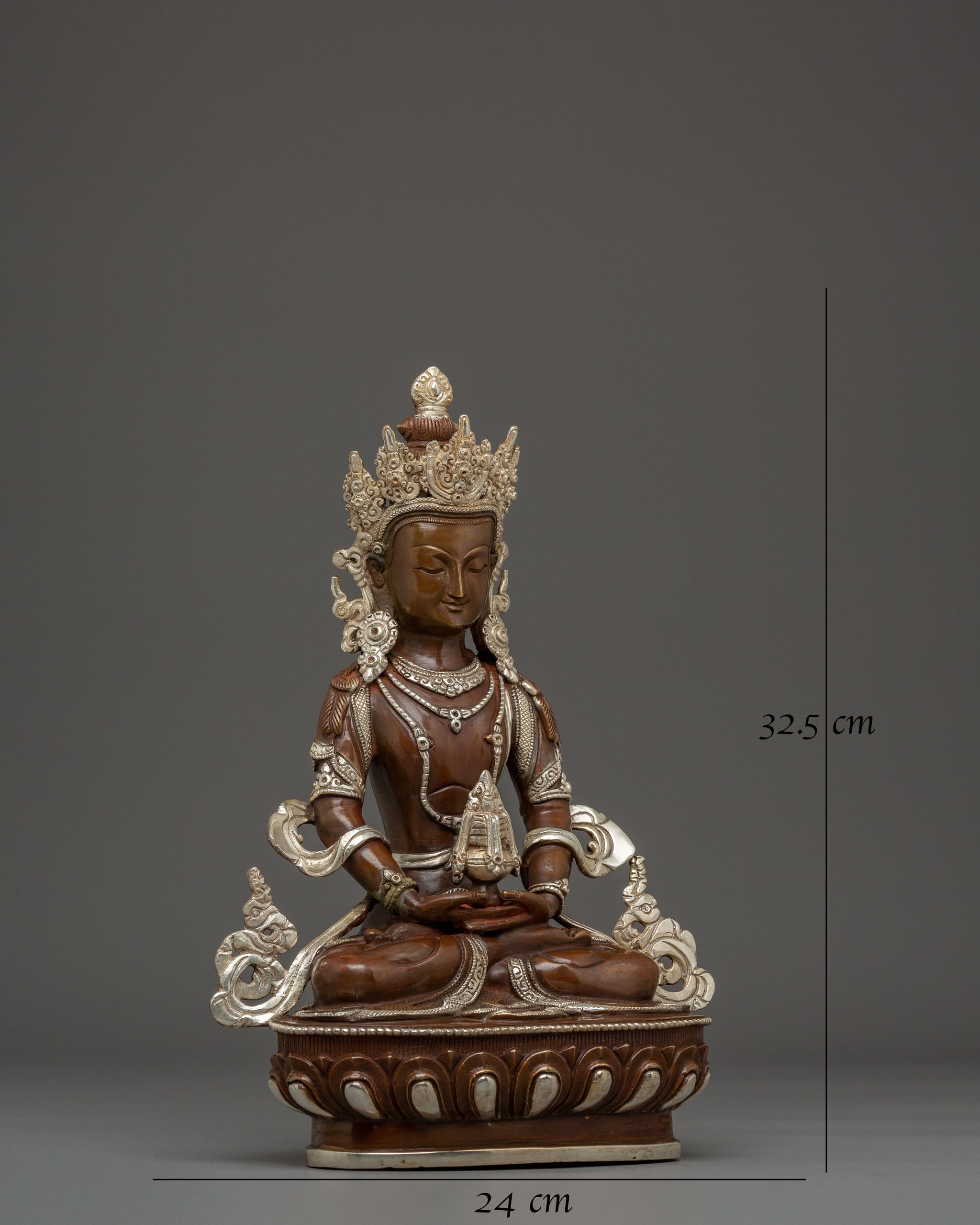 Silver-Plated Oxidized Statue of Healing Buddha Amitayus | Longevity Symbol