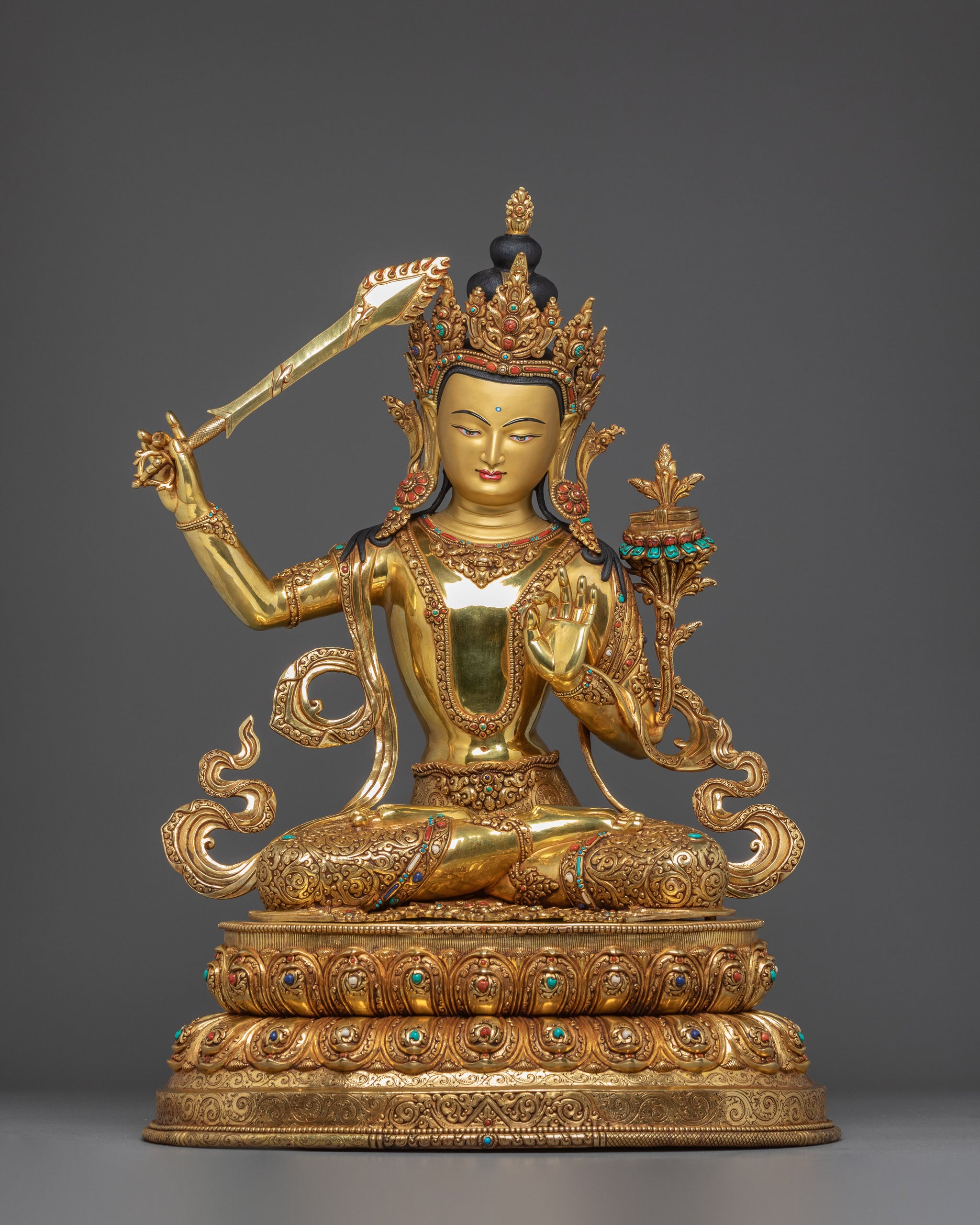 Statue of Bodhisattva Manjushri - 67.5cm Handmade Copper Statue