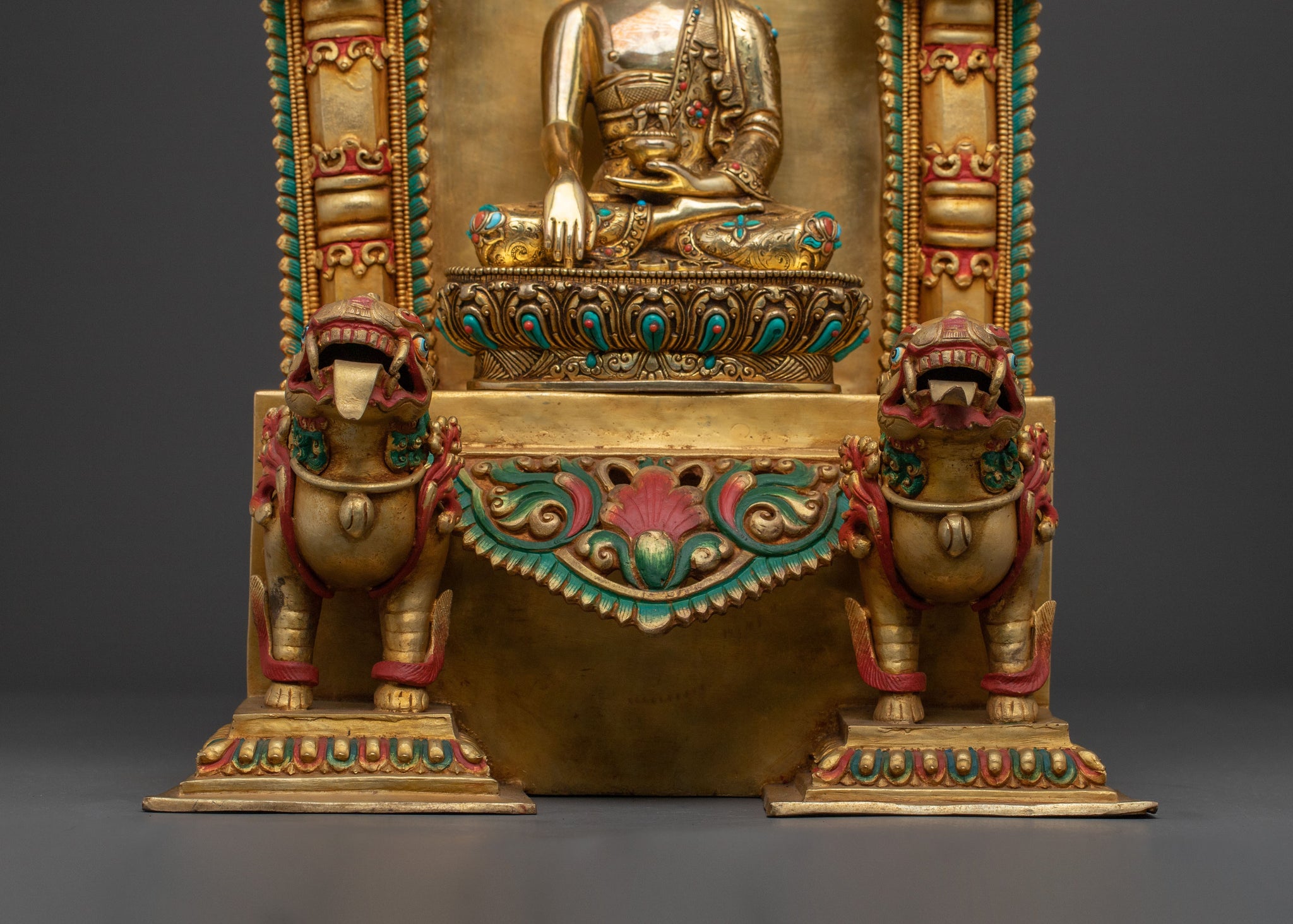 Shakyamuni Buddha in Throne Statue – 24K Gold Gilded Masterpiece