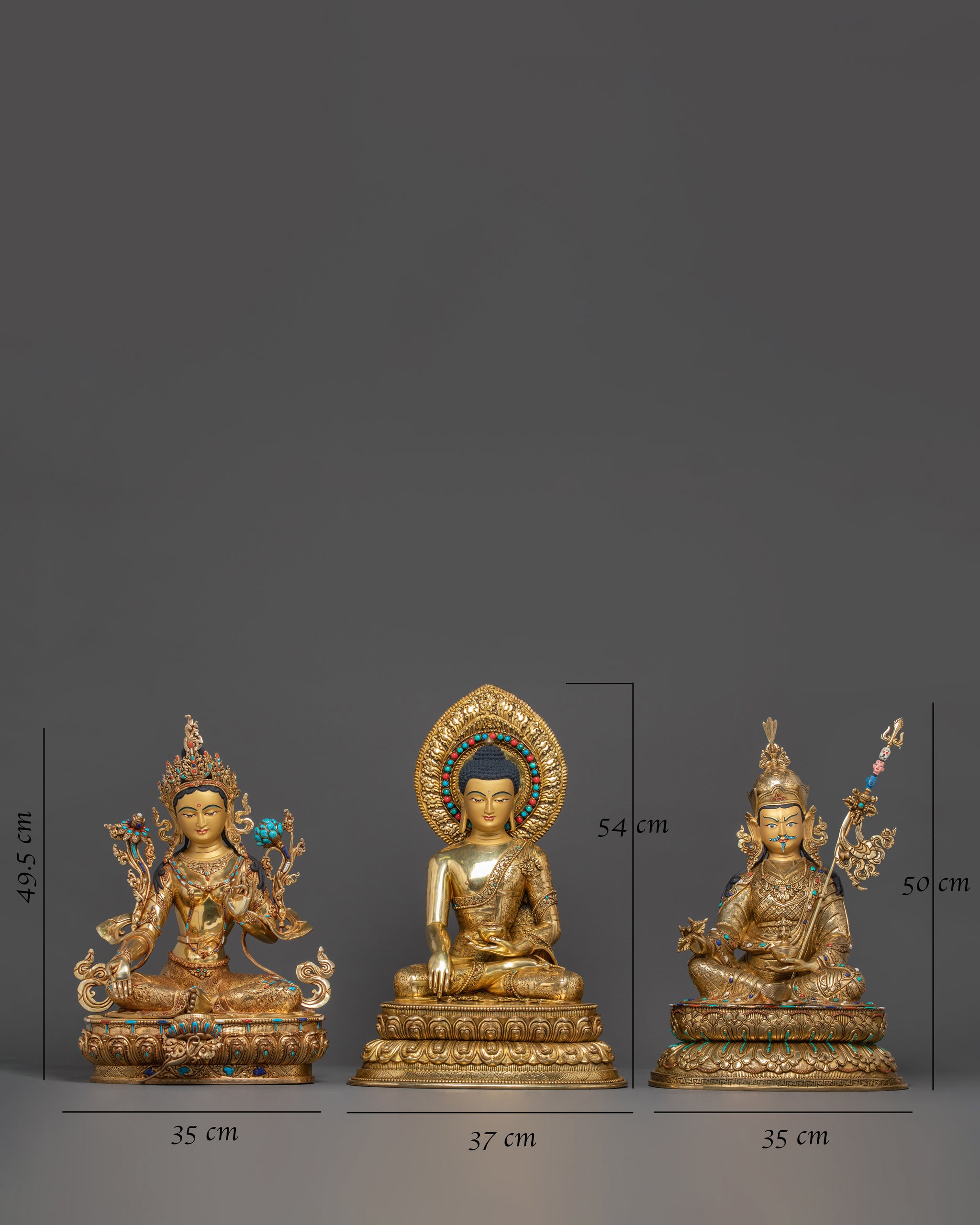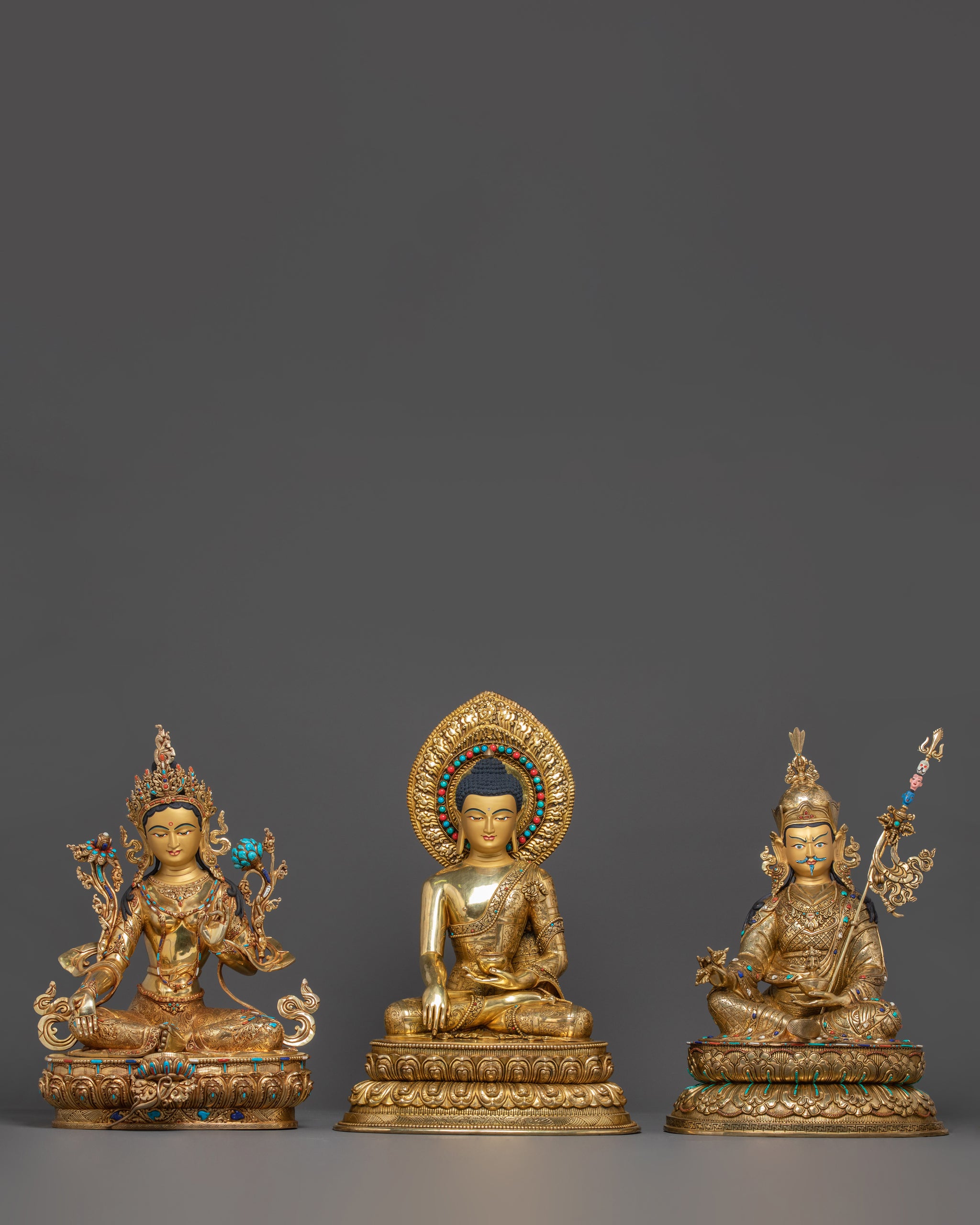 Statue Set of Shakyamuni Buddha, Green Tara, and Guru Rinpoche | Spiritual Trio