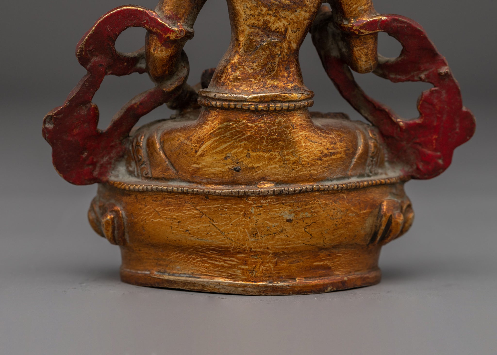 Vajrayogini is stunning. The details are amazing. It's easy to make out her facial expressions, skulls, feet, and the ring of fire around her. You can tell she's handmade. There is a consecration hole in her back.