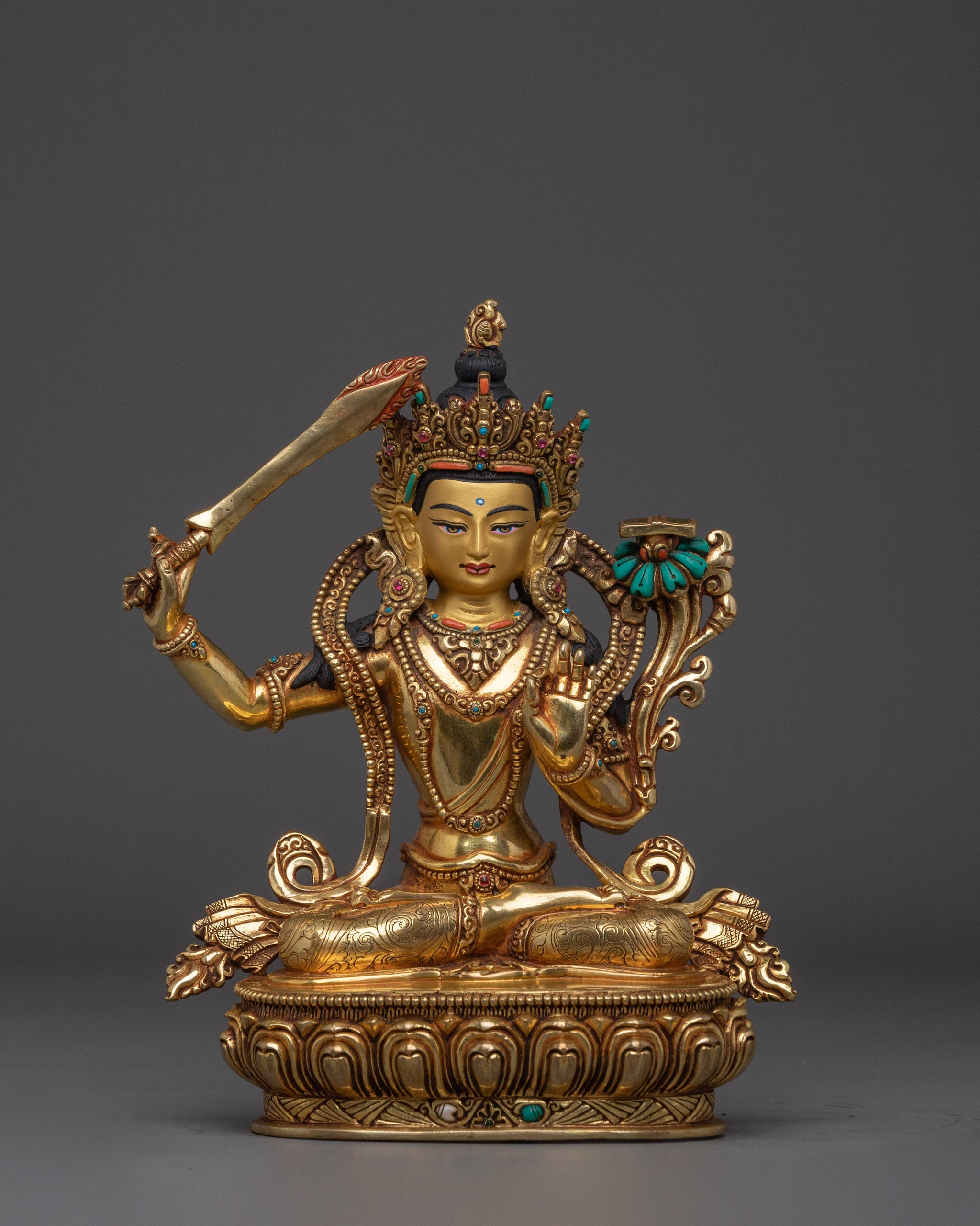 Supreme Wisdom Deity Manjushri Statue | Manjughosa - Divine Bodhisattva Figurine