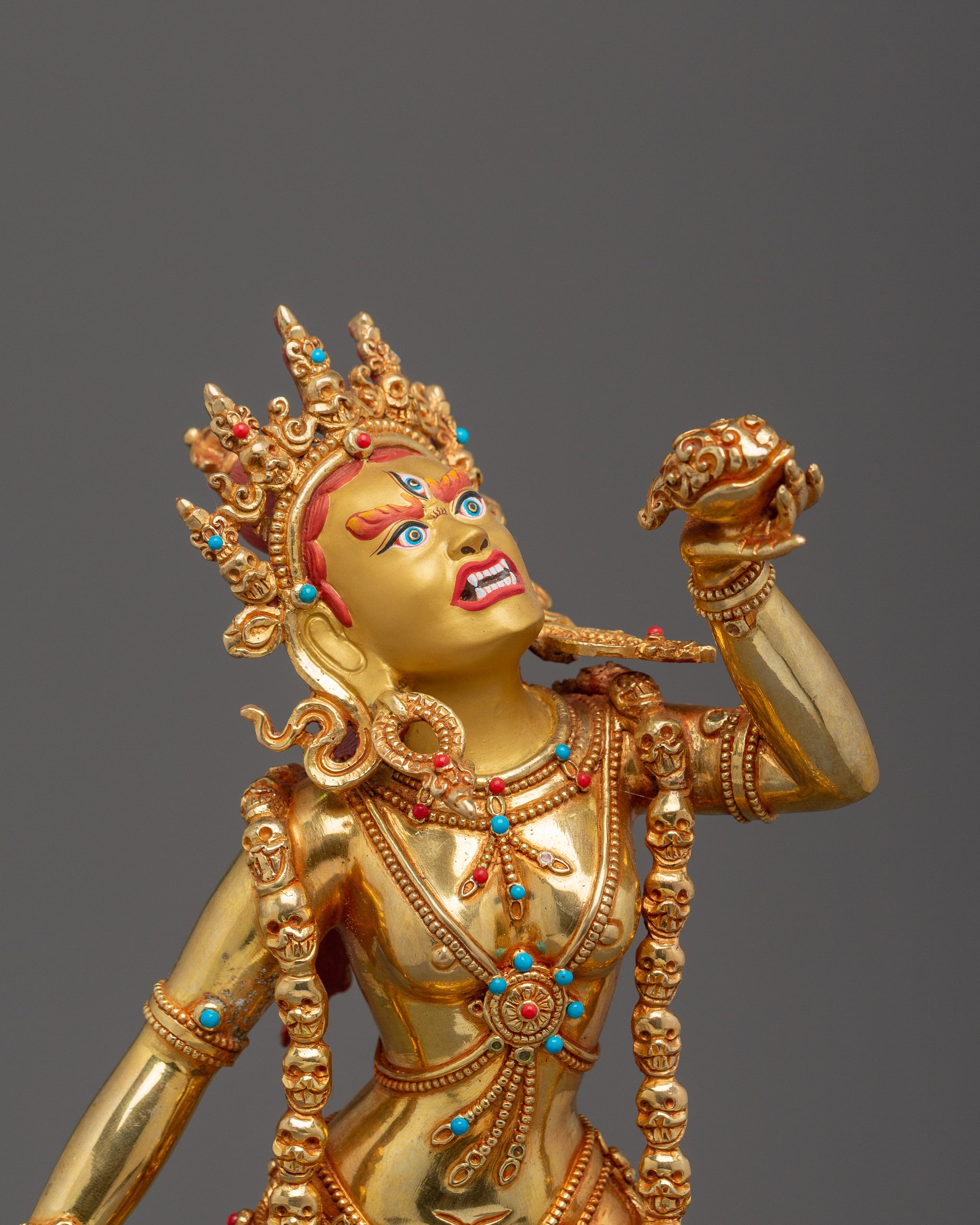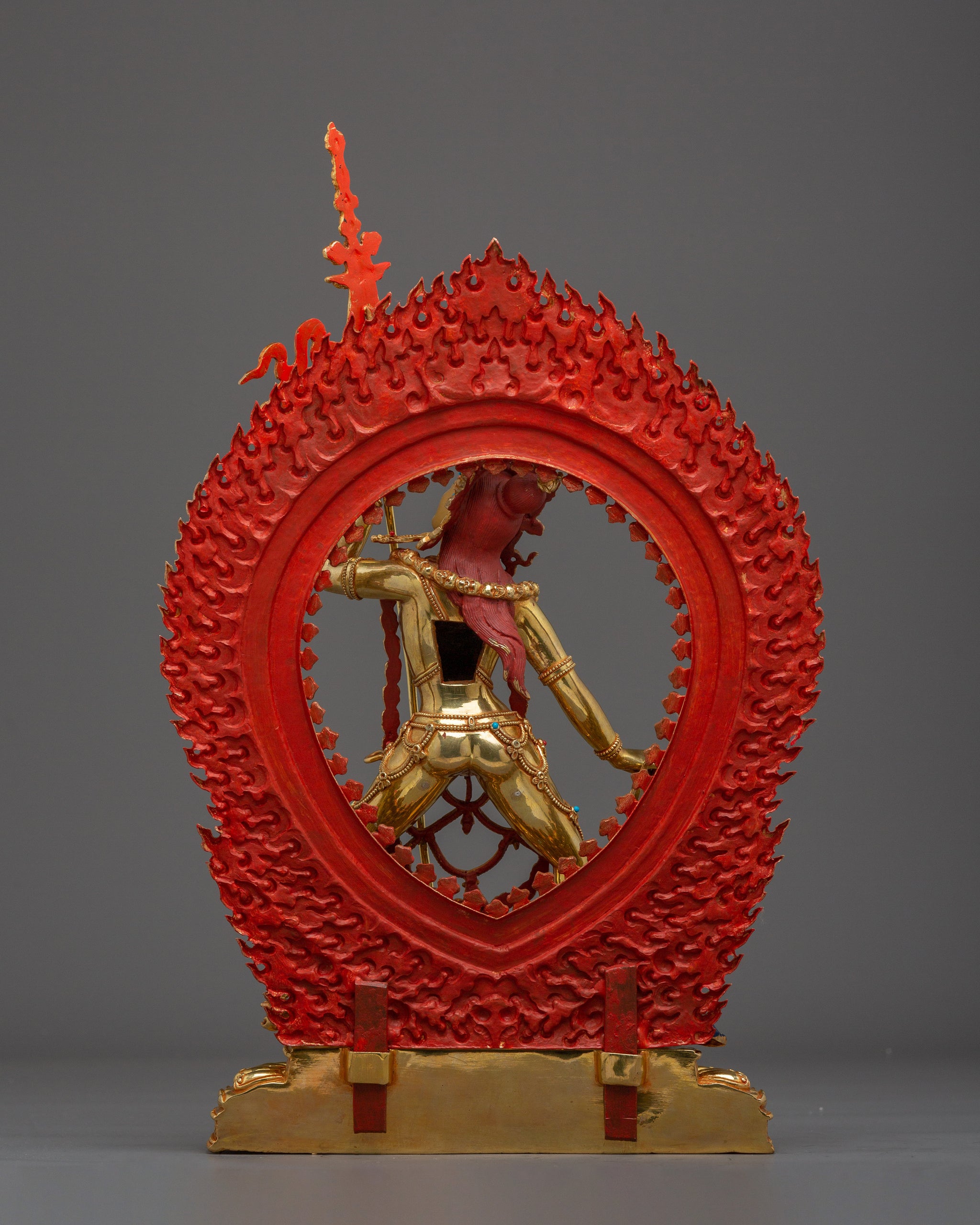 Vajrayogini is stunning. The details are amazing. It's easy to make out her facial expressions, skulls, feet, and the ring of fire around her. You can tell she's handmade. There is a consecration hole in her back.