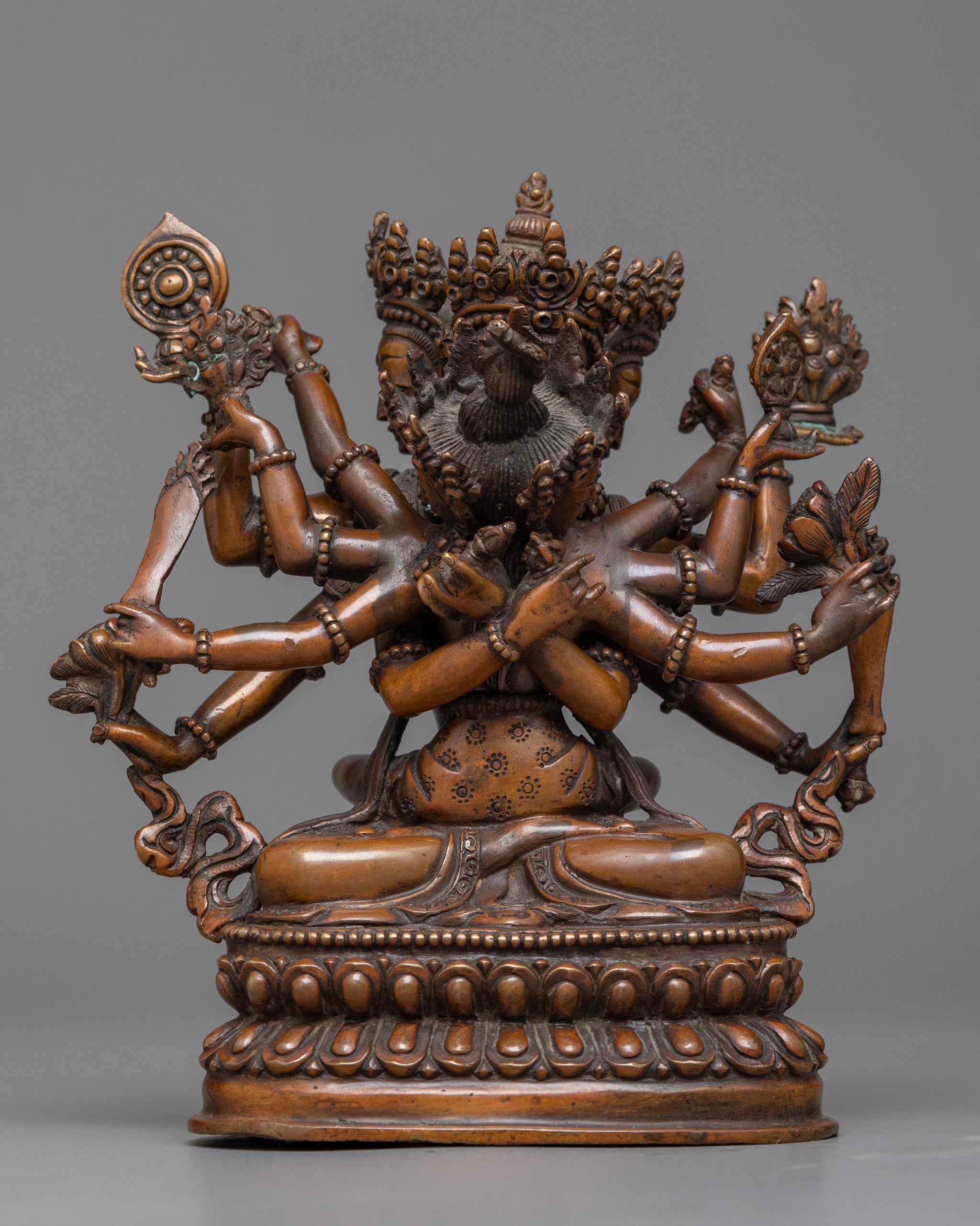 Crafted from oxidized copper, the statue has a timeless charm reminiscent of ancient items seen in Tibetan monasteries. The oxidization process imbues the statue with antiquity and old wisdom, elevating it from a decorative piece to a symbol of enduring spiritual lessons.