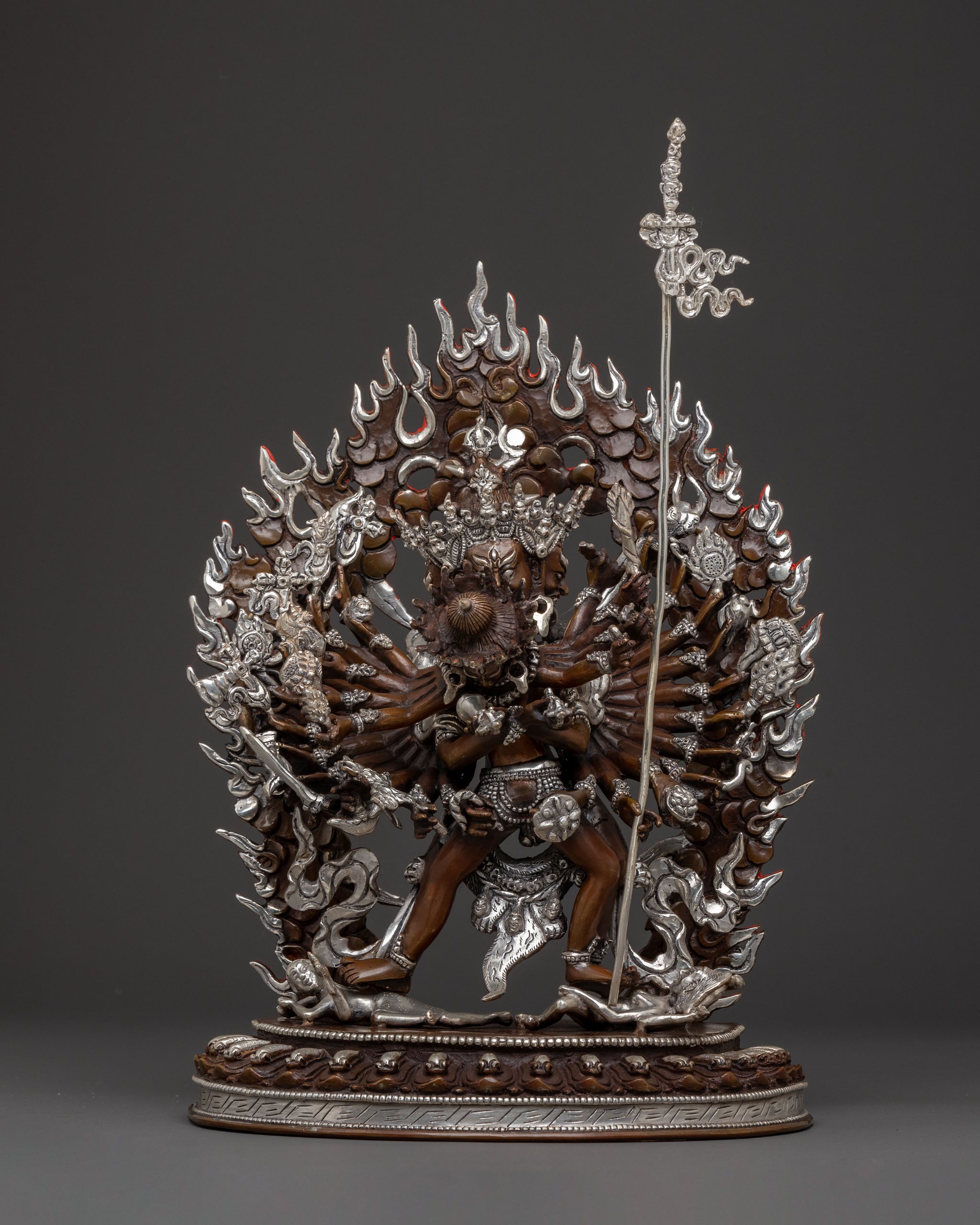 This powerful meditation statue symbolizes the transformation of all phenomena into their pristine state, offering protection and leading practitioners toward enlightenment. Its complex iconography is a visual guide for advanced meditation, inviting deep contemplation on impermanence and profound liberation. Perfect for an advanced practitioner's altar or as a powerful centerpiece in a dedicated spiritual sanctuary, this statue inspires focus and commitment. It serves as a reminder of the intricate path to enlightenment, bringing a majestic and transformative energy to any environment.