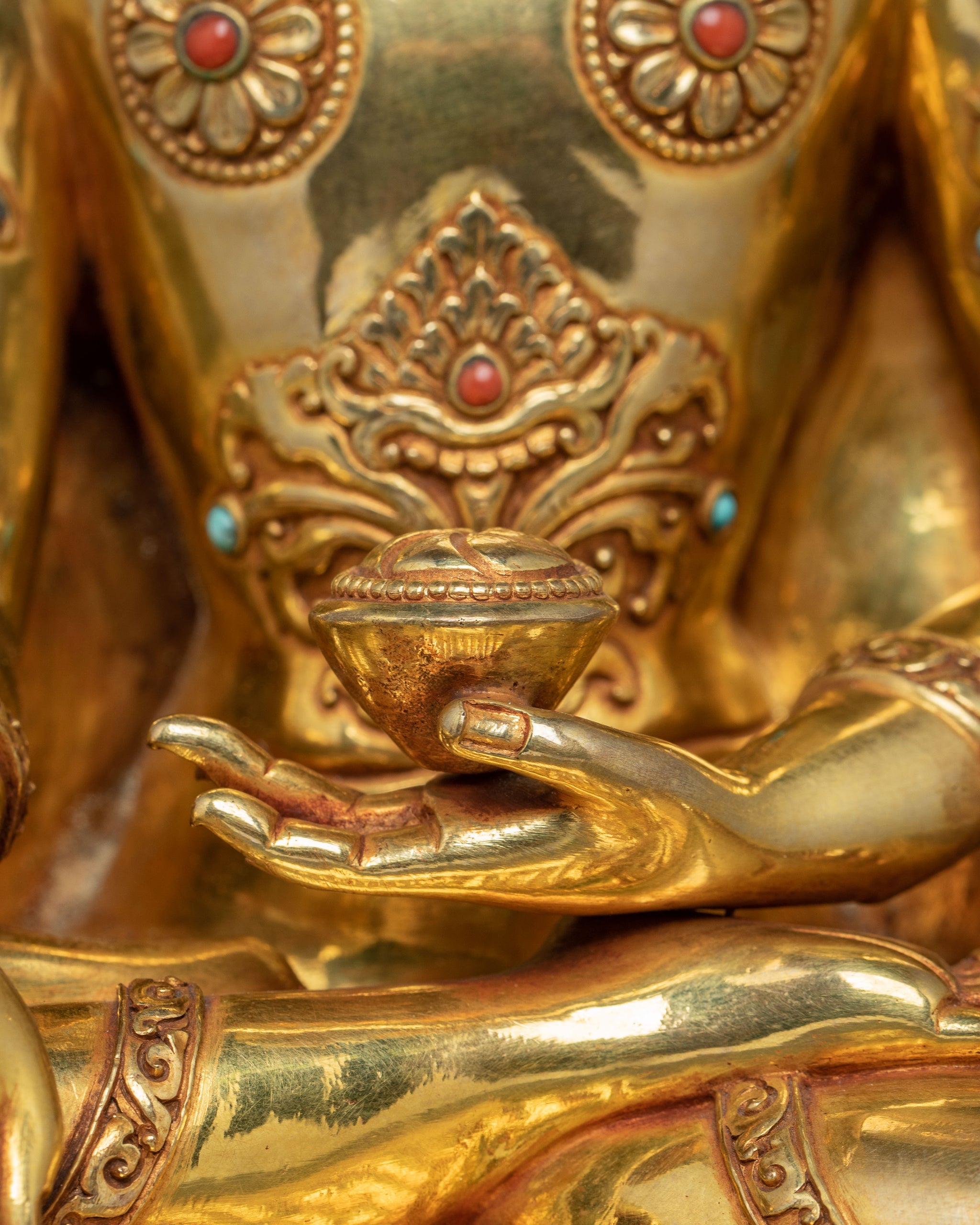 Very beautiful and perfect statue of the Dhyani-Buddha Amogasiddhi representing the wisdom of fulfillment, accomplishment and spiritual success.