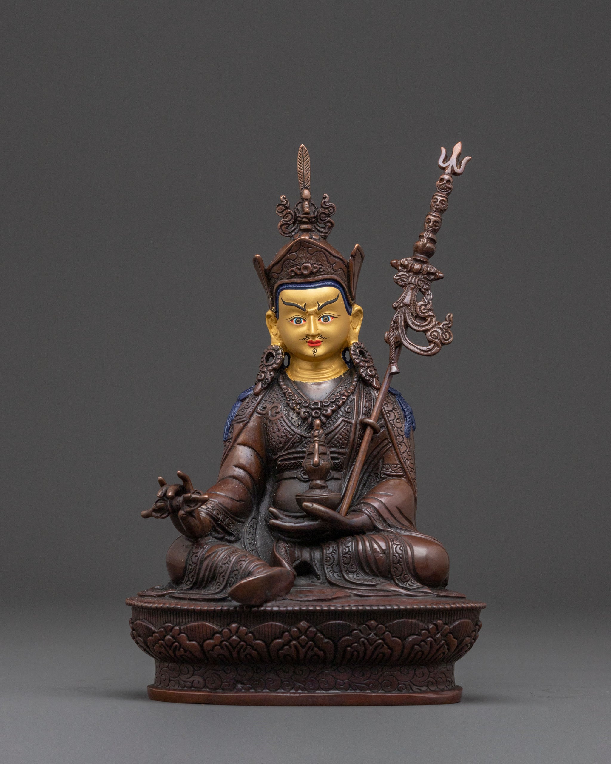 Teacher of the Dharma Guru Rinpoche Statue – Hand-Gilded Copper
