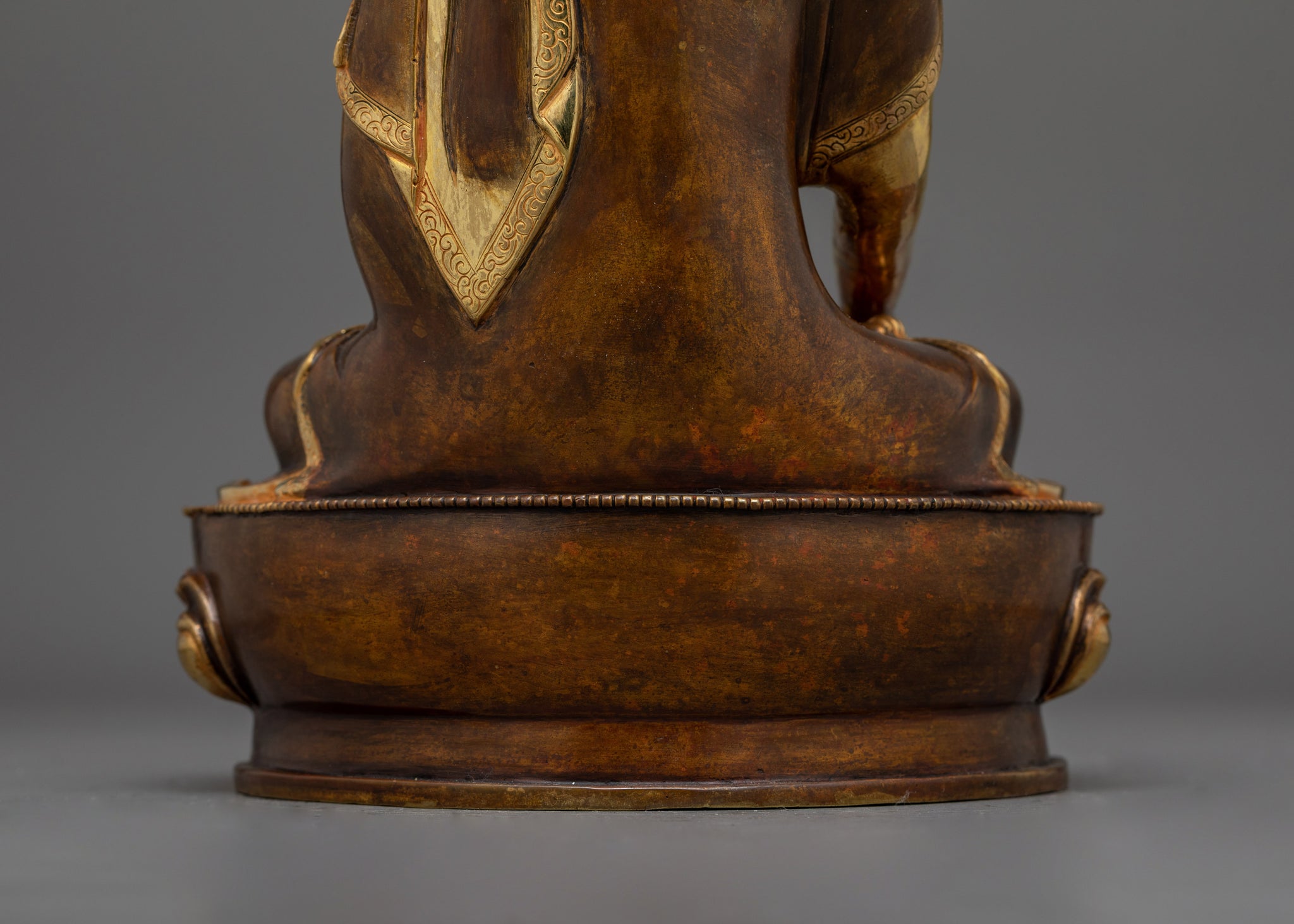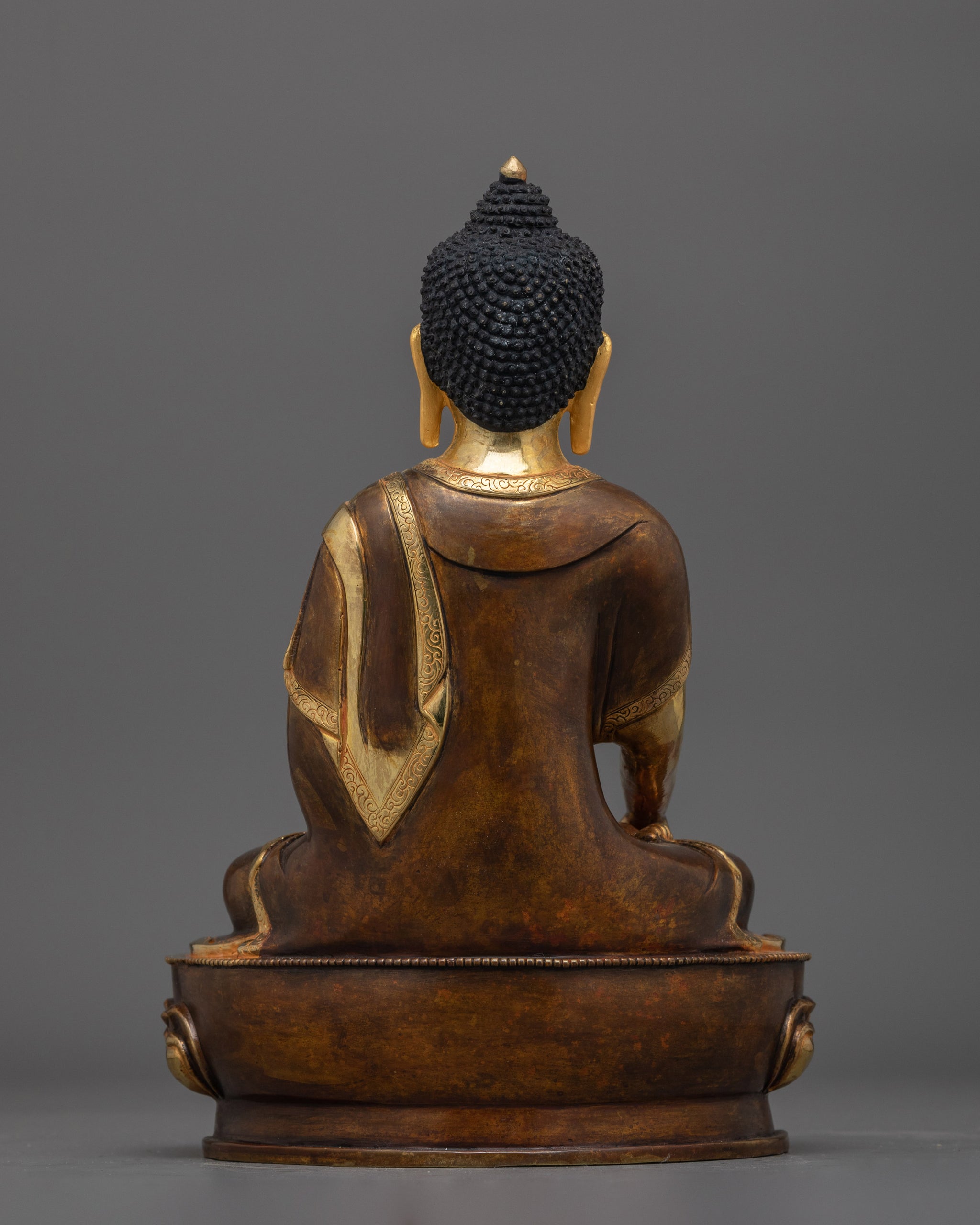 Elevate your spiritual practice with the serene presence of Shakyamuni Buddha, beautifully captured in this meticulously crafted copper statue of The Enlightened One for Your Sacred Space. Handcrafted by skilled artisans in Patan, Nepal—a city renowned for its exceptional metalwork—this statue is not just an artistic masterpiece but a profound symbol of peace, wisdom, and enlightenment.