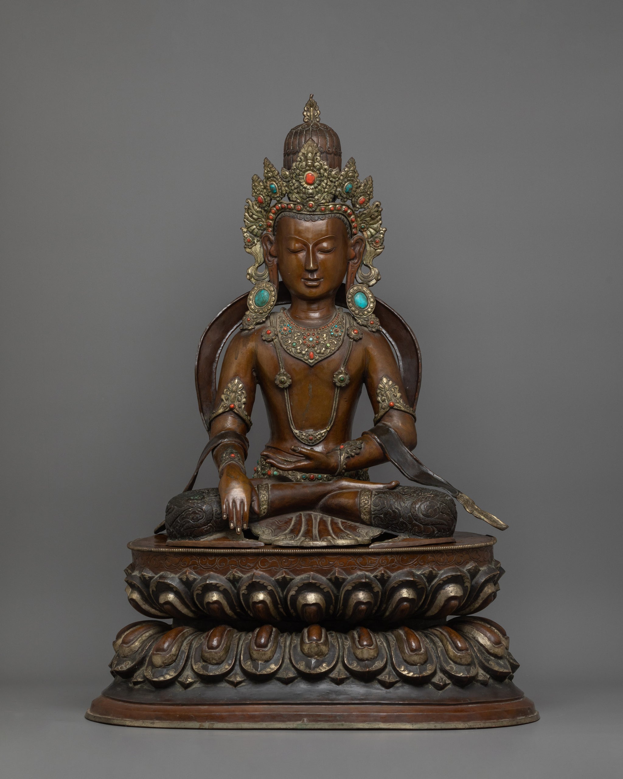 Very beautiful and perfect statue of the Dhyani-Buddha Amogasiddhi representing the wisdom of fulfillment, accomplishment and spiritual success.