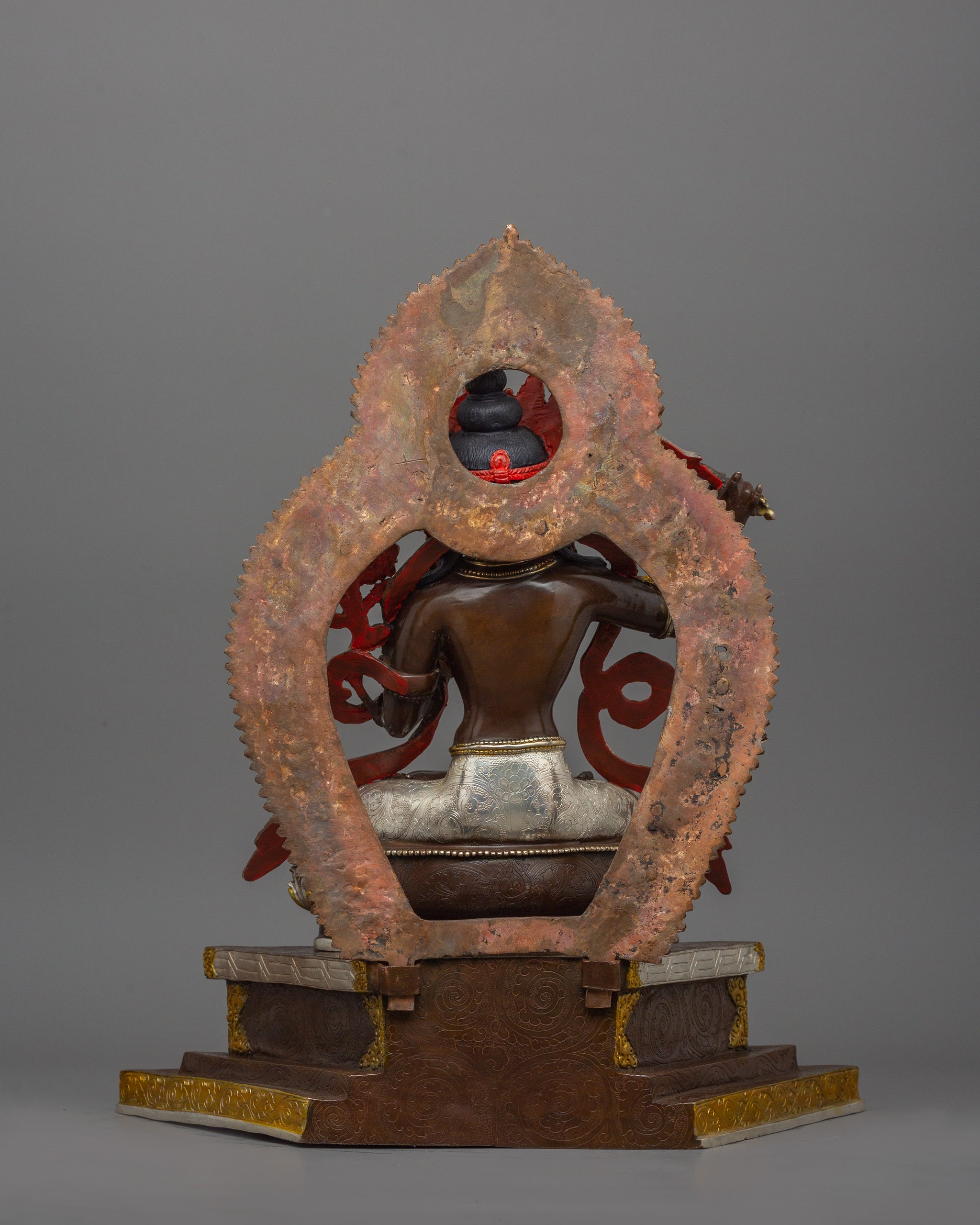 Vajrayogini is stunning. The details are amazing. It's easy to make out her facial expressions, skulls, feet, and the ring of fire around her. You can tell she's handmade. There is a consecration hole in her back.