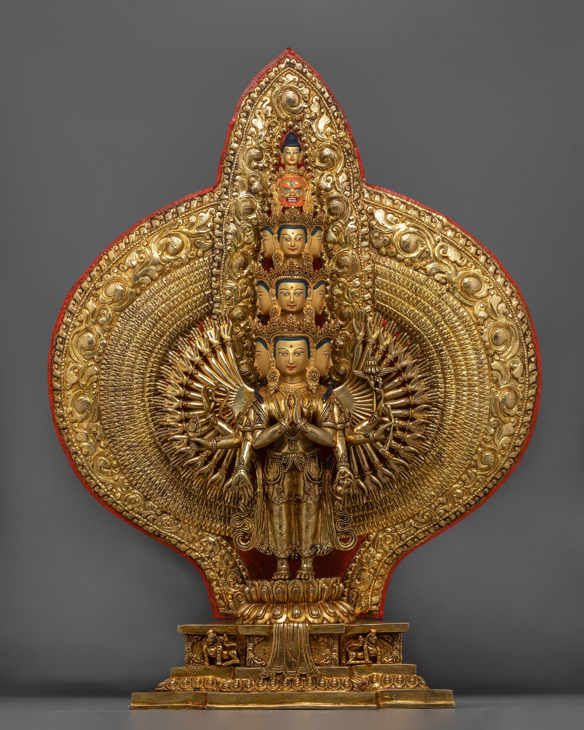 Thousand Armed Chenrezig Hand-Carved Buddhist Statue Embodying the Compassionate Power to Heal and Protect