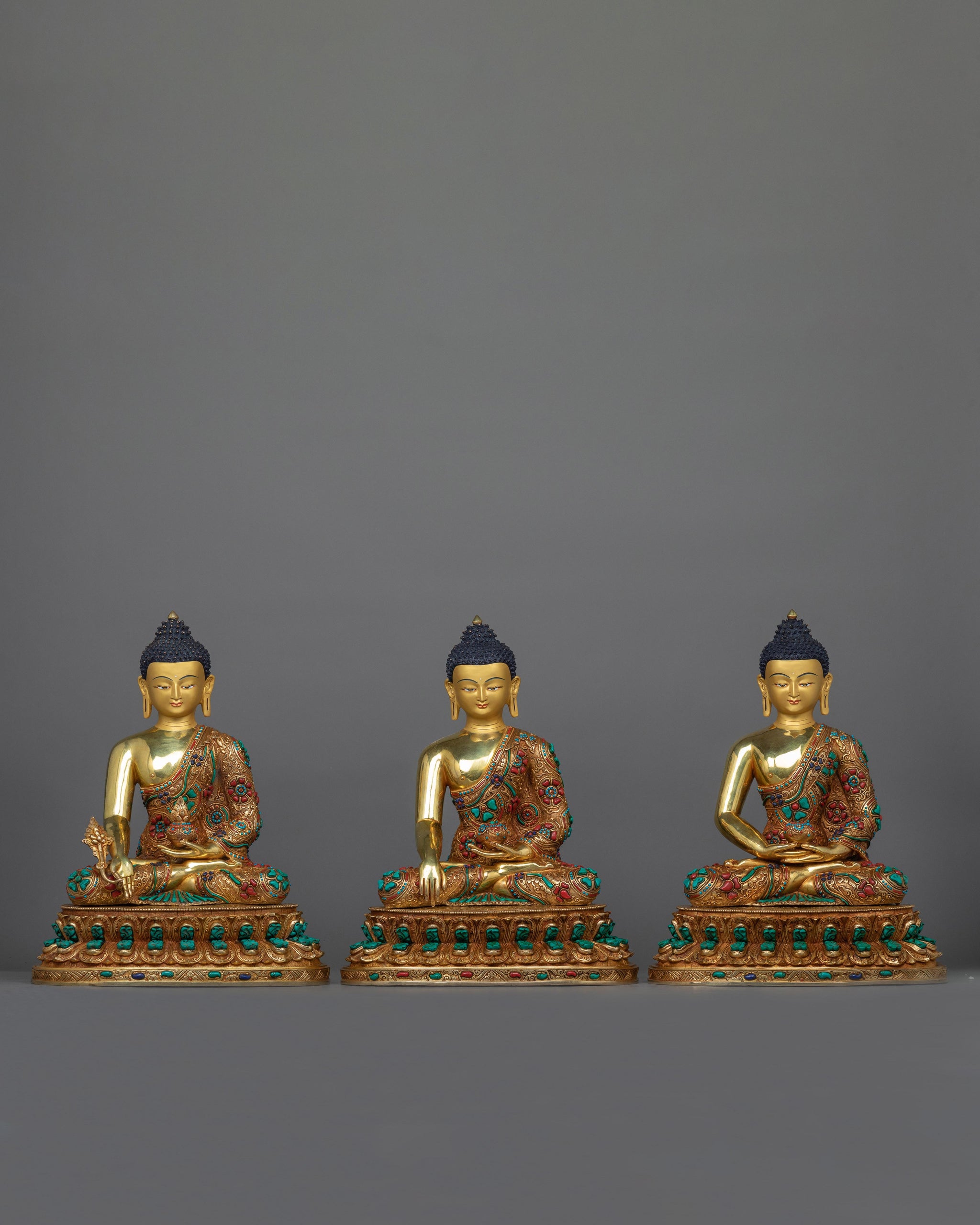Triumphant Trio of Enlightenment: Medicine, Shakyamuni, and Amitabha Buddha Statue