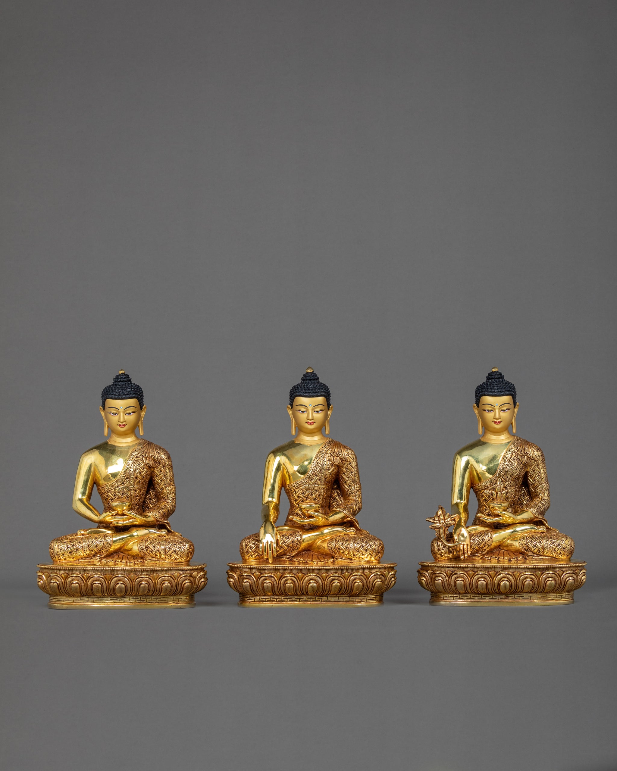 Traditionally Sculpted Three Meditational Buddha Sculpture