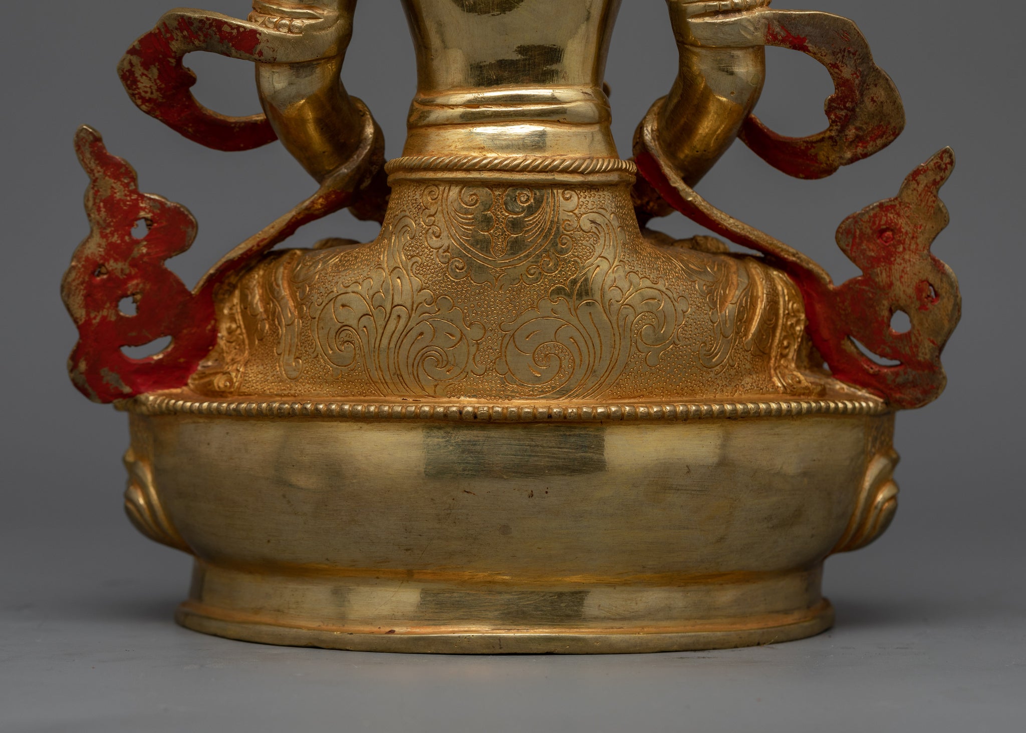 Vajrayogini is stunning. The details are amazing. It's easy to make out her facial expressions, skulls, feet, and the ring of fire around her. You can tell she's handmade. There is a consecration hole in her back.