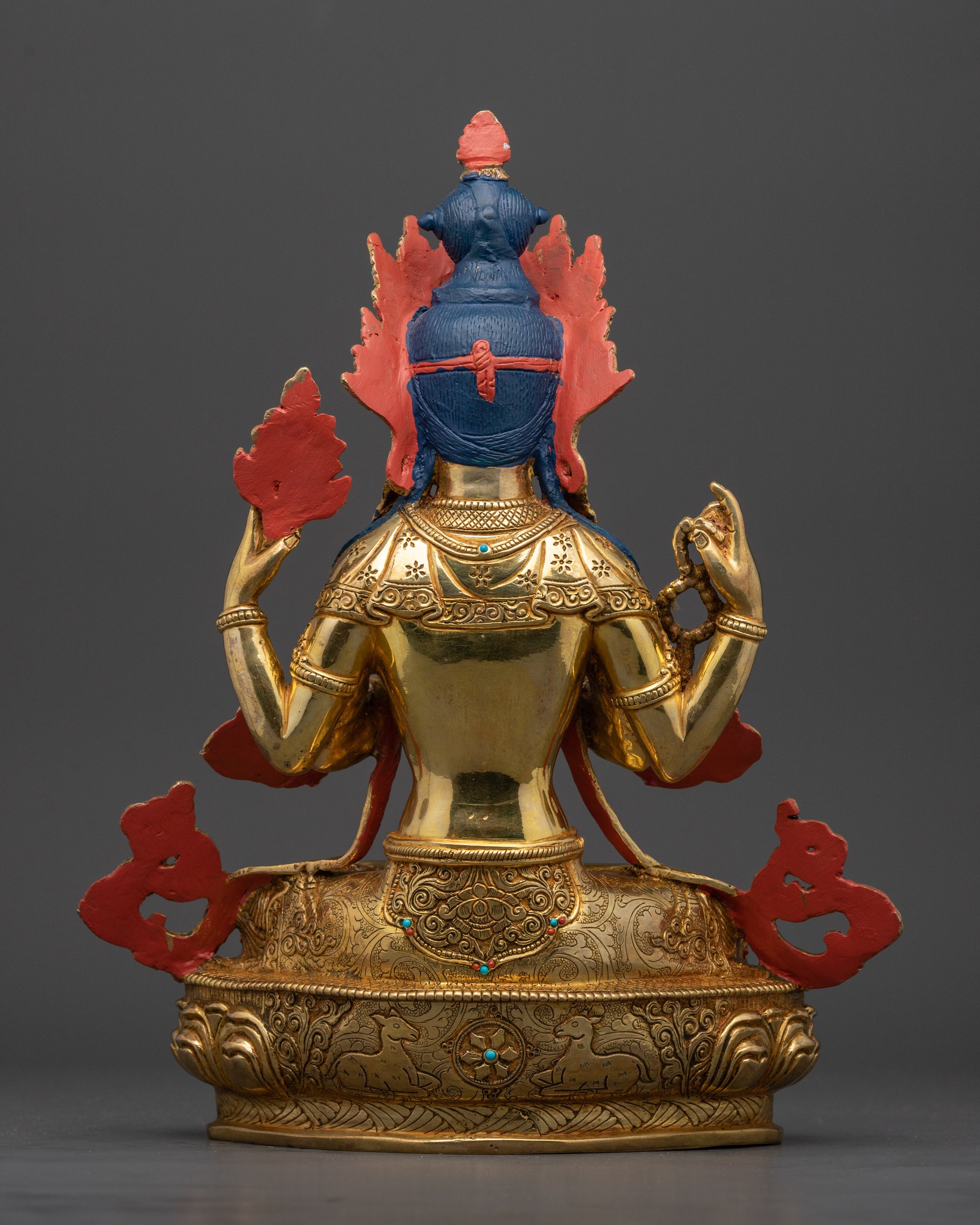 Tibetan Buddha Chenrezig Statue | 13.6 Inches 24K Gold Gilded Compassion Deity