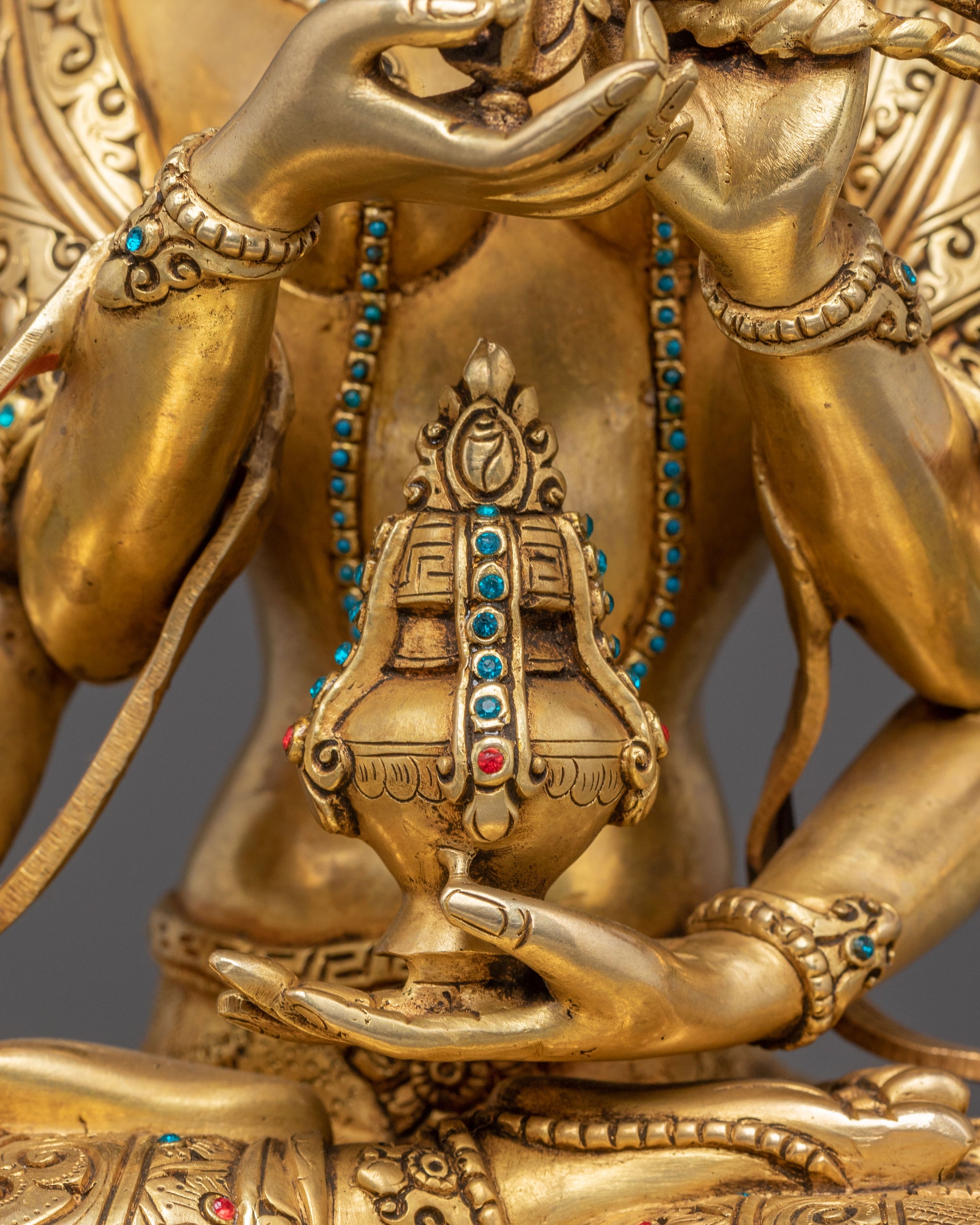Tibetan Buddhism Deity Namgyalma Statue: Hand-Gilded Copper Masterpiece