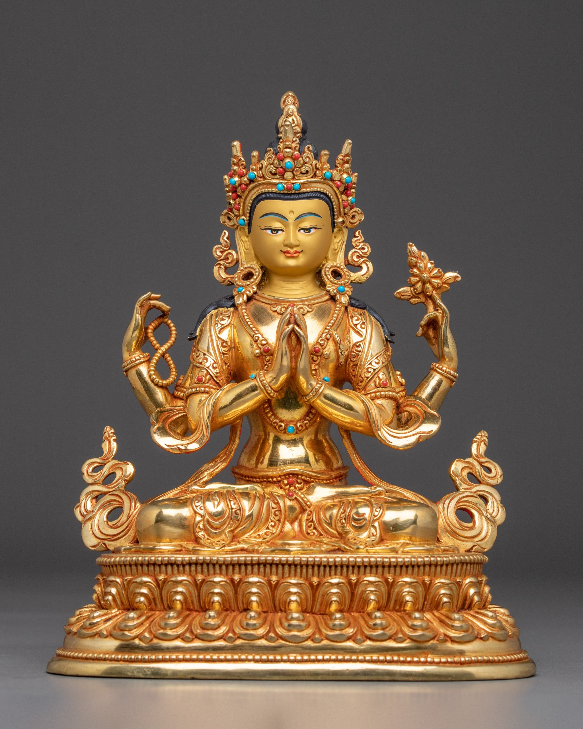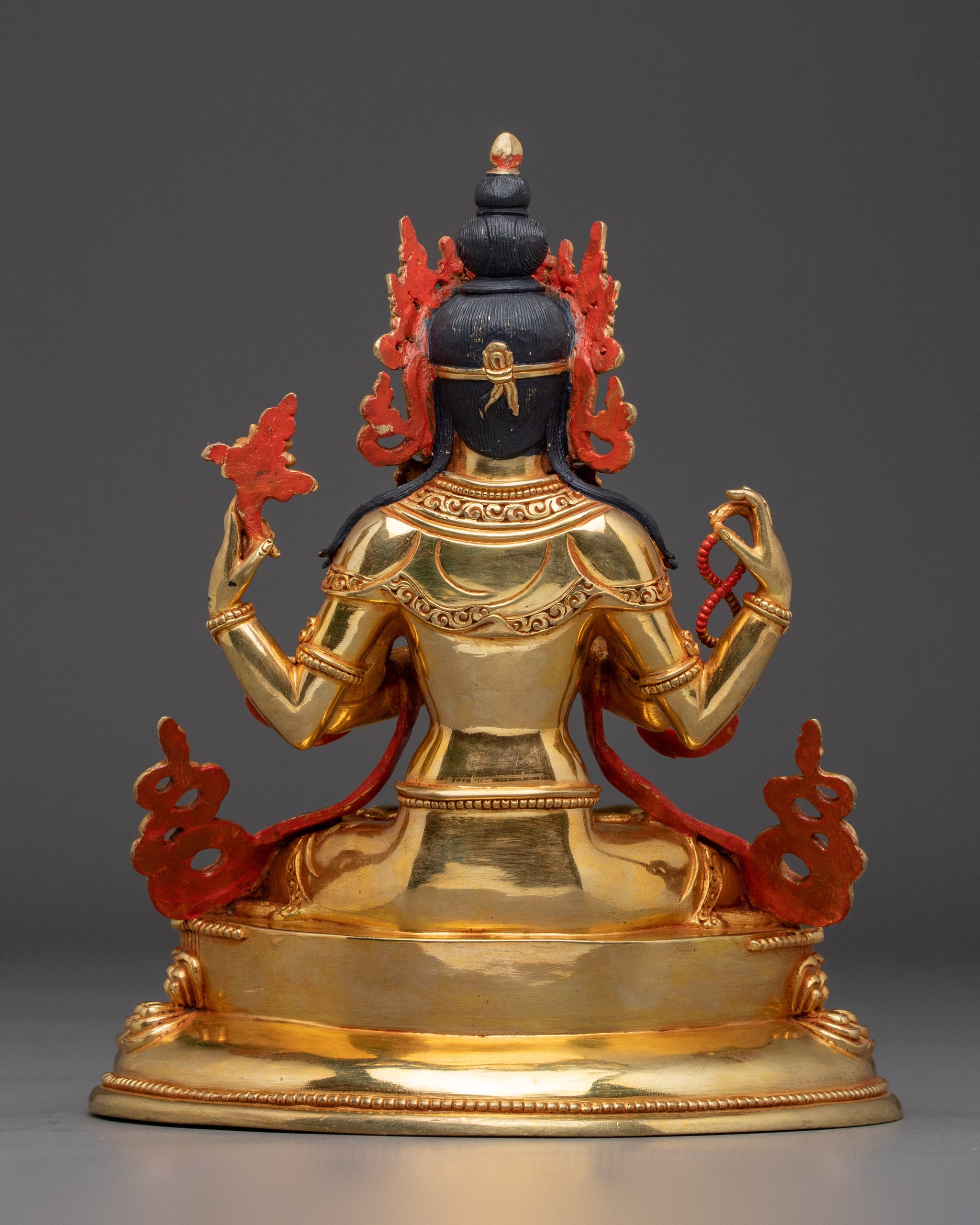 Tibetan Compassion Deity Chenrezig | Gold-Gilded Peaceful Sculpture