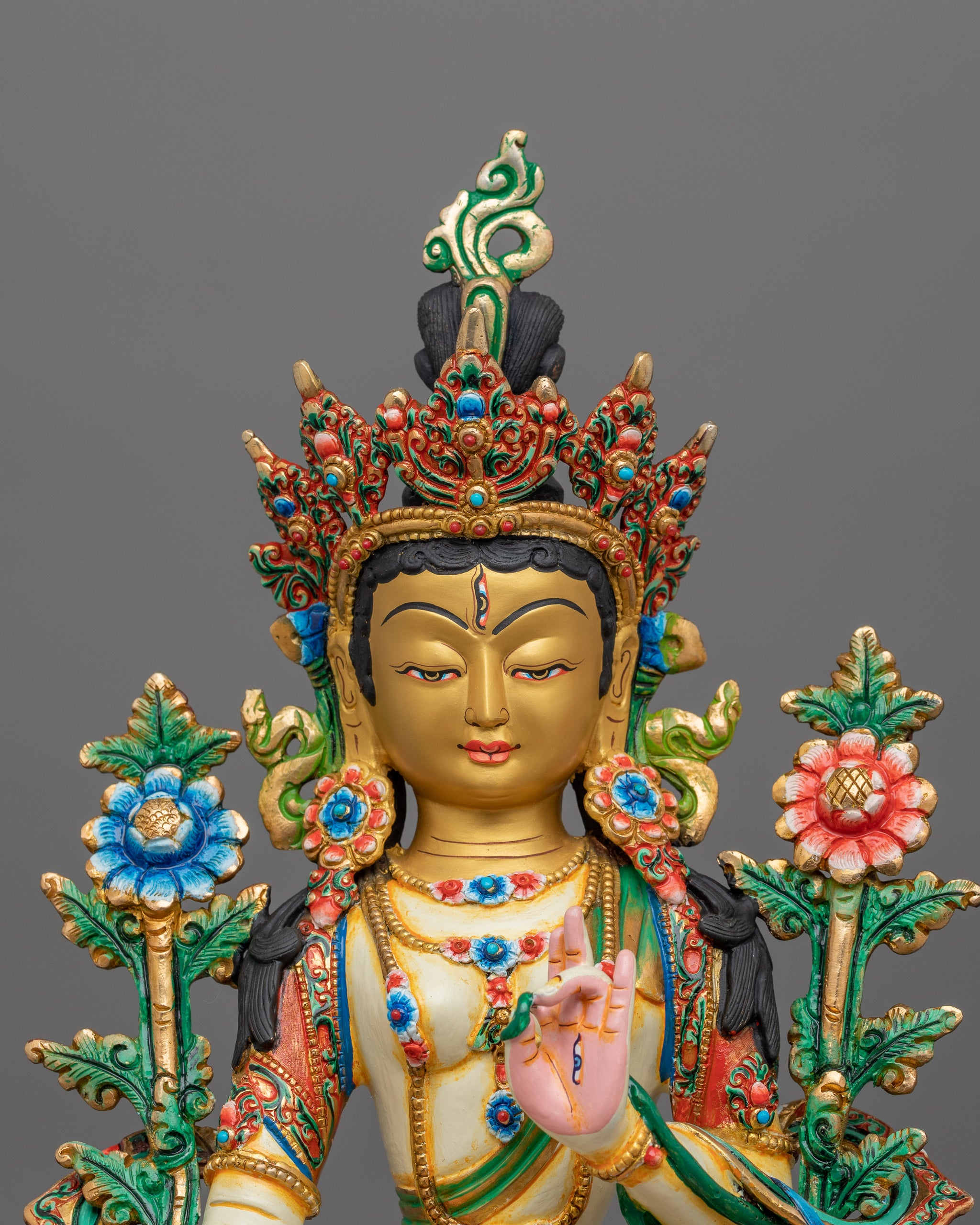 Tibetan Figurine of Seven Eyes Deity White Tara | Goddess of Healing and Protection