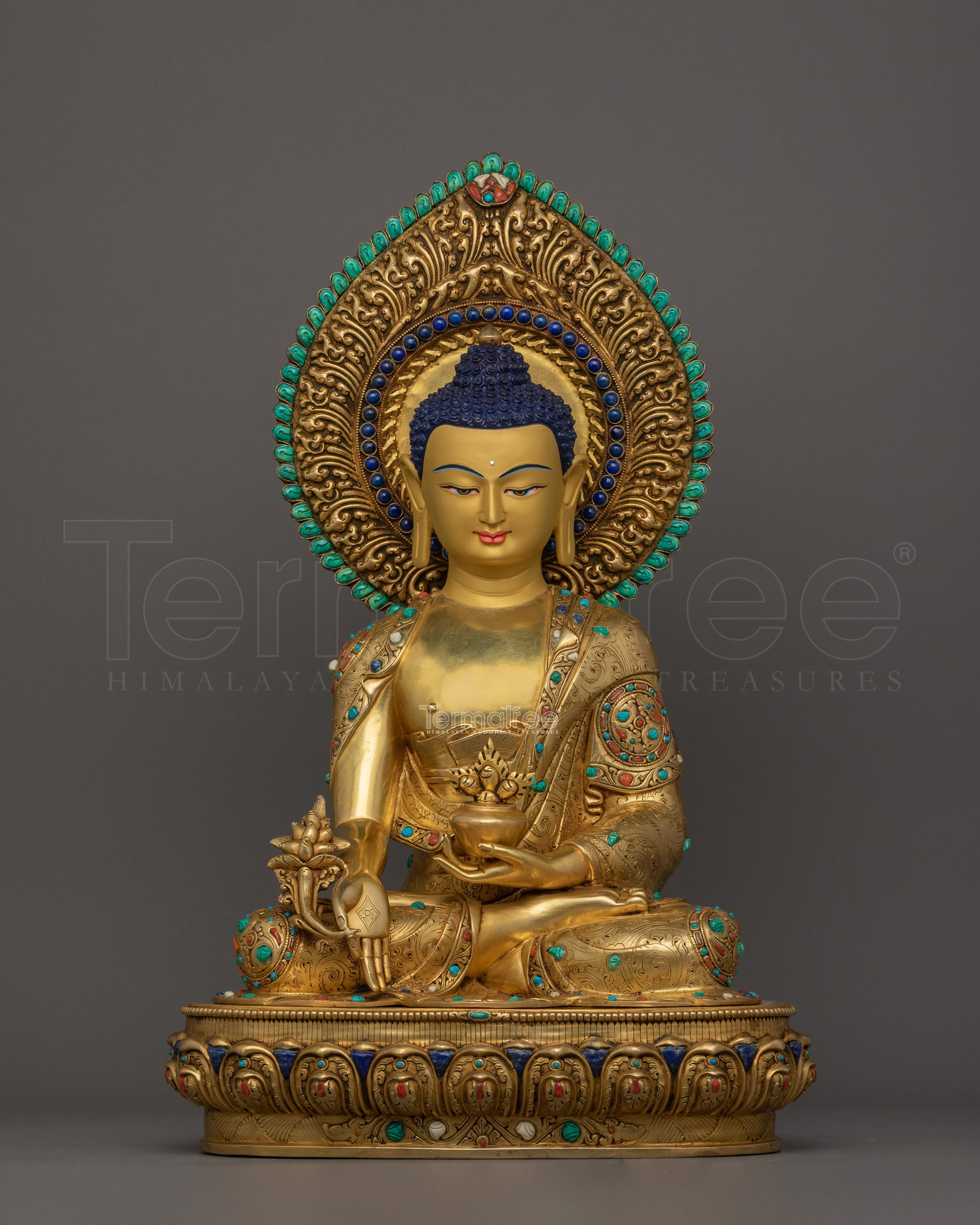 The Tibetan Healing Deity Statute of Medicine Buddha | 24K Gold Gilded Figurine