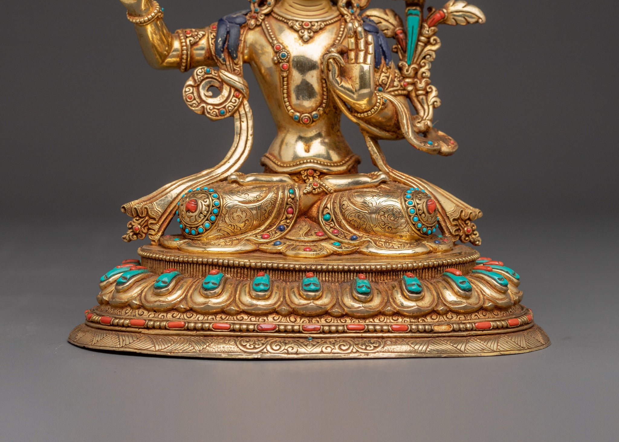 Tibetan Manjushri Wisdom Deity Statue | 24K Gold Gilded Statue