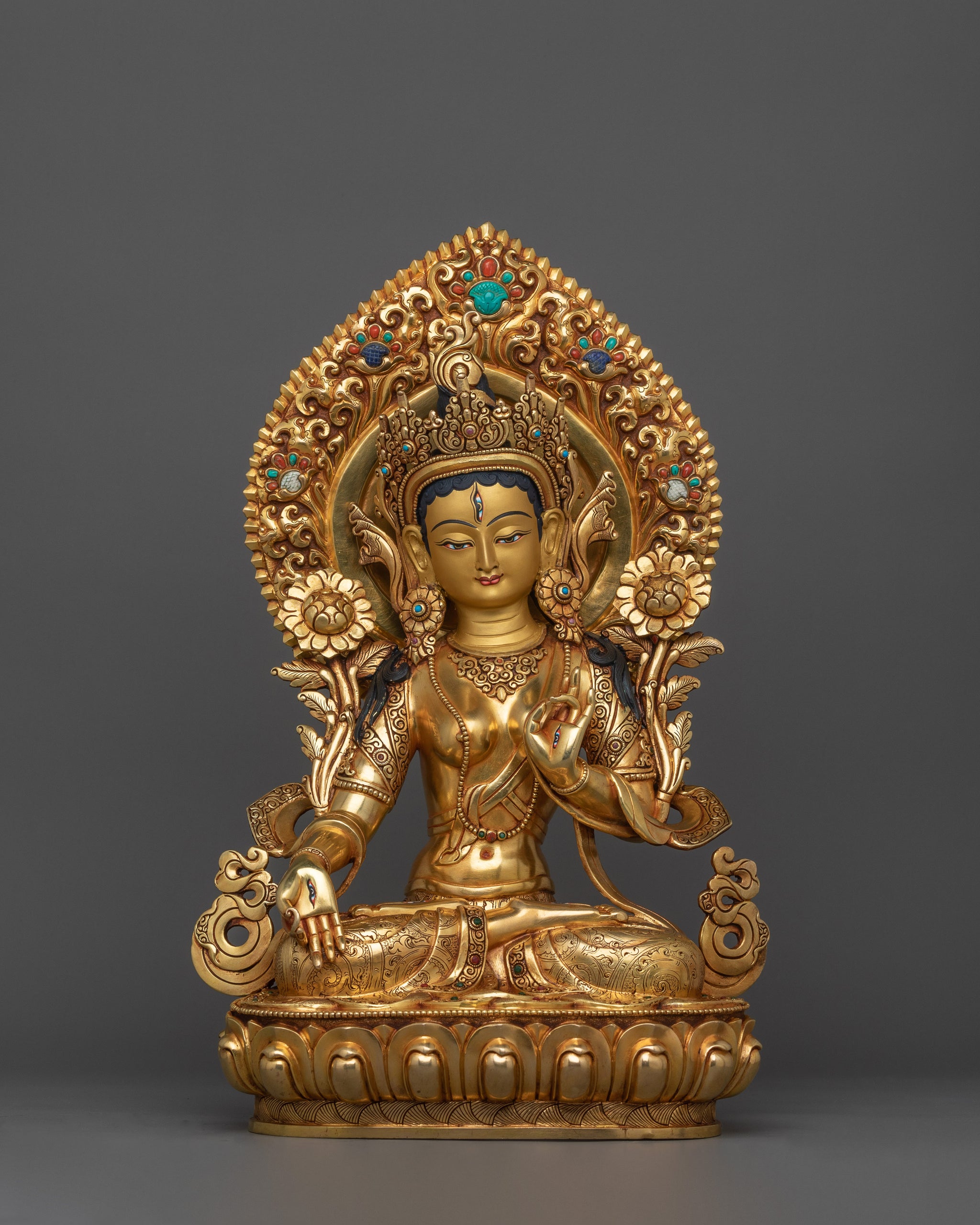 Traditionally Sculpted White Tara | Tara with Seven Eyes