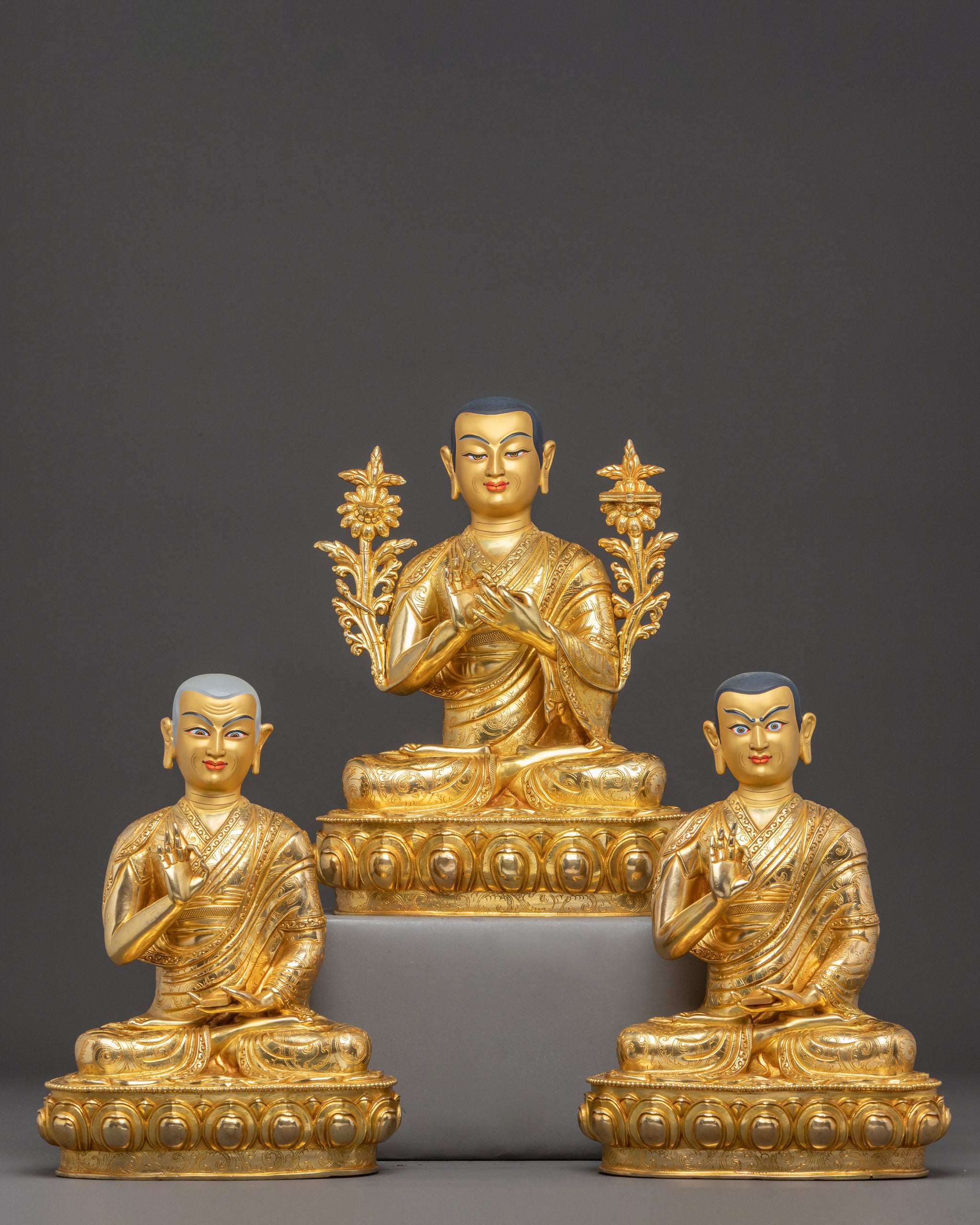 Handmade Tsongkhapa Statue Set | Tibetan Master Sculpture