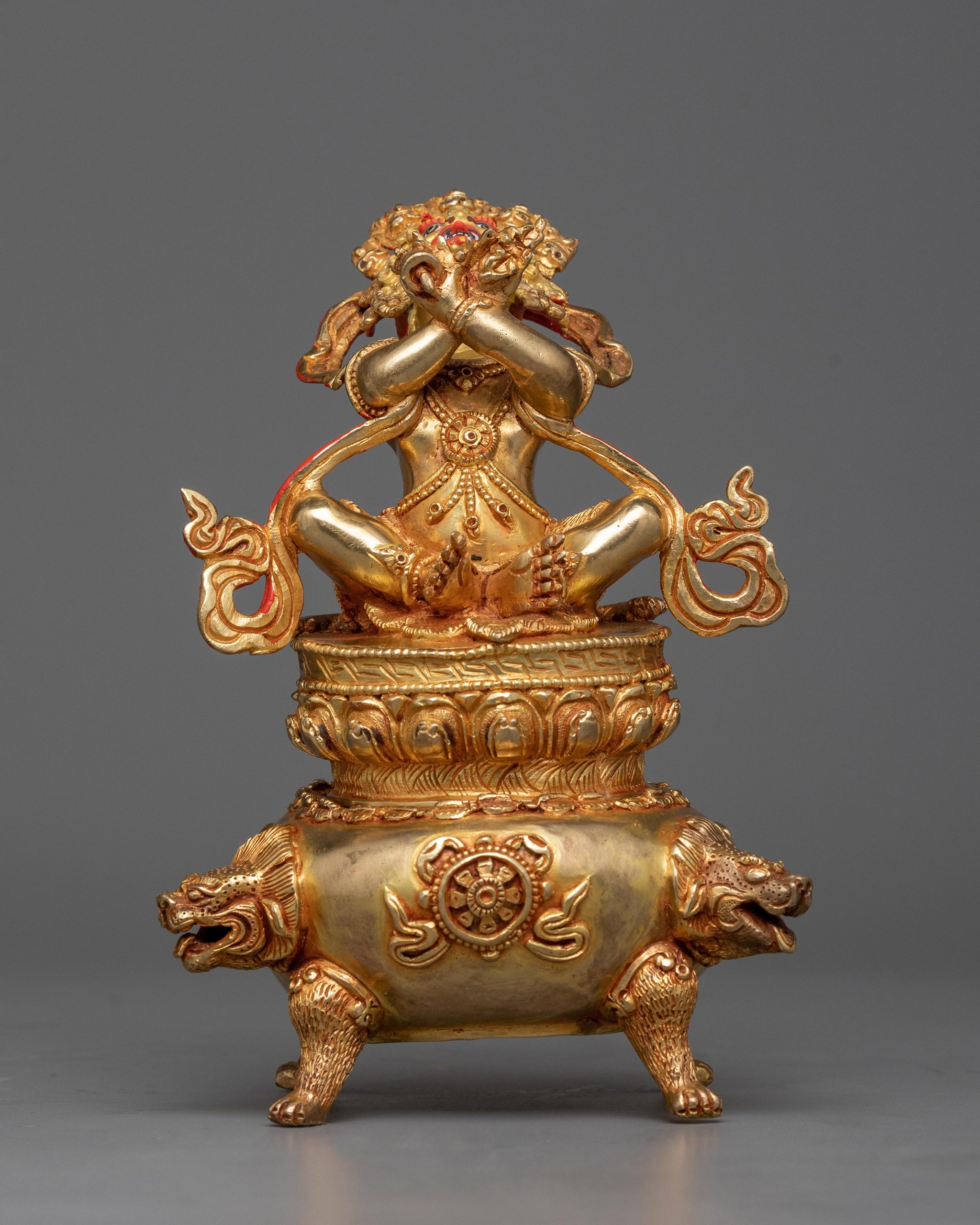 Vajradhaka Statue: Feel the heavenly power of mastery. With its magnificent 24K gold-gilded highlights, gold and acrylic paintings, and copper body, this statue is crafted with great care and exudes a sense of spiritual strength and enlightenment.