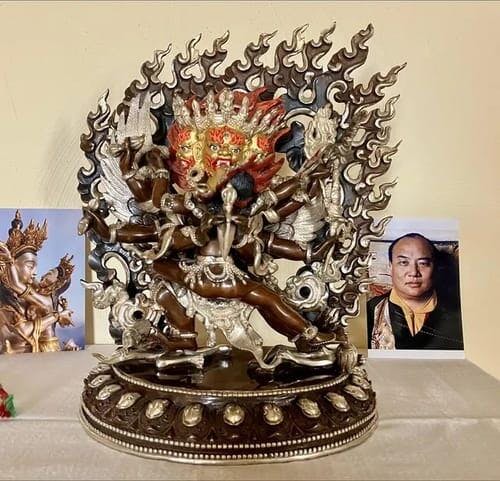 Alongside his Consort, Vajrakilaya symbolizes in Tibetan Buddhism the fusion of compassion and wisdom, wisdom and deft methods. They stand for the interdependence of knowledge and precise action in overcoming challenges and eliminating negativity. Seeking their blessings, devotees engage in rituals that unite their energies for the sake of removing obstacles from the way of enlightenment, protecting themselves, and transforming spiritually.