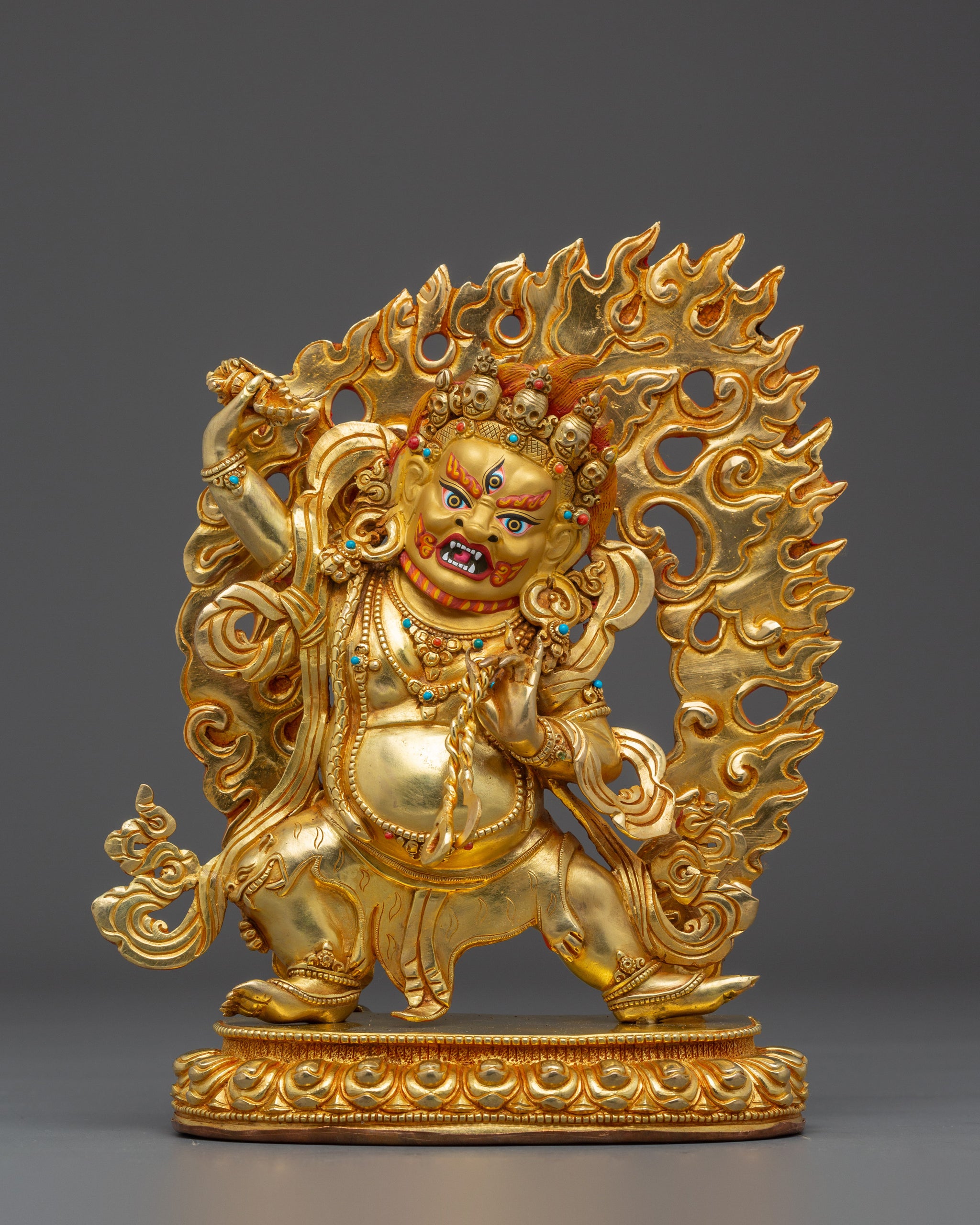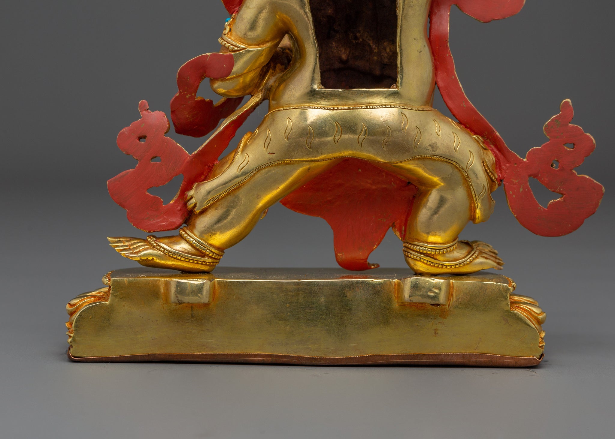 Vajrayogini is stunning. The details are amazing. It's easy to make out her facial expressions, skulls, feet, and the ring of fire around her. You can tell she's handmade. There is a consecration hole in her back.