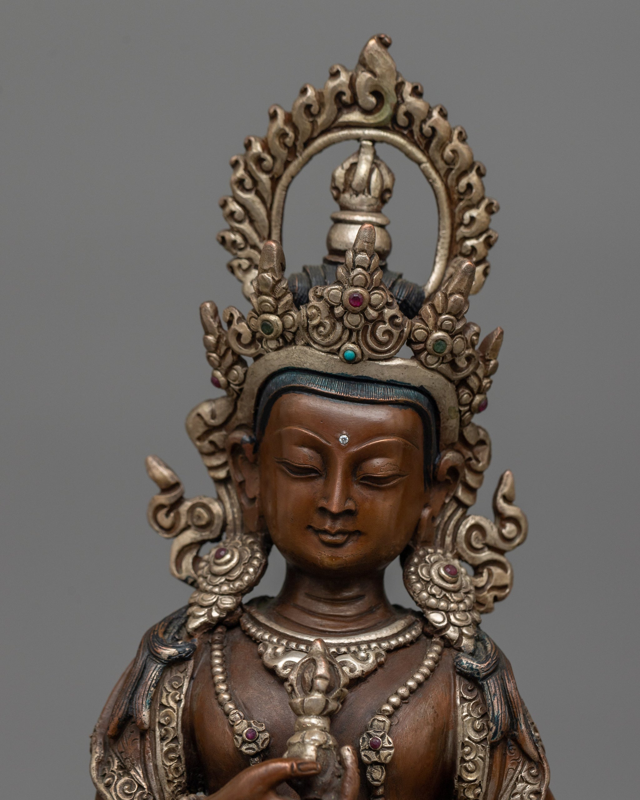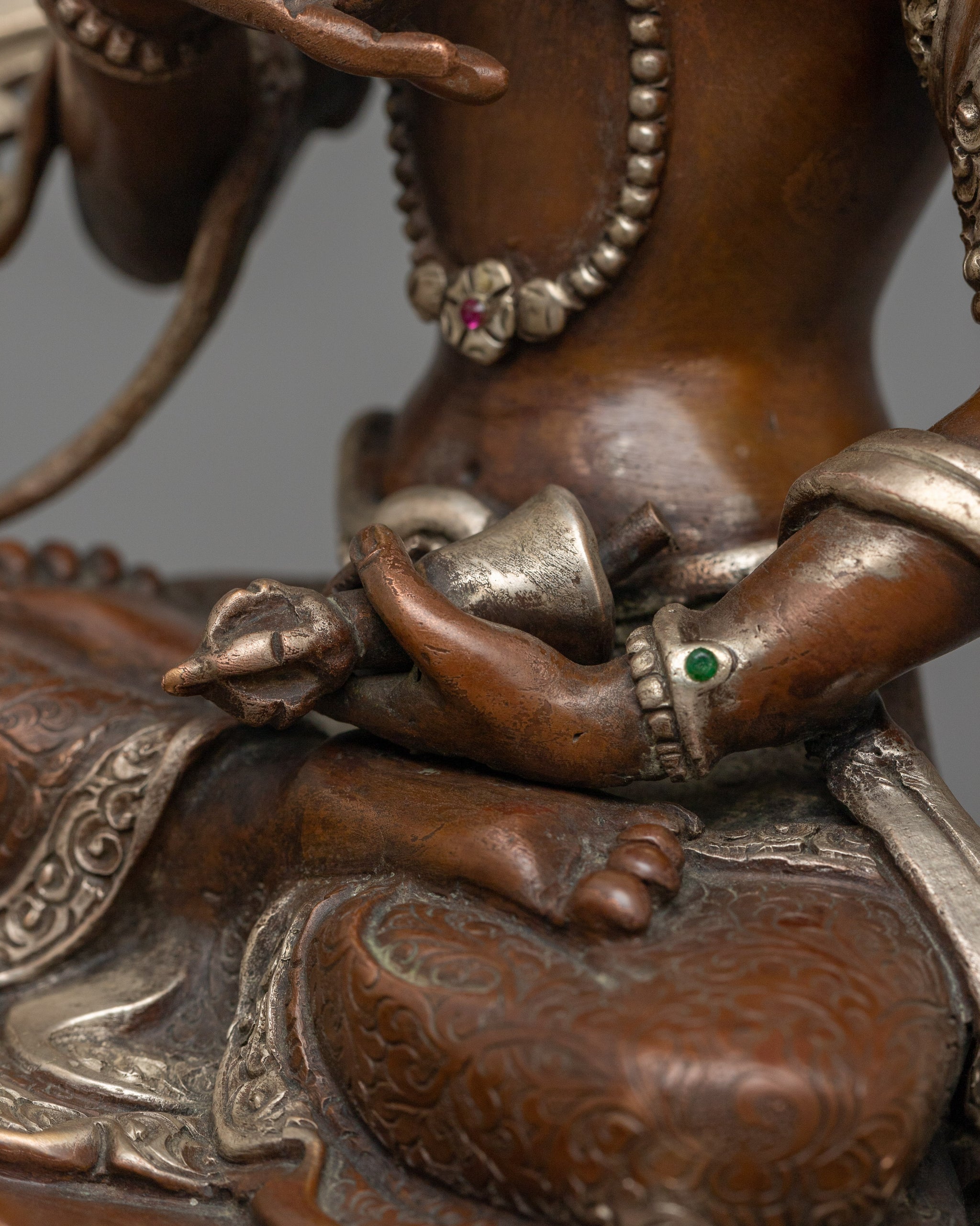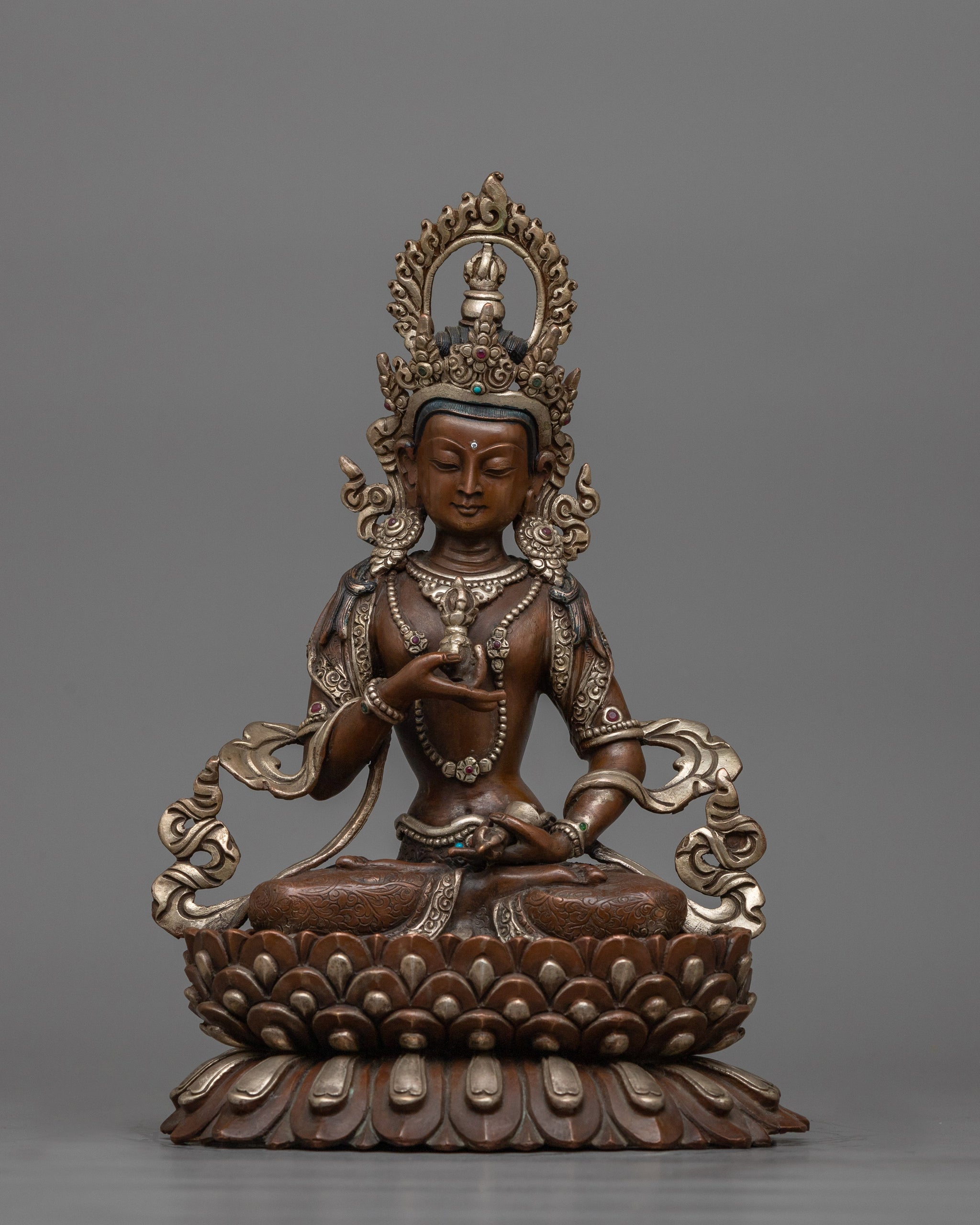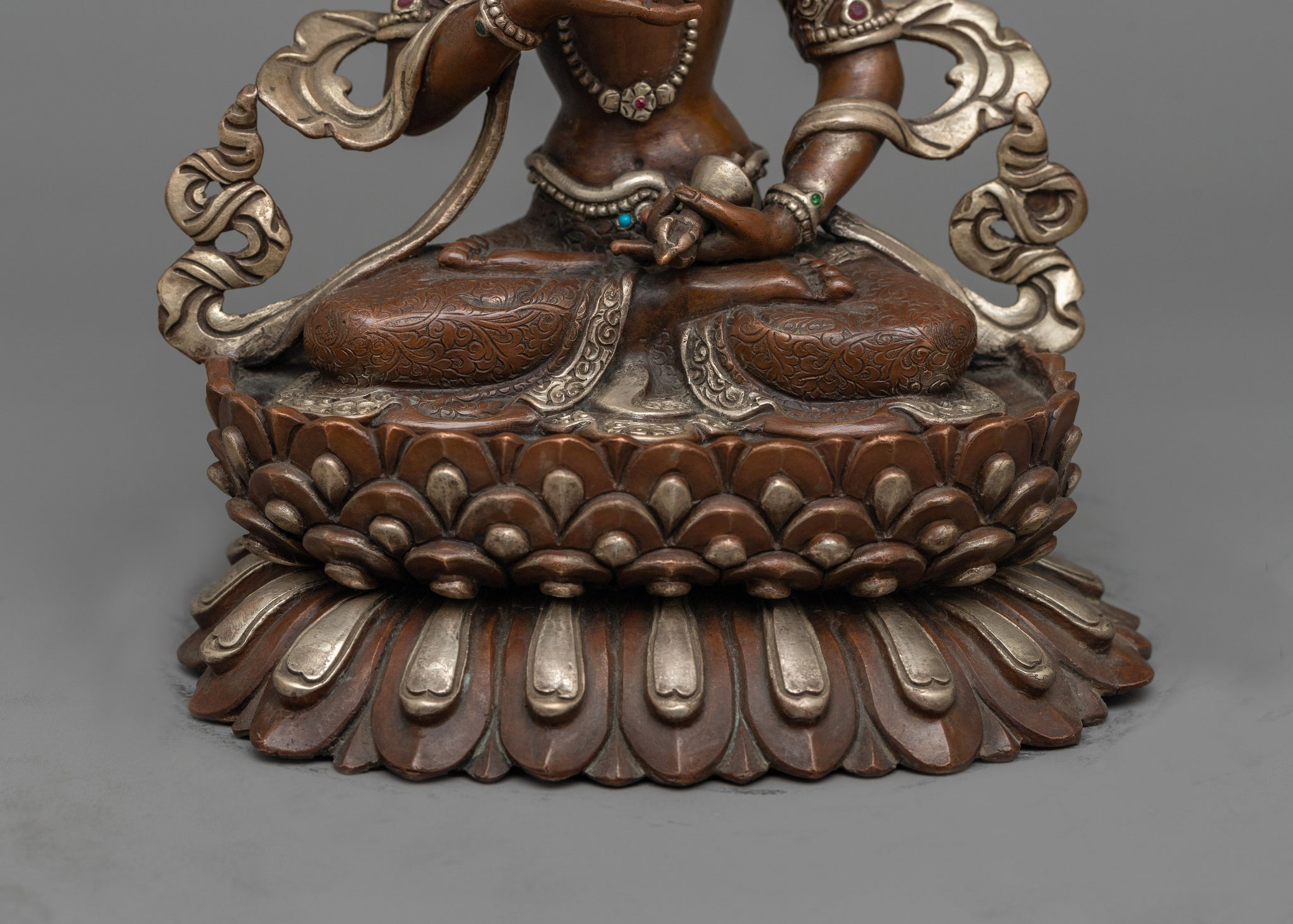 Vajrasattva 26cm Silver Plated Oxidized Statue | Handcrafted Symbol of Purity