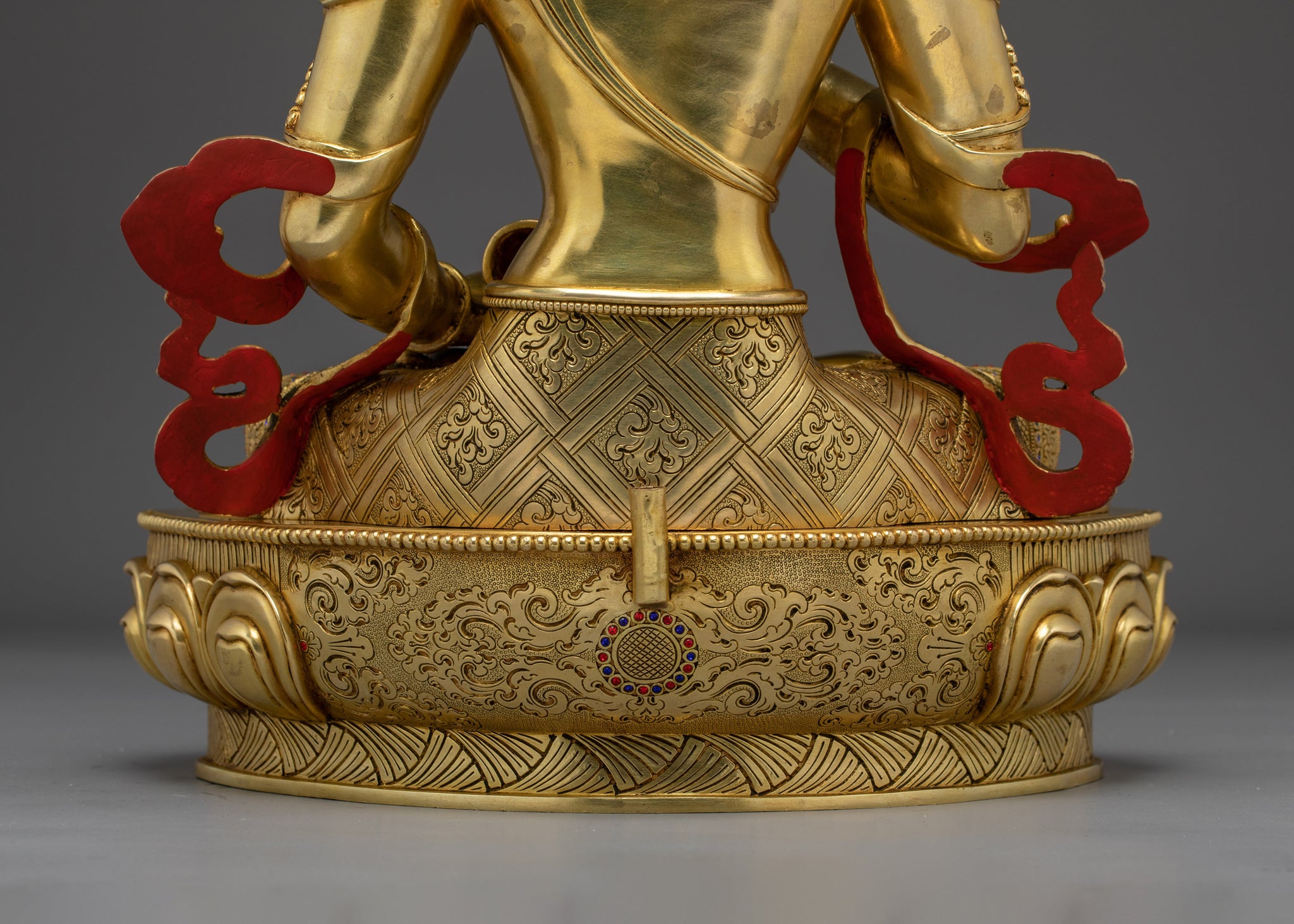 Vajrayogini is stunning. The details are amazing. It's easy to make out her facial expressions, skulls, feet, and the ring of fire around her. You can tell she's handmade. There is a consecration hole in her back.